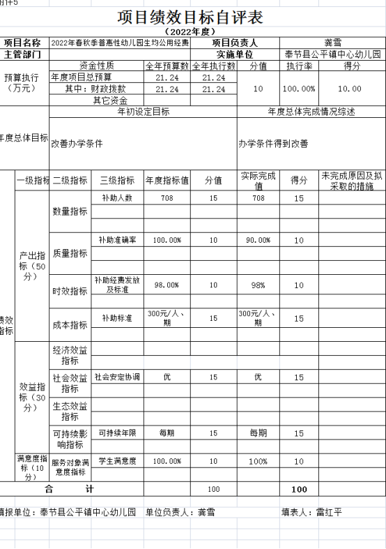 按奉节县财政局《关于开展2022年度预算绩效目标评价工作的通知》(奉节财绩〔2022〕2号)的要求,开展自评。按奉节财预【2022】98号,下达资金21.24万元。