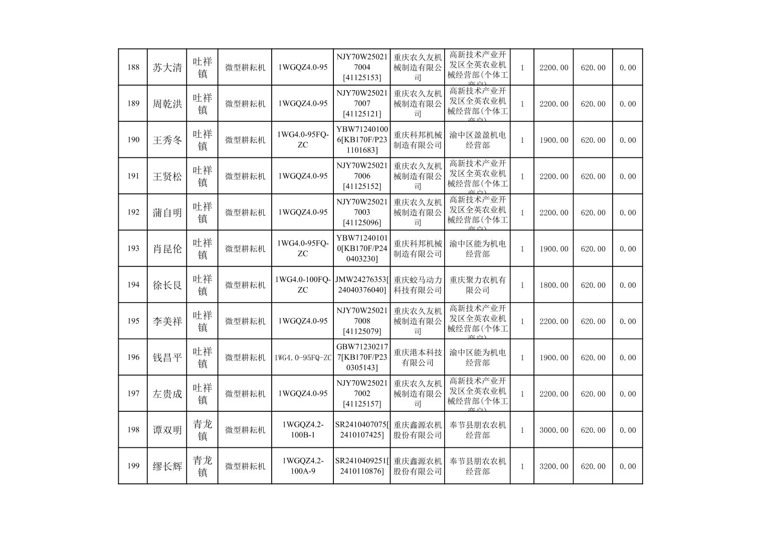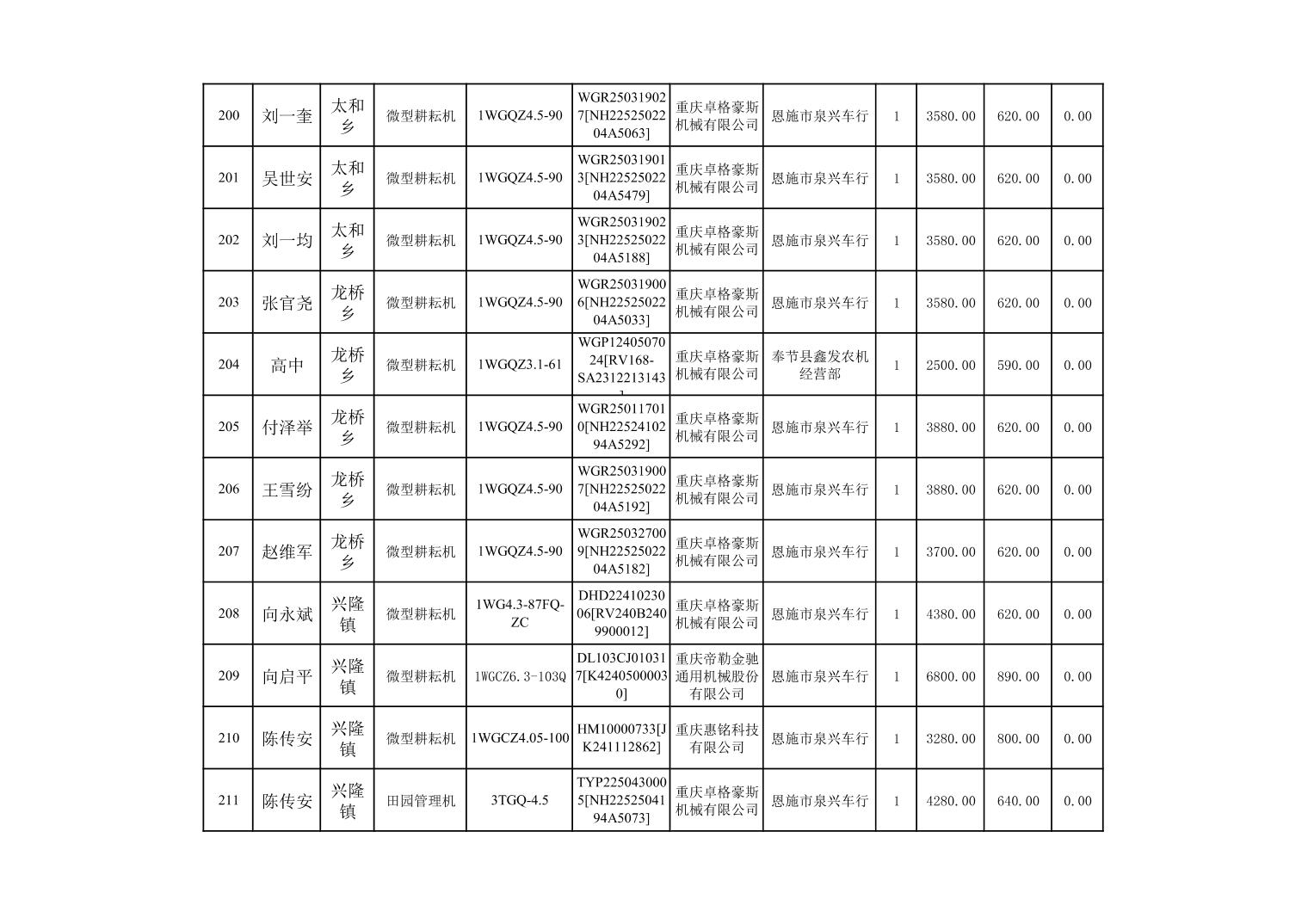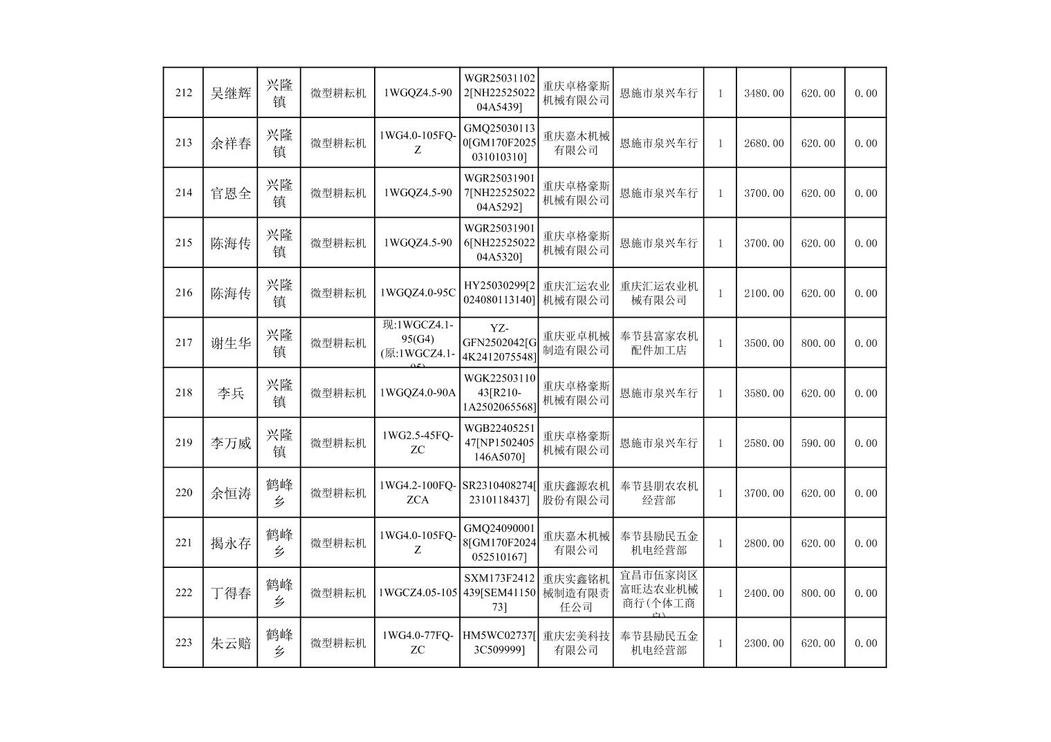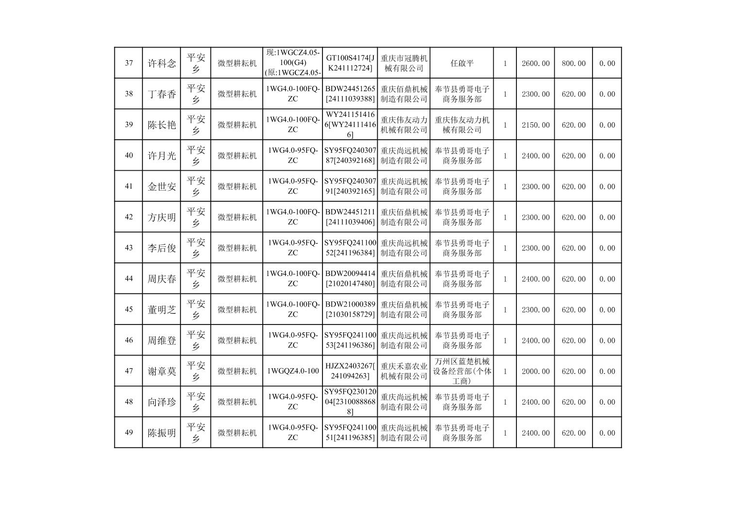 奉节县2025年农机购置补贴第10批次信息公示