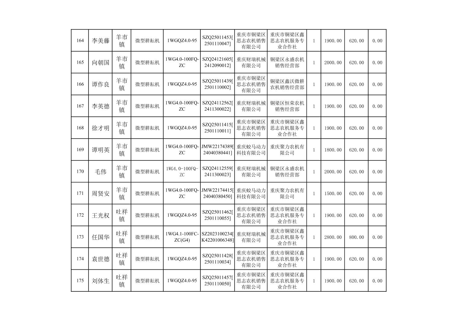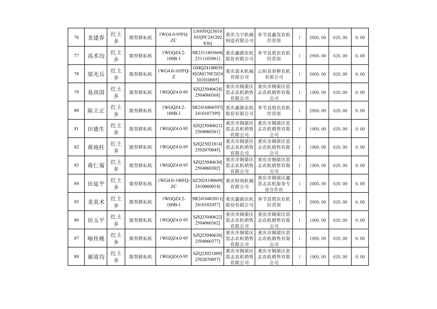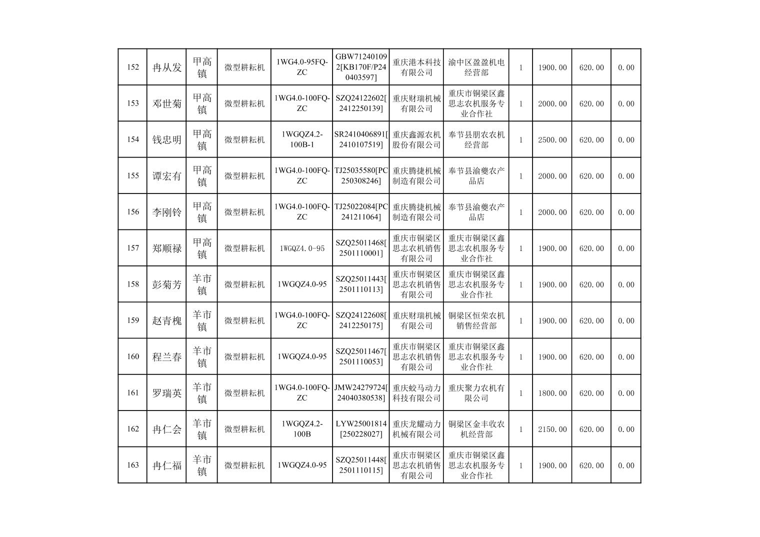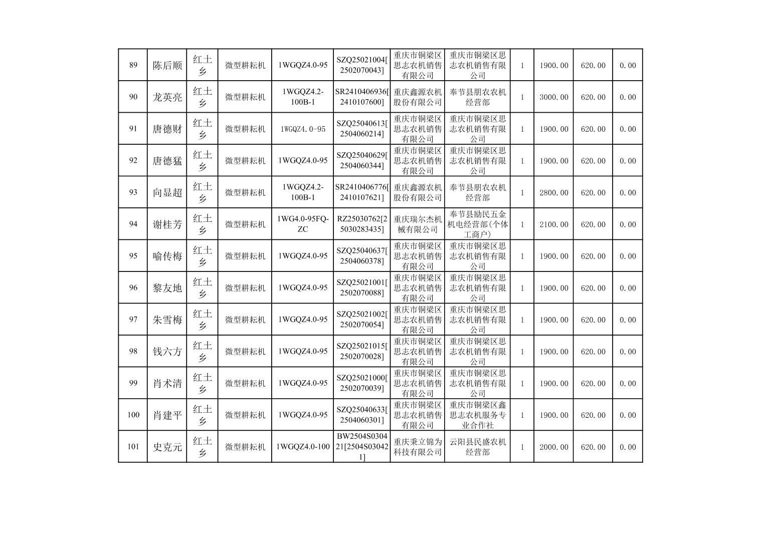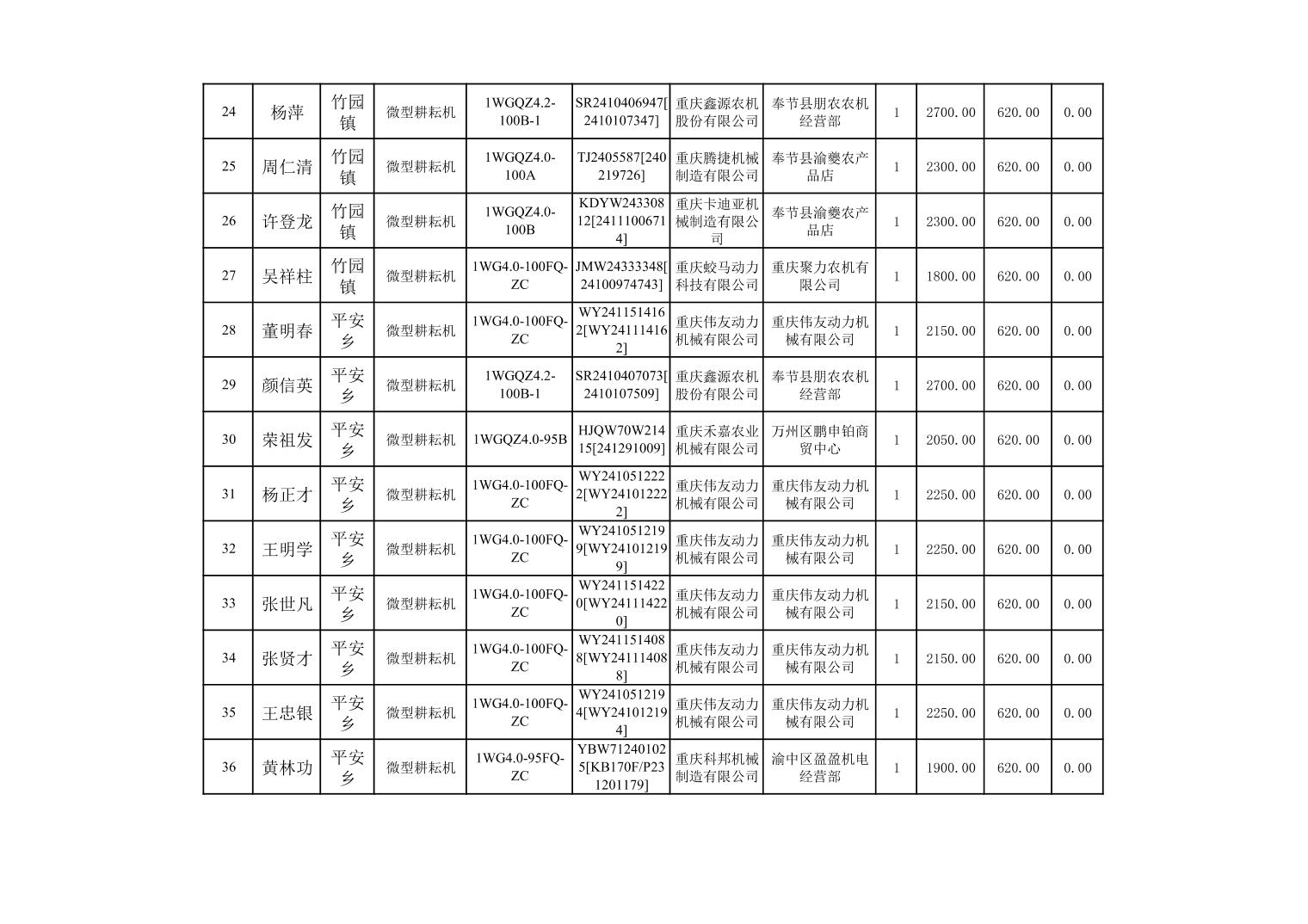 奉节县2025年农机购置补贴第10批次信息公示
