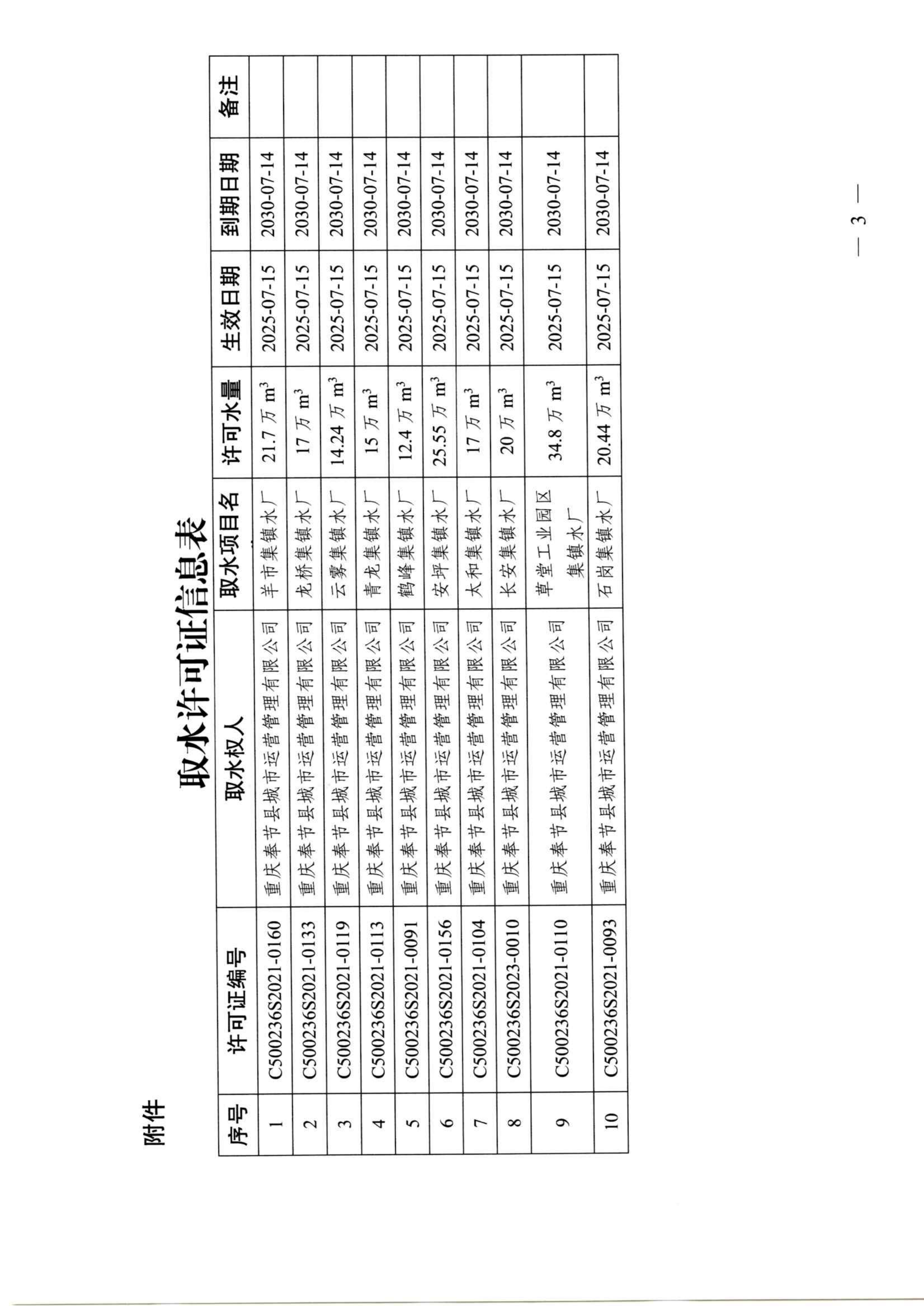 奉节县水利局关于同意羊市集镇水厂等10个水厂取水工程延续取水的决定