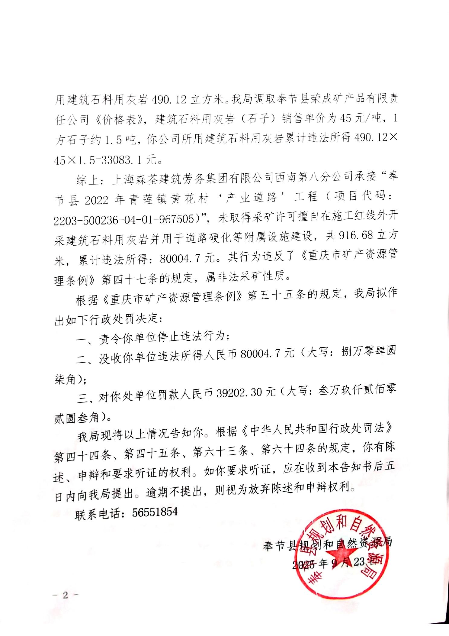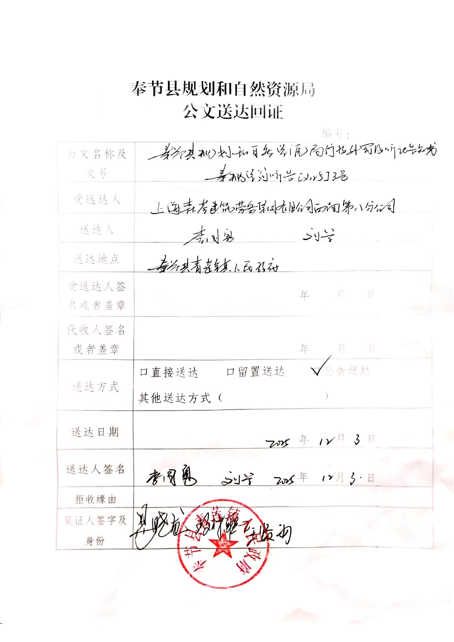 奉节县规划和自然资源局行政处罚及听证告知书公告送达