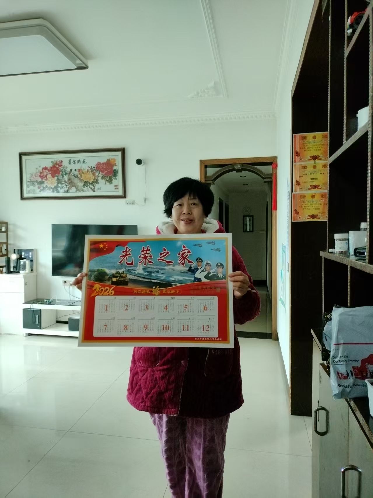 年画图案喜庆庄重,寓意吉祥,不仅增添了节日的喜庆气氛,更是一份承载着荣誉与关怀的特别礼物,将党和政府的温暖与褒扬传递到每一位为国防事业奉献过的家庭。