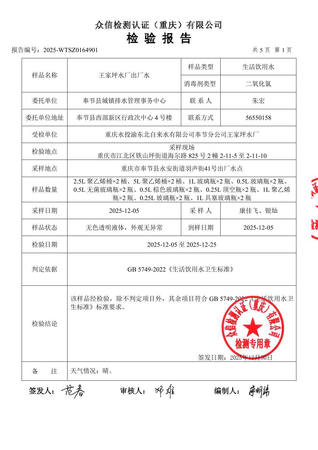 按照《重庆市供节水条例》、《重庆市城市供水水质管理办法》要求,现将2025年12月城市供水水厂出厂水水质监测结果予以公示。