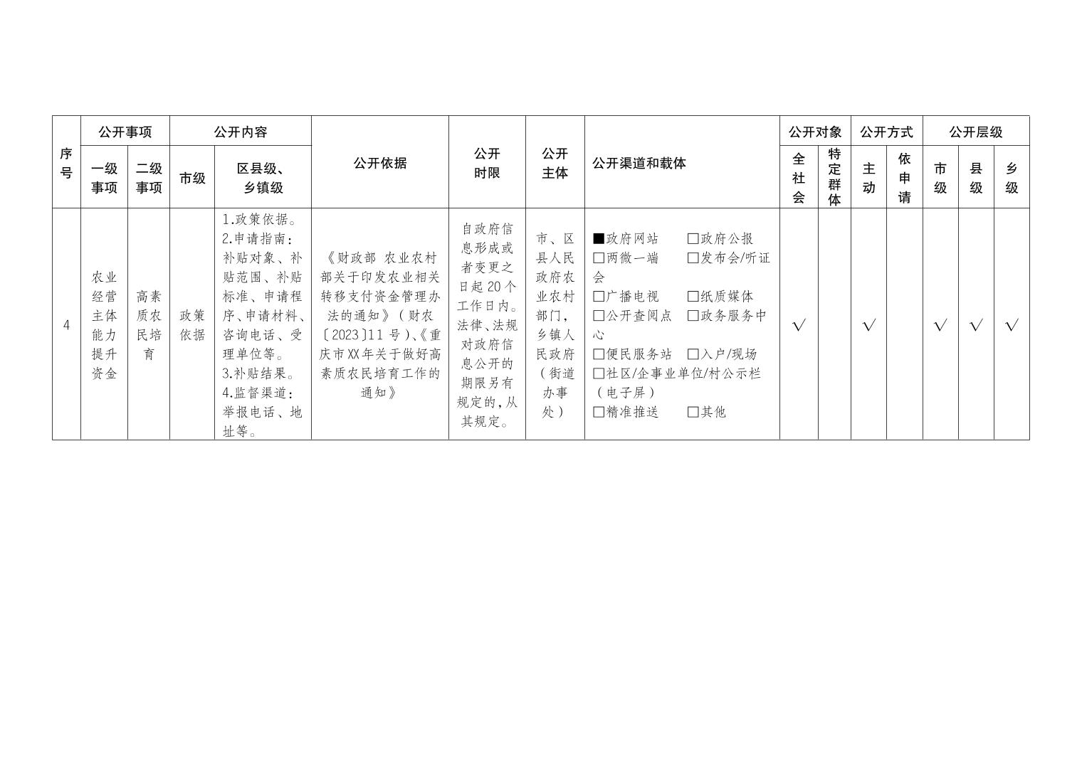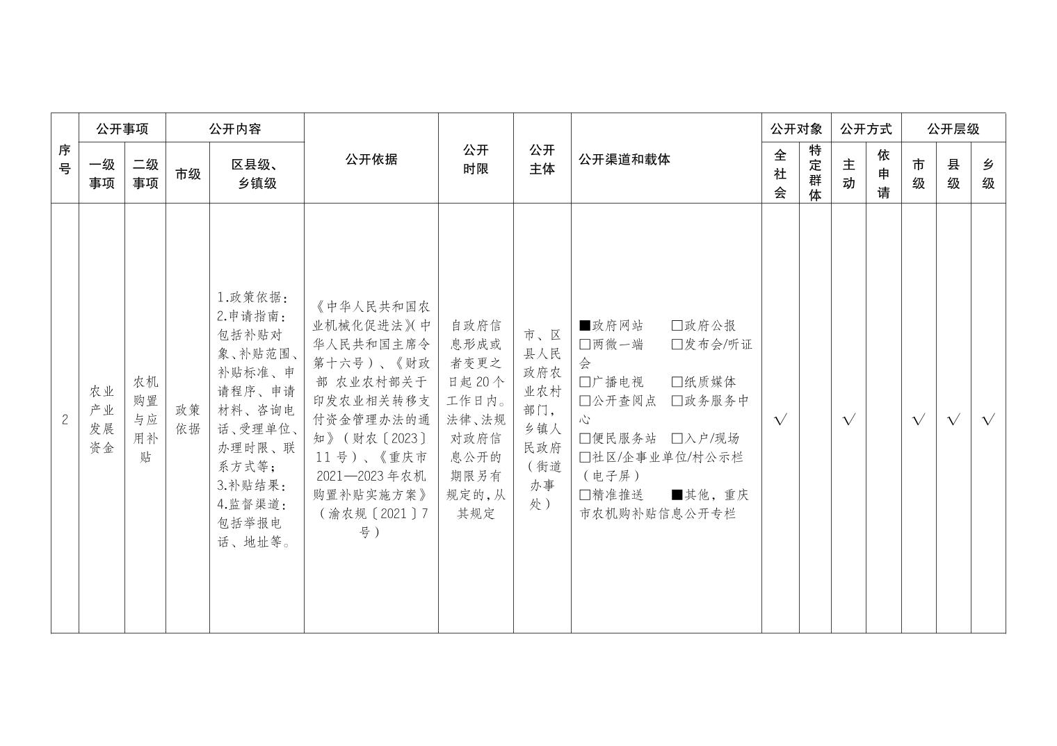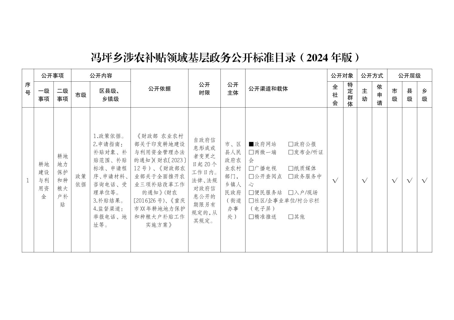 冯坪乡涉农补贴领域基层政务公开标准目录(2024年版)
