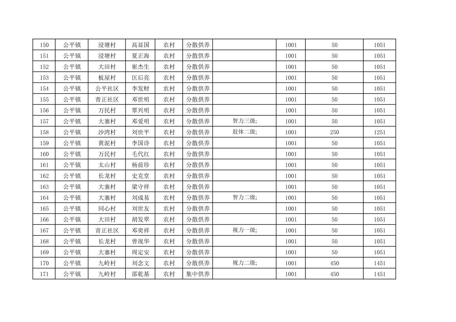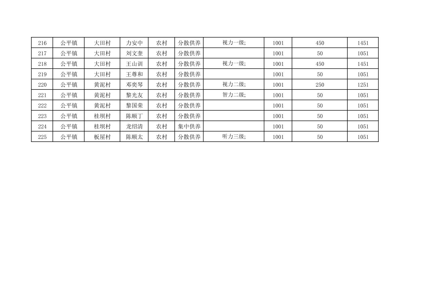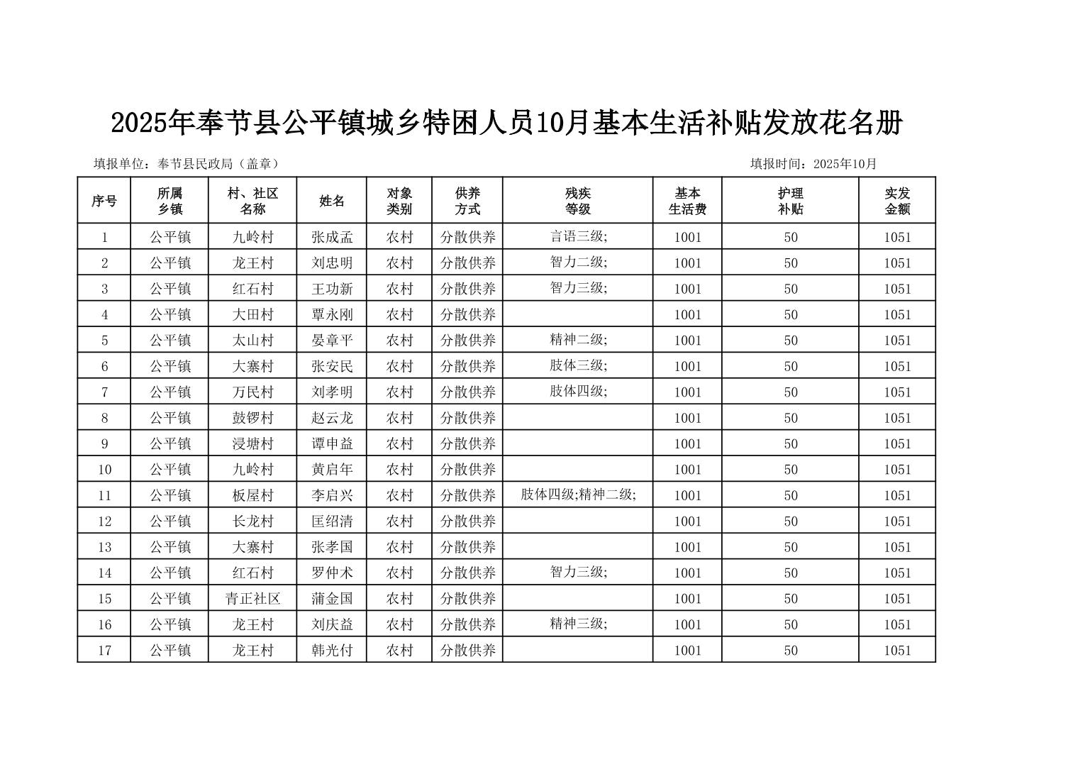 2025年奉节县公平镇城乡特困人员10月基本生活补贴发放花名册