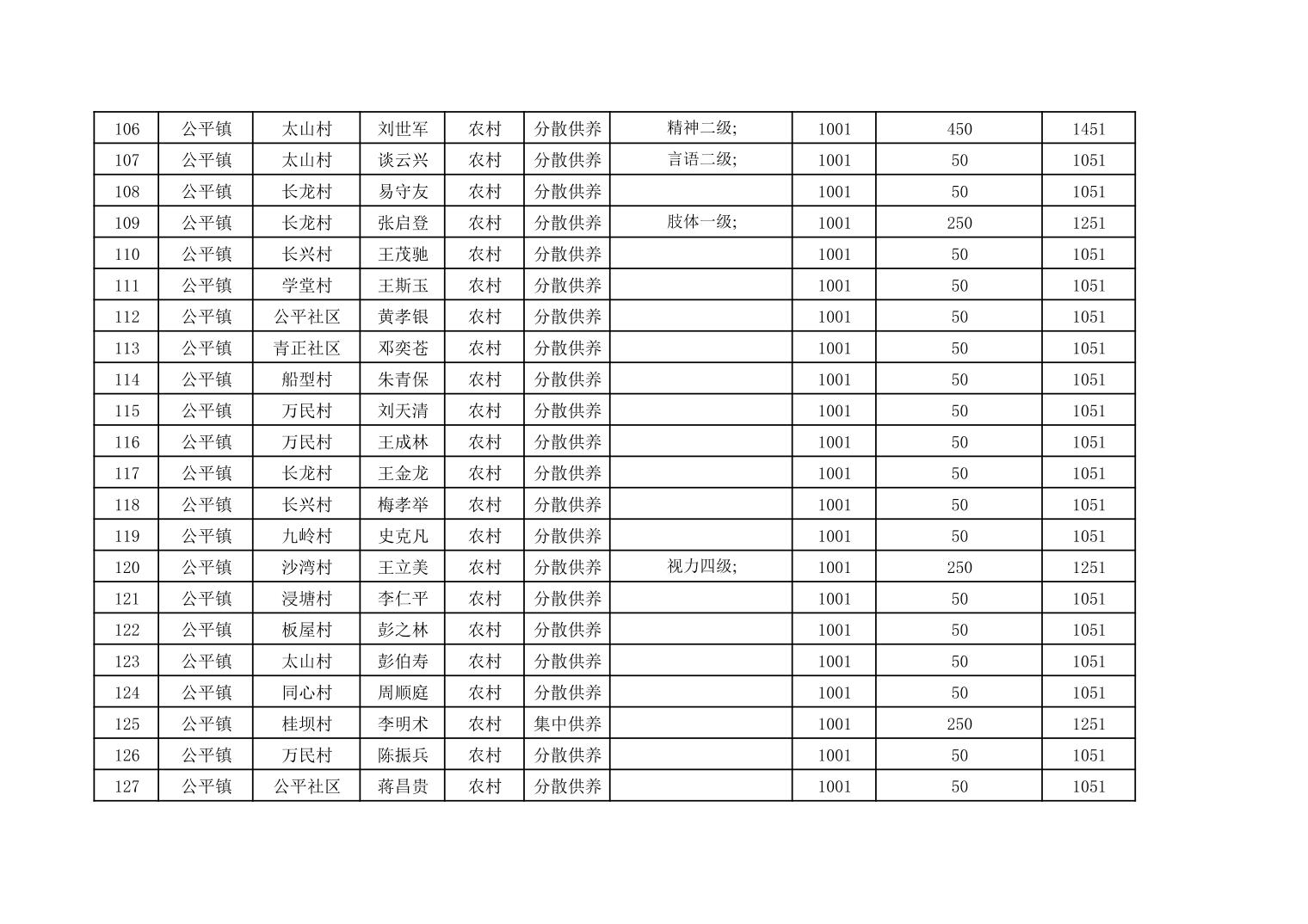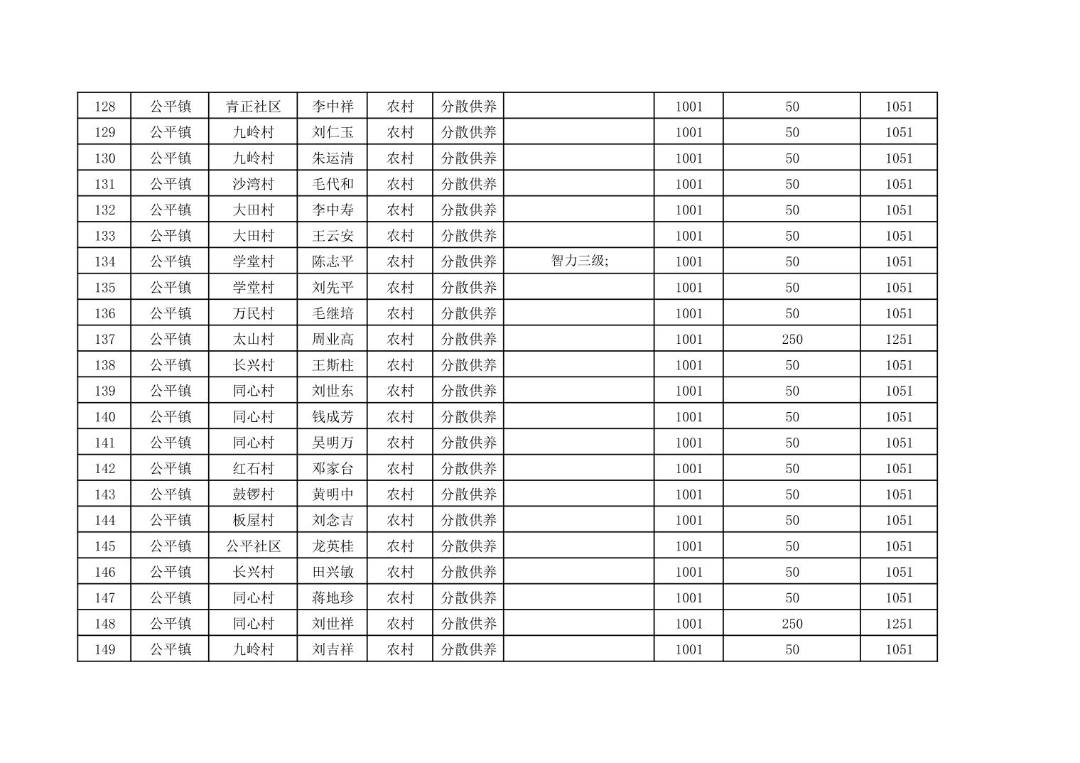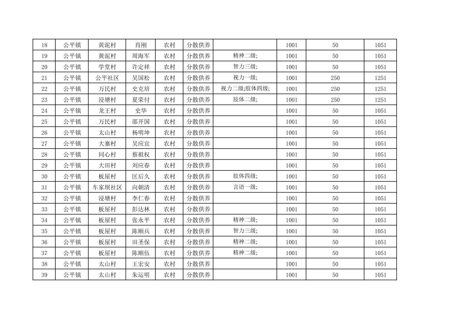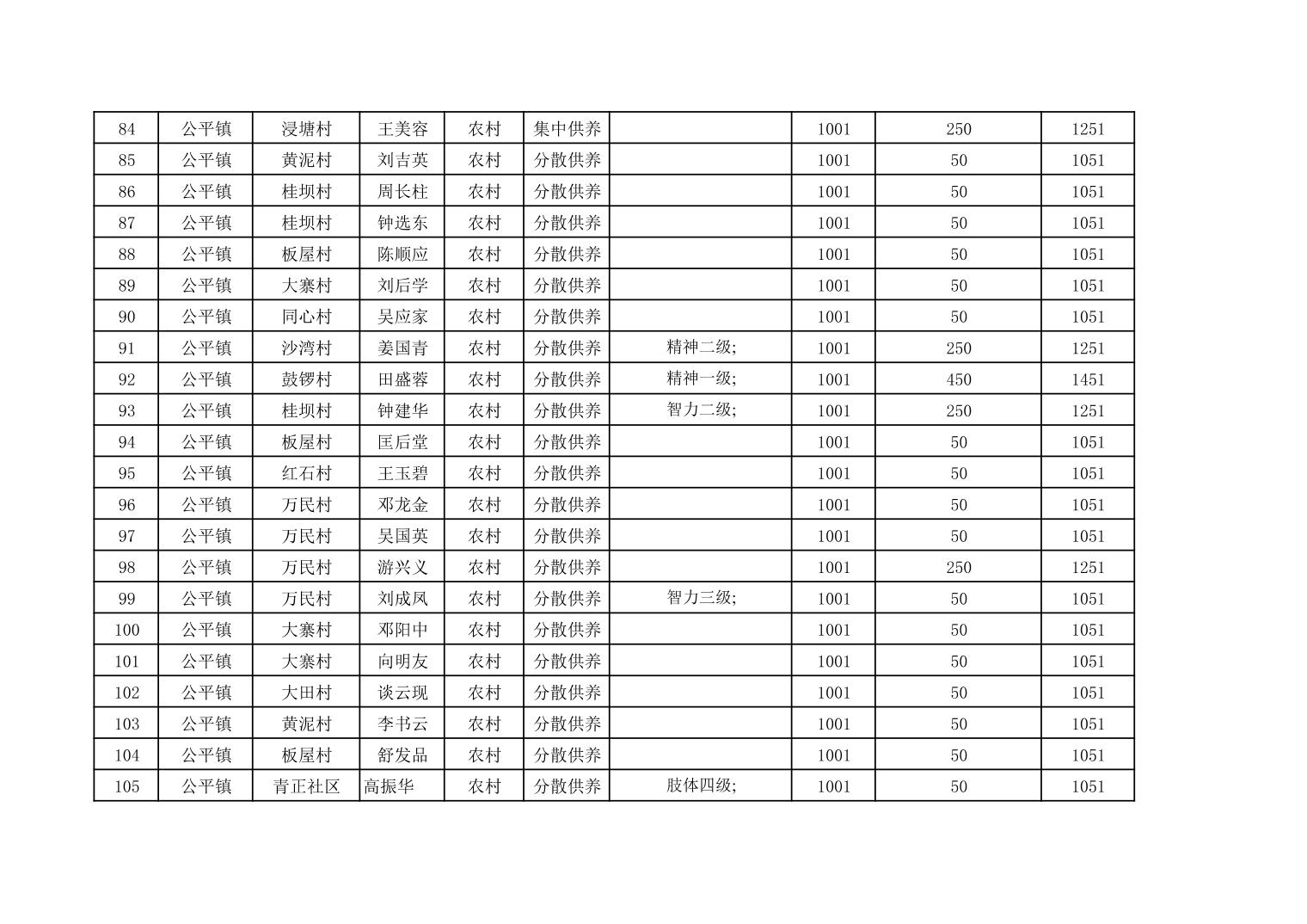 2025年奉节县公平镇城乡特困人员10月基本生活补贴发放花名册