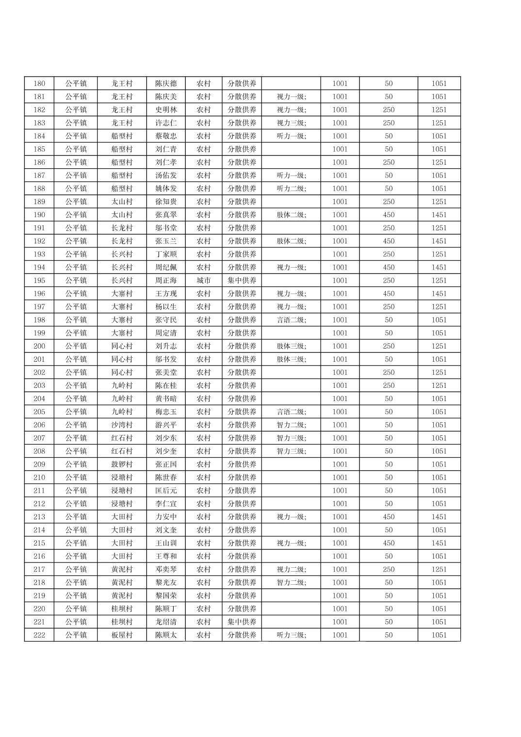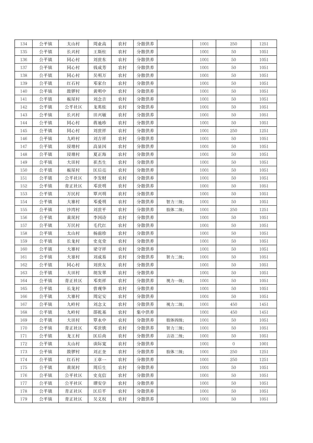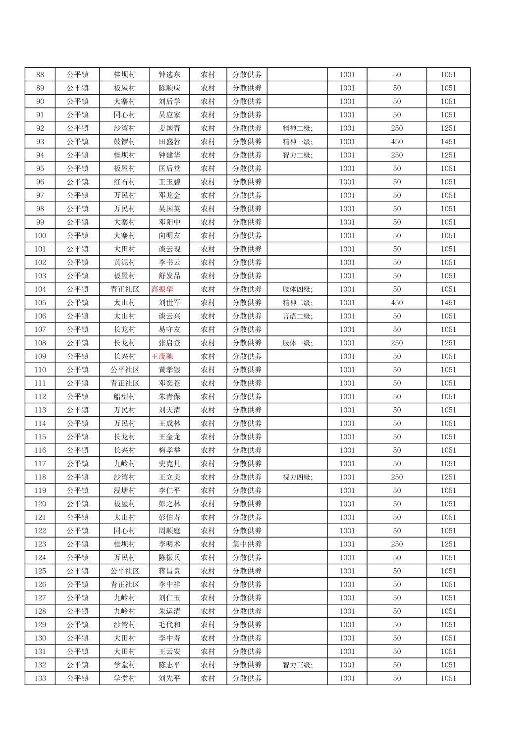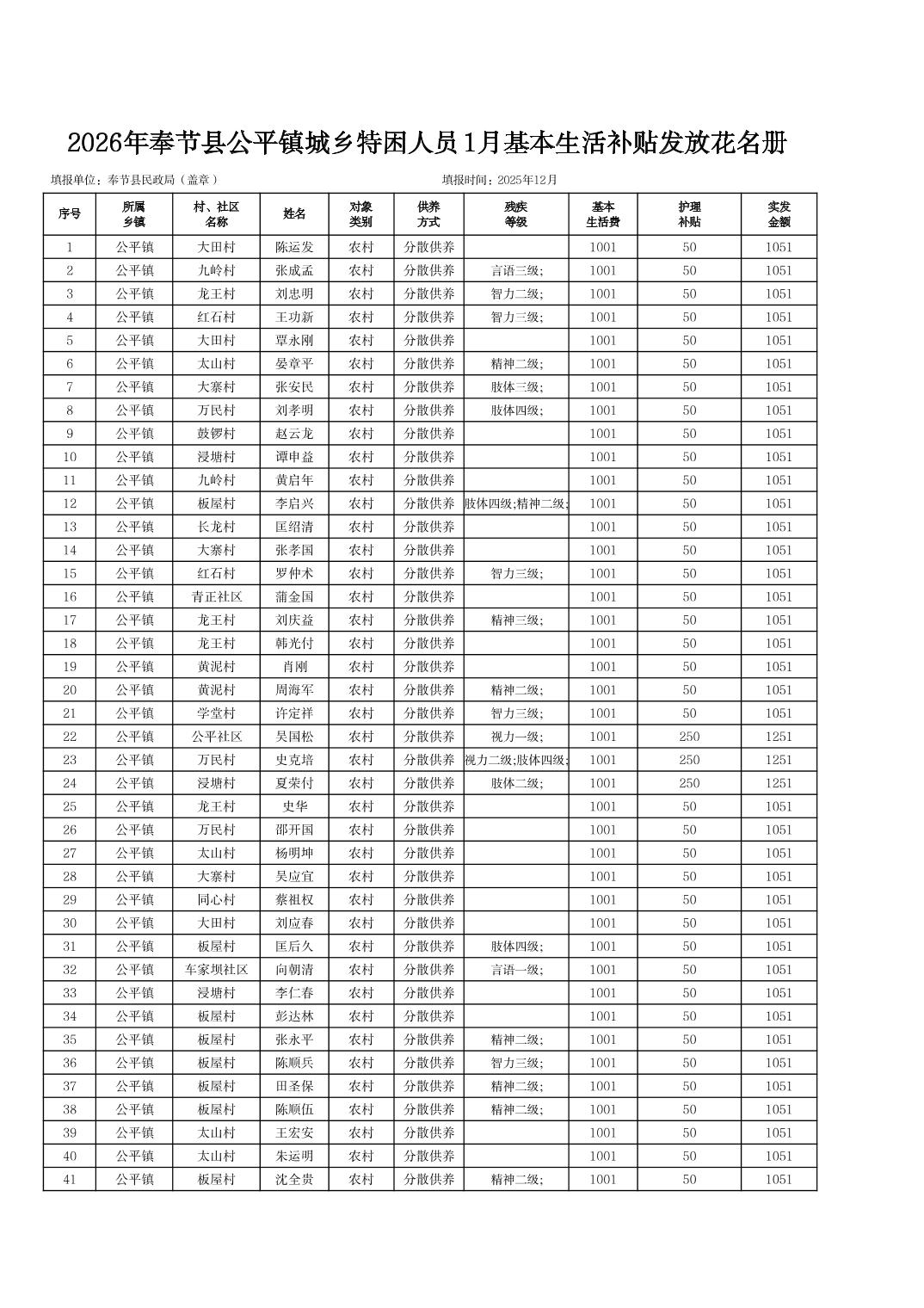 公平镇2026年1月份特困人员供养金及打卡花名册