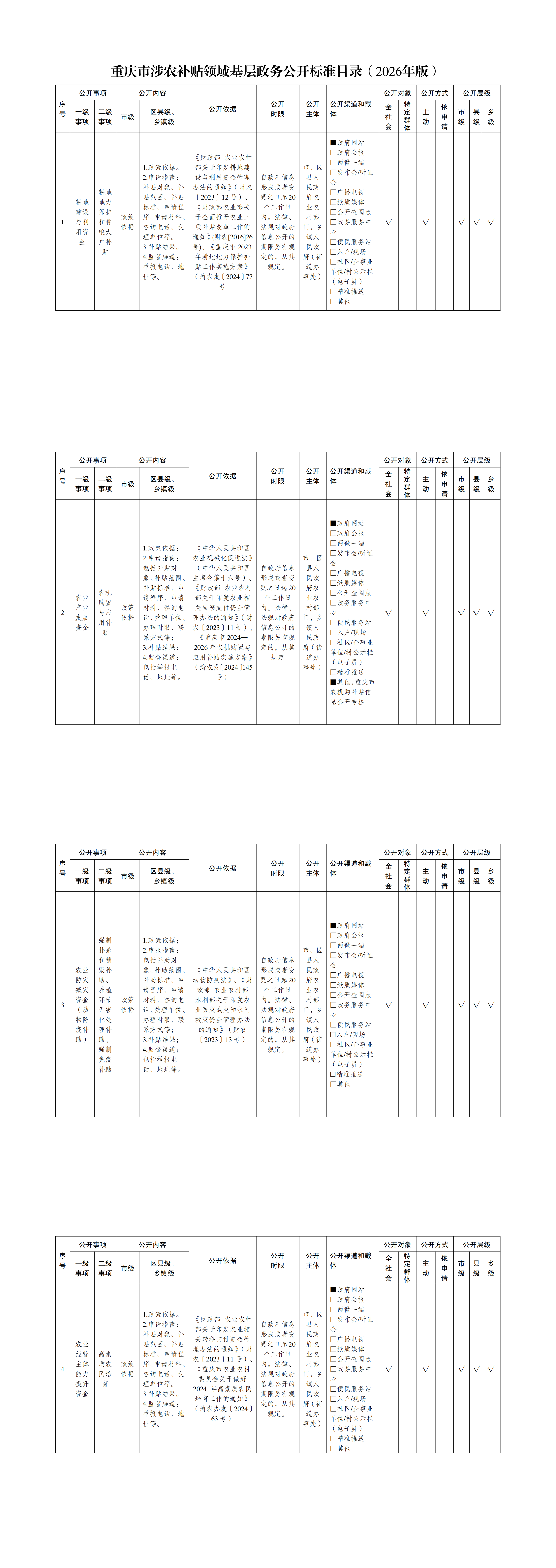 重庆市涉农补贴领域基层政务公开标准目录(2026年版)