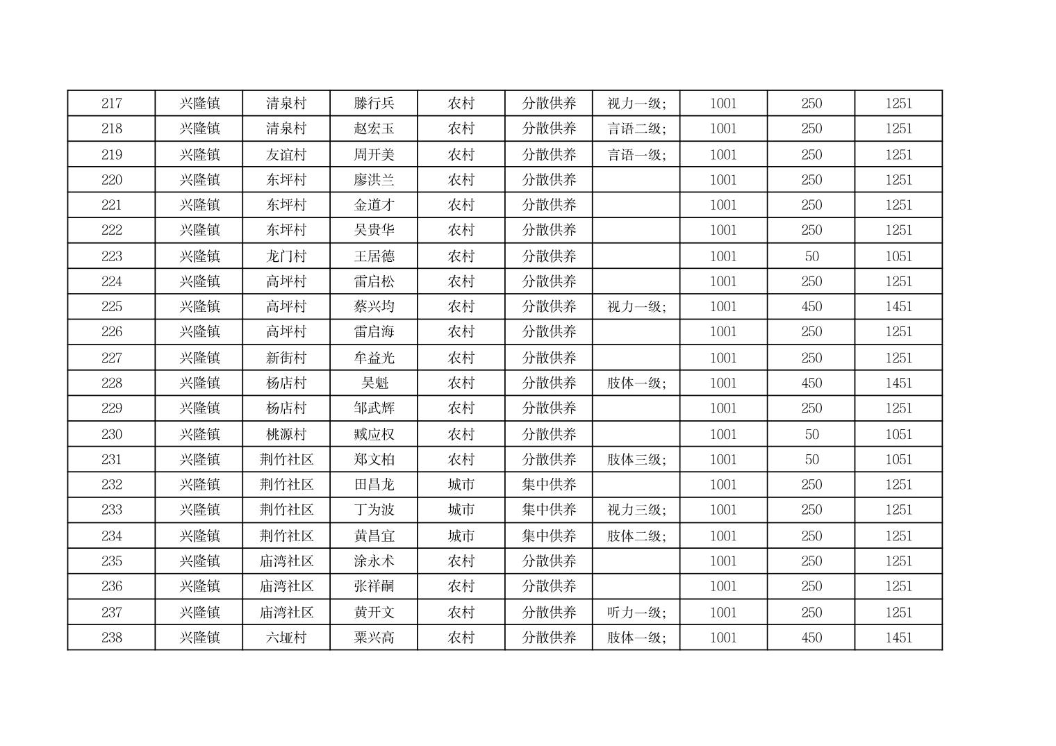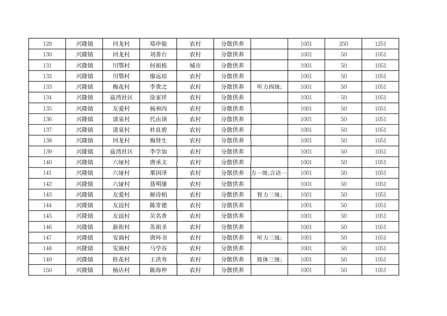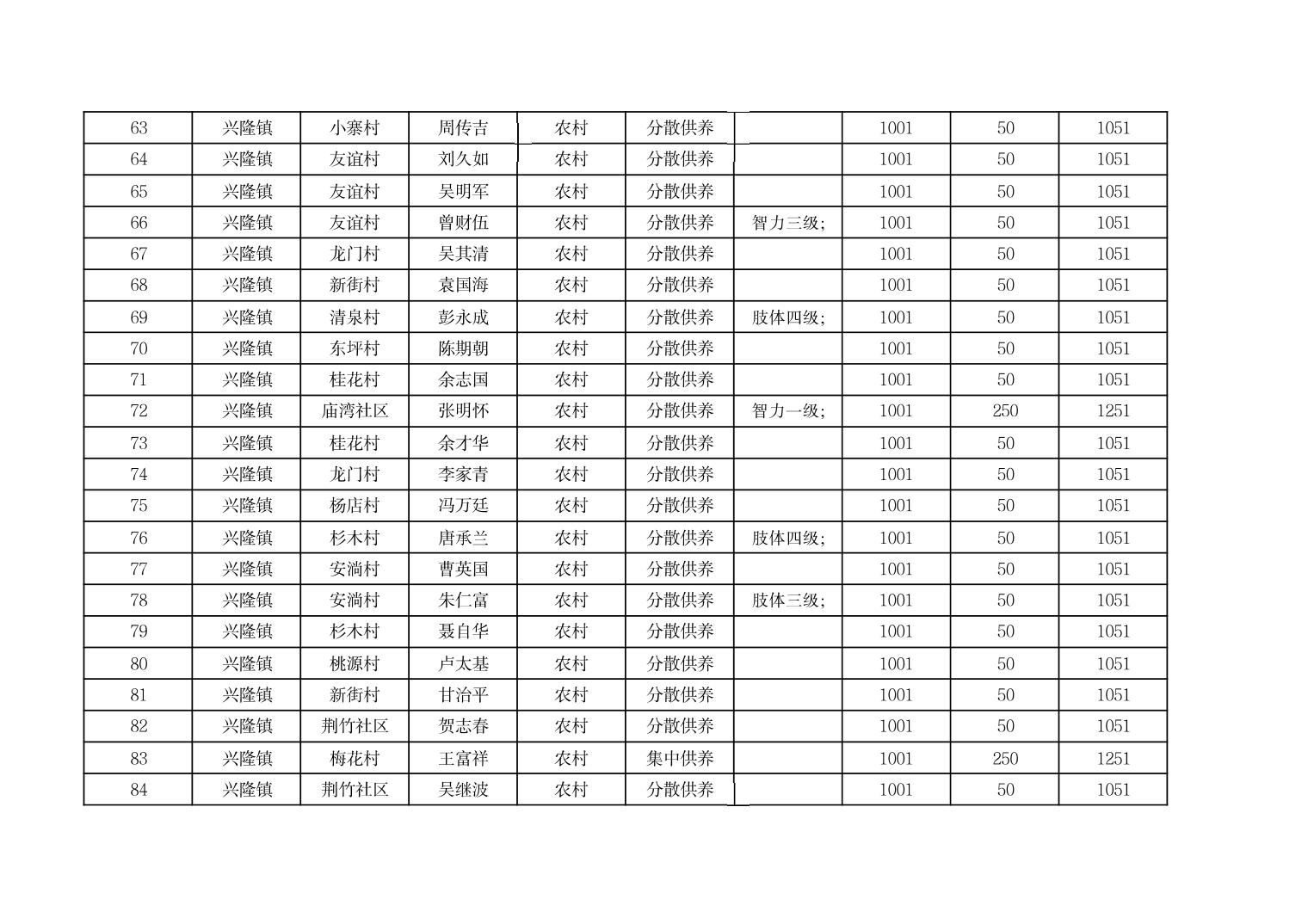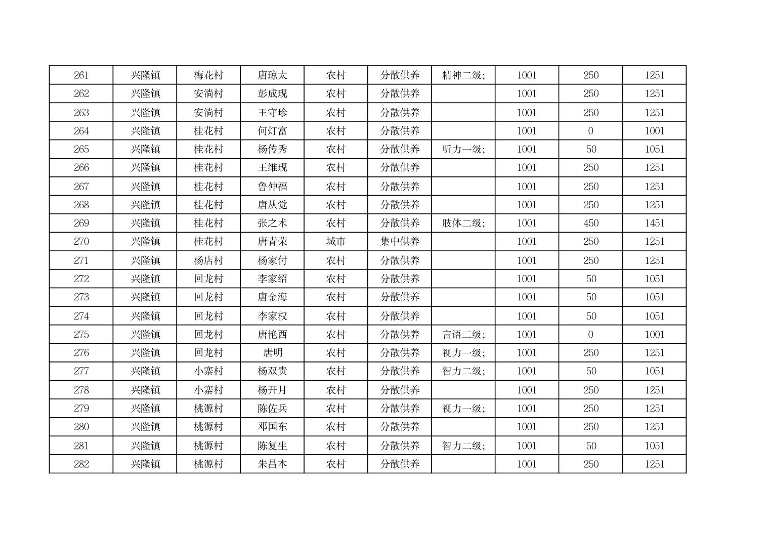 2025年12月份奉节县兴隆镇城乡特困人员基本生活补贴发放花名册