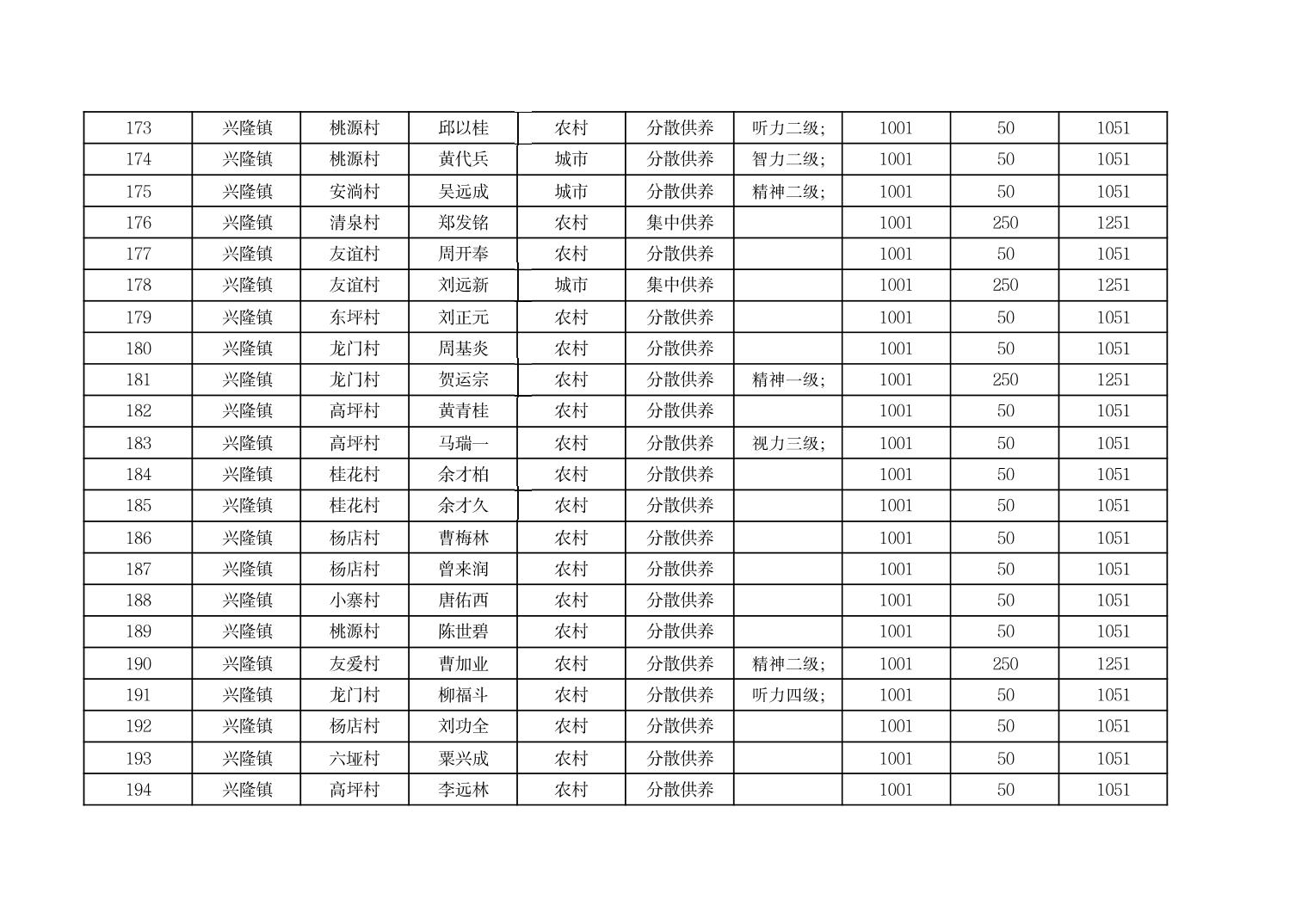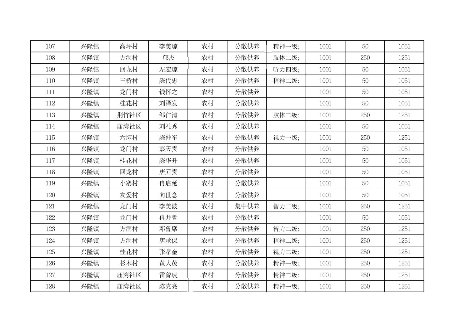 2026年2月份奉节县兴隆镇城乡特困人员基本生活补贴发放花名册
