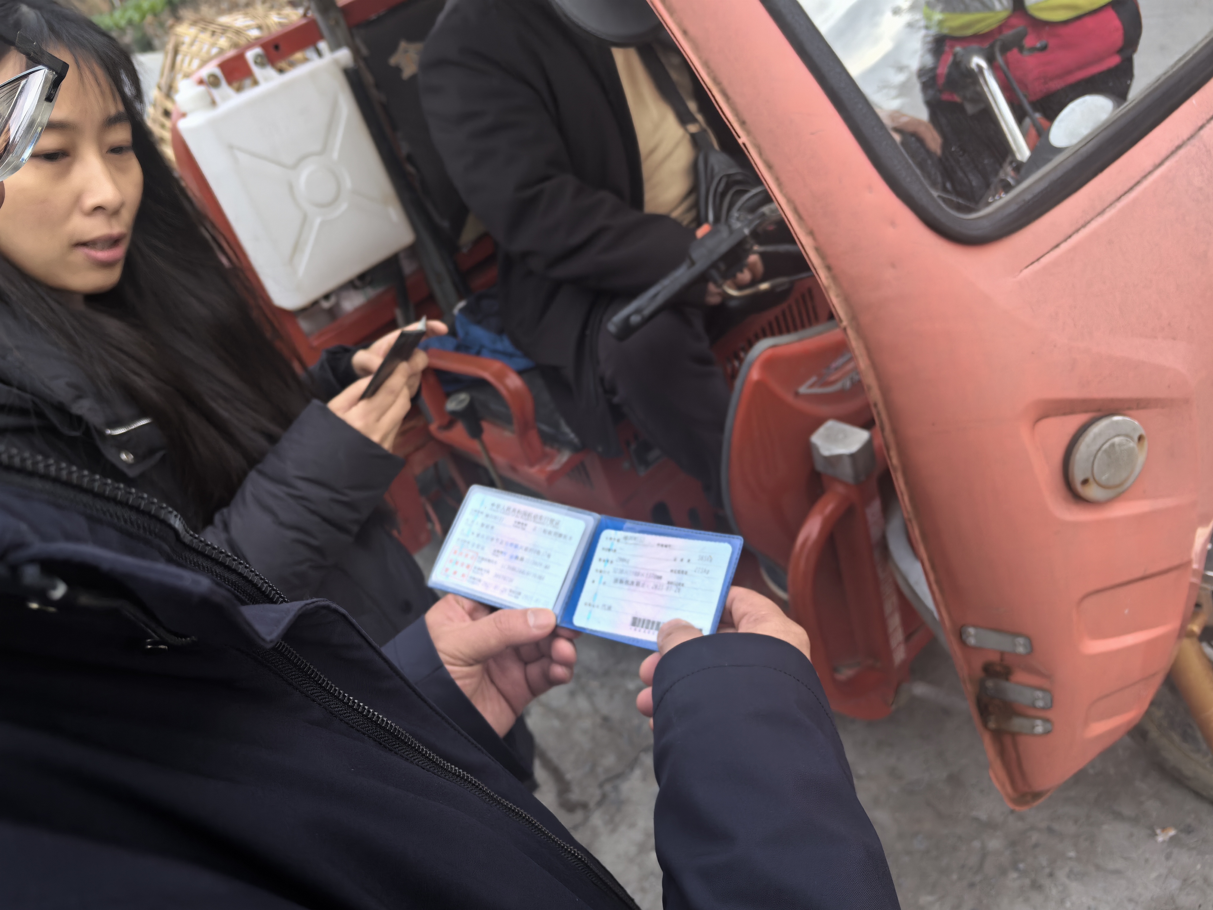 在劝导站点,李主任、陈委员首先查看了劝导站的工作台账,询问近期车辆通行及劝导记录情况。随后,二人与现场工作人员一同对过往车辆进行检查:对电动三轮车驾驶人逐一核查车辆行驶证、驾驶人操作证件,检查车辆刹车、反光标识等安全设施配备状态;对未规范佩戴安全头盔的驾驶人现场提醒纠正,并结合冬季路面湿滑的特点,向群众讲解违规载人、超速行驶的安全隐患。