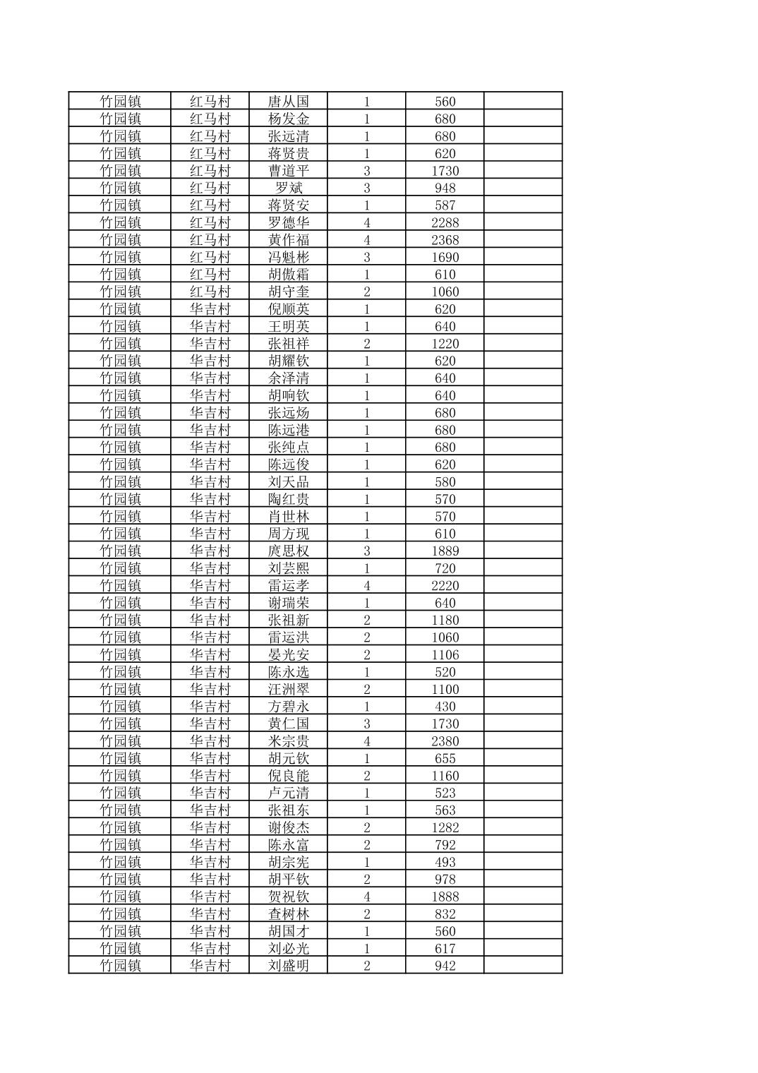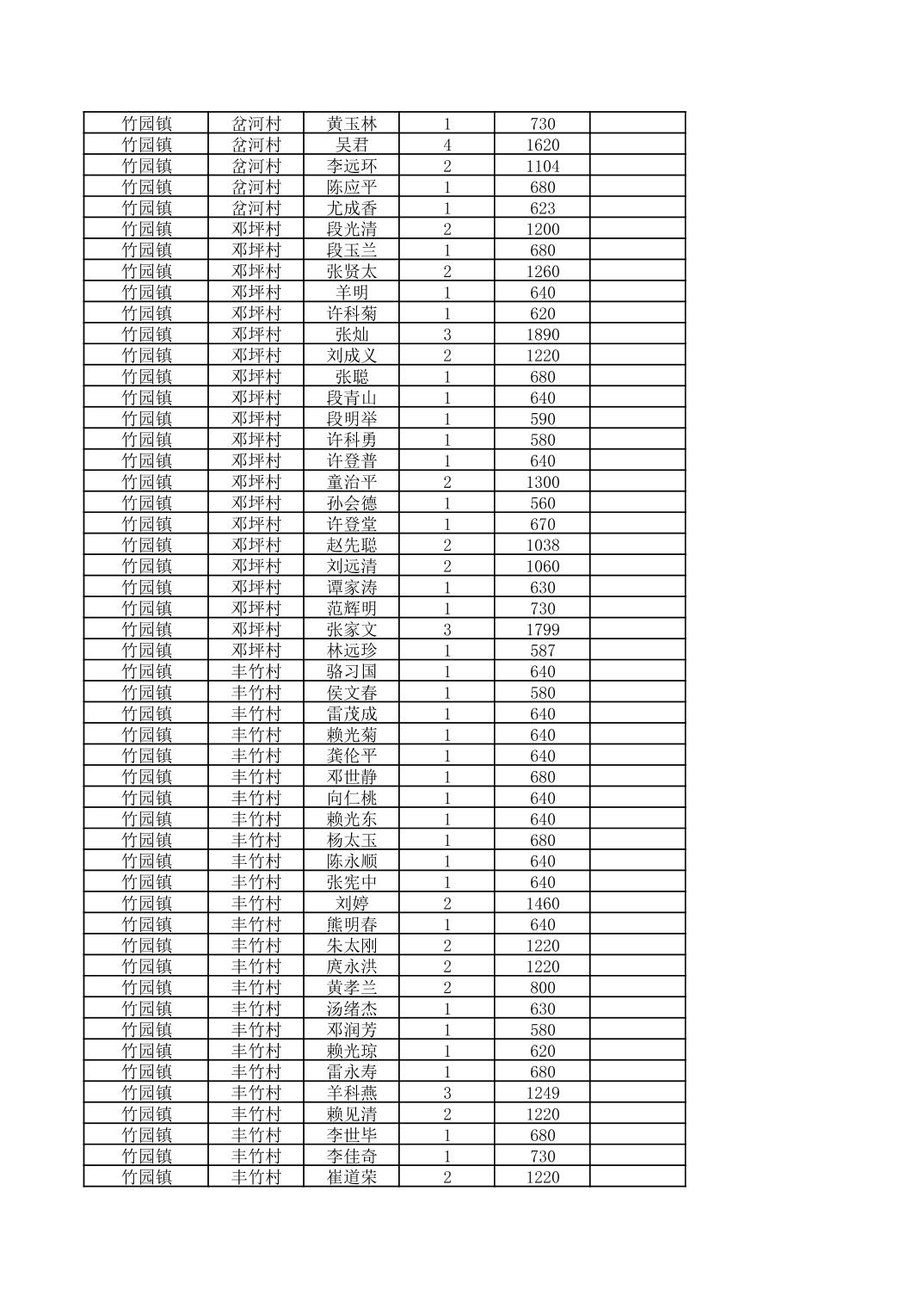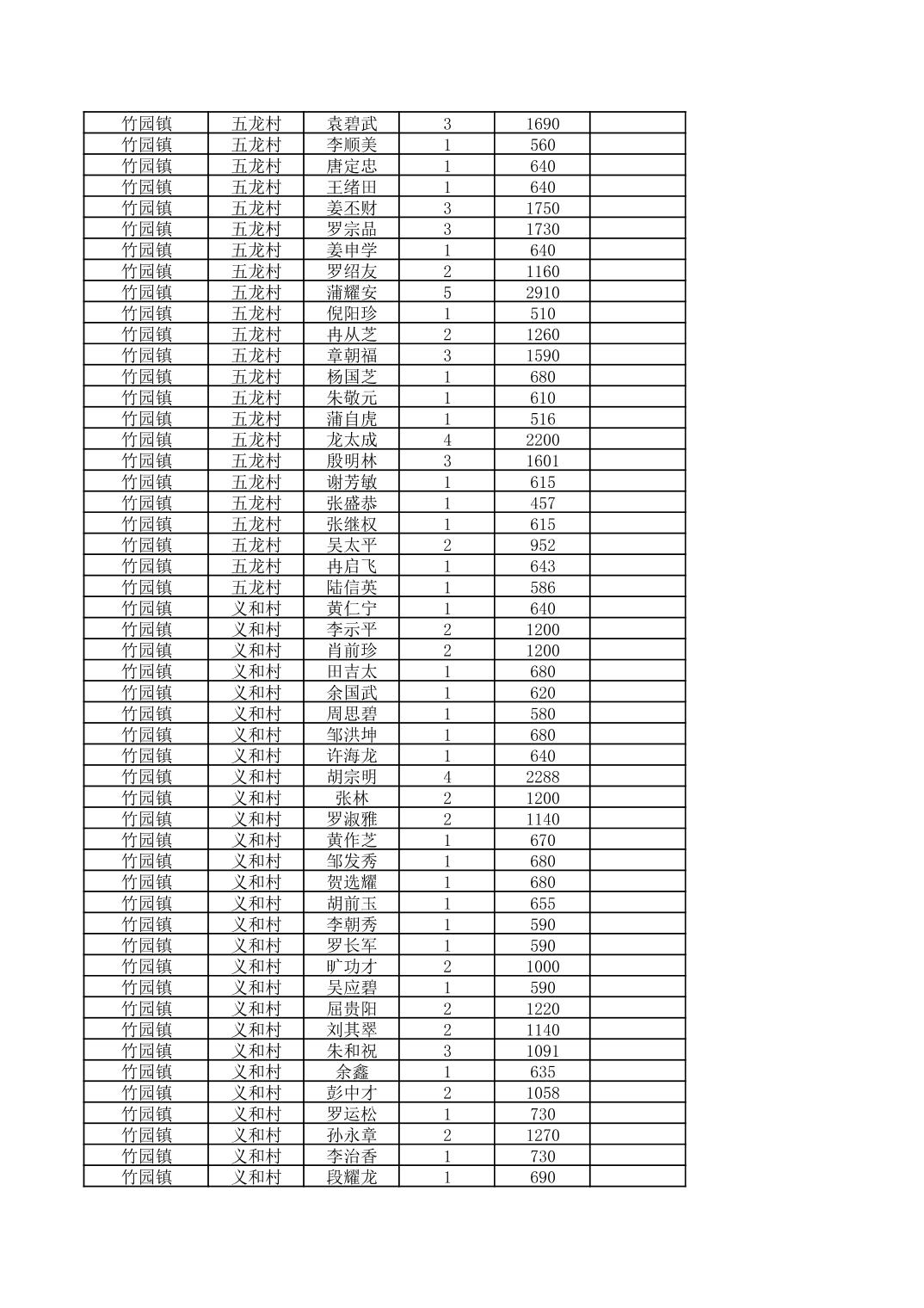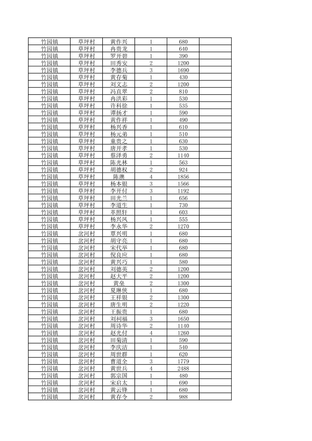 奉节县竹园镇2026年3月份农村低保家庭保障金发放花名册