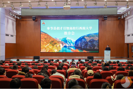在三所学校推介会上,吴涛进行了城市推介和引才政策宣讲,向广大学子发出“选择奉节、扎根奉节”的诚挚邀约。他说,奉节是内畅外联的“新枢纽”,是底蕴厚重的“诗文集”,是旅游度假的“万花筒”,是产城融合的“好品汇”,是近悦远来的“宜居区”,是创新创业的“转化地”和“投资兴业城”。当前,奉节依托中国首批、重庆首个国家创新型县创建成果,围绕“7+6”产业链,正大力发展清洁能源、中药材、数字内容等7大标志性产业,以及精密制造、低空经济、商贸物流等6大潜力性产业,比以往任何时候都更需要人才、更渴望人才、更重视人才,诚邀广大学子来奉节施展才华、成就梦想。他表示,奉节将始终把人才作为重要战略资源,聚焦人才发展全周期需求,精心构建“优居、优创、优享”三大政策体系,全力营造让人才“就业放心、创业安心、生活舒心”的良好环境。最后,他衷心期盼广大学子将奉节作为人生事业的重要选择,与奉节来一场“彼此成全、相互成就”的“双向奔赴”,共赴发展之约、共创精彩价值、共赢美好未来。