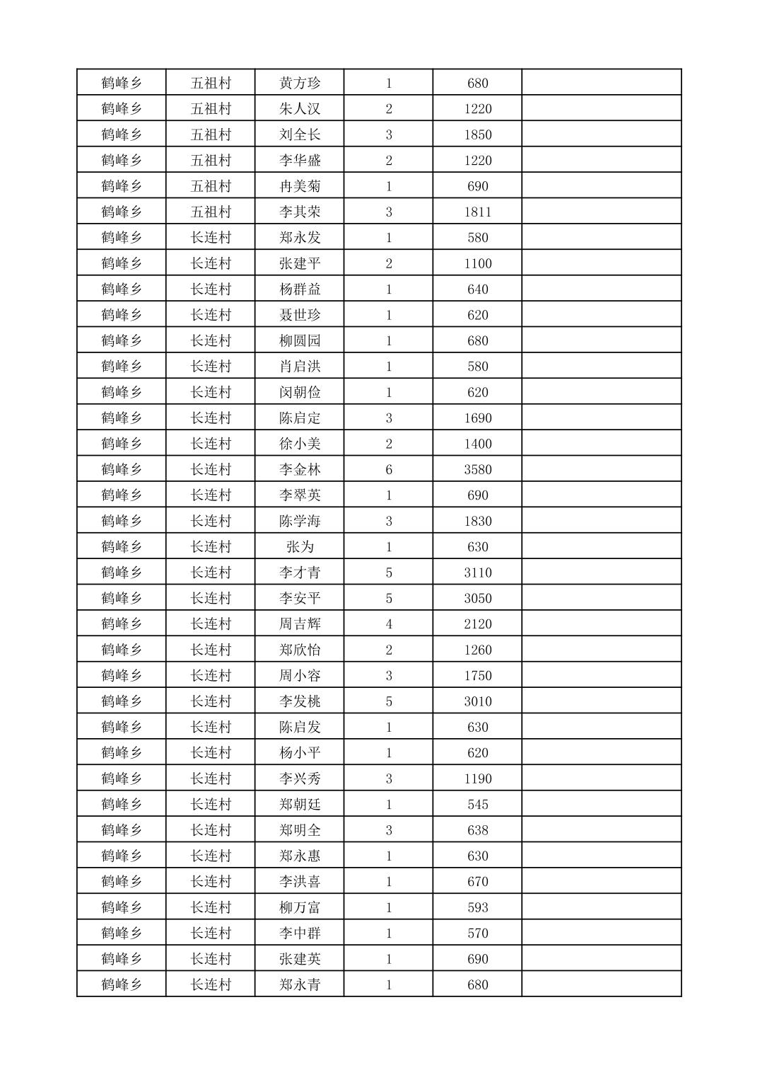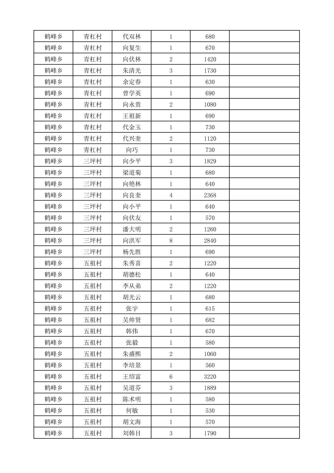 鹤峰乡2025年10月份农村低保家庭保障金发放花名册