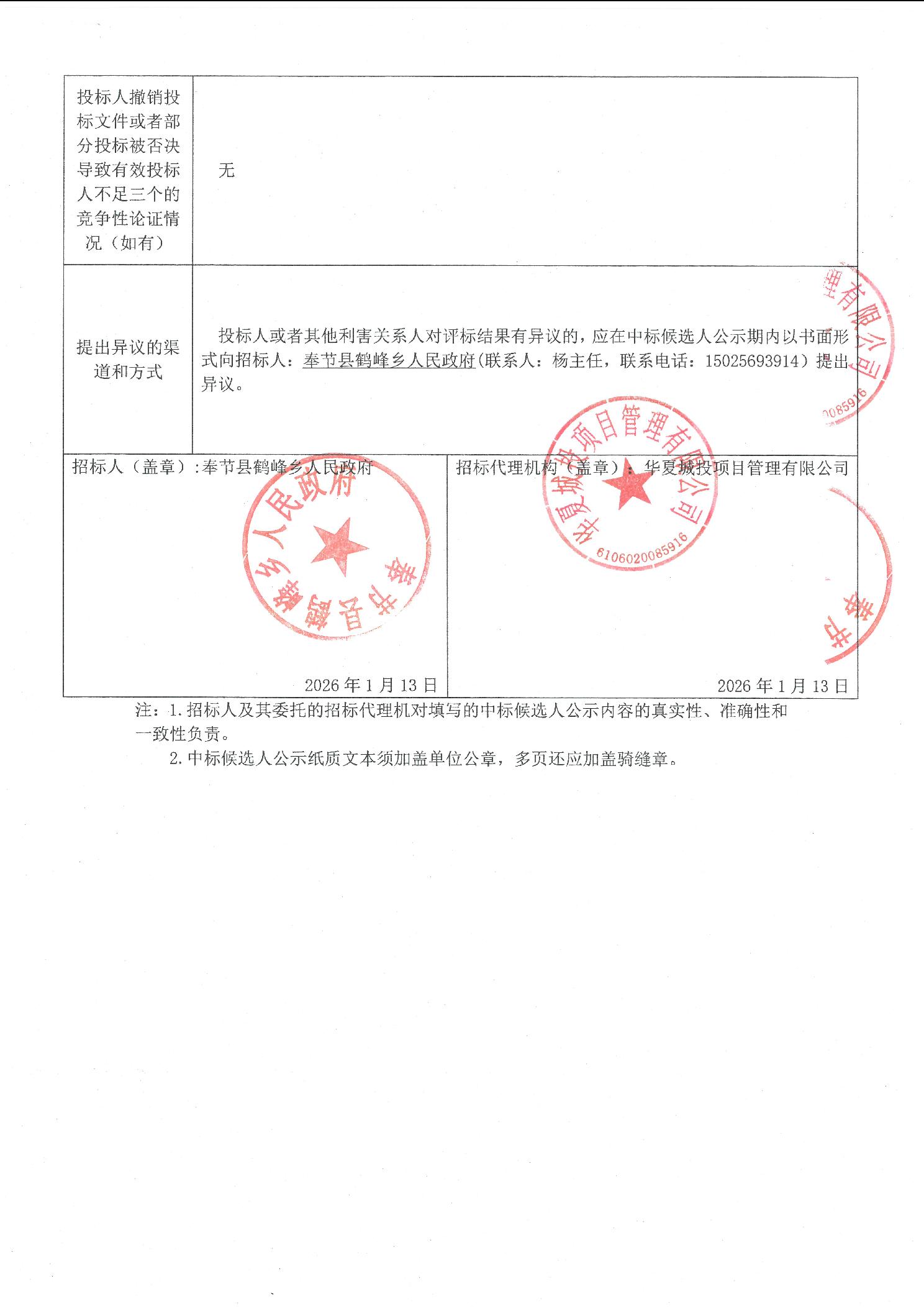 奉节县鹤峰乡2024年度森林修复项目中标候选人公示表