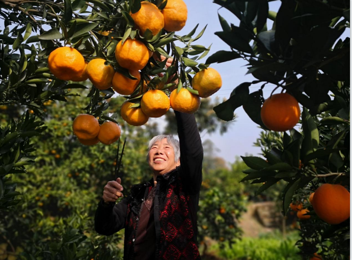 椪柑。因地处墨溪河流域,独特的自然环境造就了特别的水土和气候,给椪柑提供了天然的生长条件,外形圆润广质,口感别具一格。新民镇因地制宜,规划发展5000亩用于“好吃不上火”的新民椪柑规模化种植,并着力推进品牌化、链条化建设,设计使用“新民椪柑”特色包装盒,逐步研究发展提高附加值、延长产业链的产业规划。产出可达1千万斤,产值达3000多万元。主要分布种植于长棚、新坝、中台、伞坪,中台四个村,中台200亩椪柑采摘园正投入建设,借助农旅融合的路子正在让金黄的椪柑变成脱贫攻坚的致富果,让可口的椪柑变成乡村振兴的幸福果。