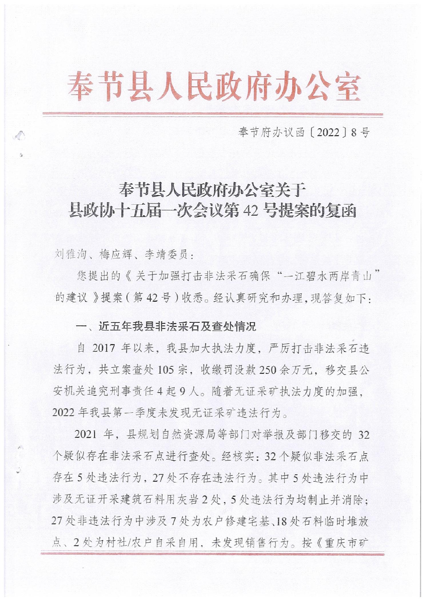 关于县政协十五届一次会议第42号提案的复函