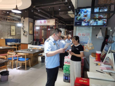 执法人员检查餐饮店菜单