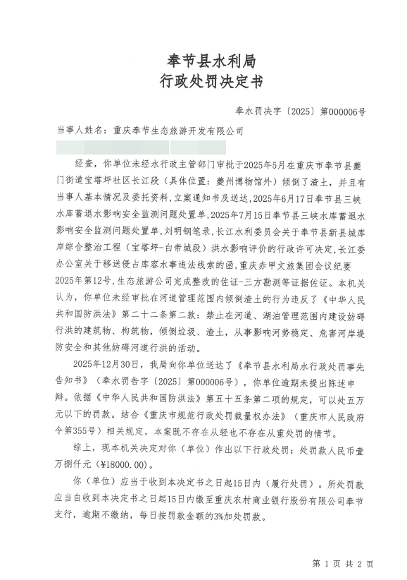 奉水罚〔2025〕第6号