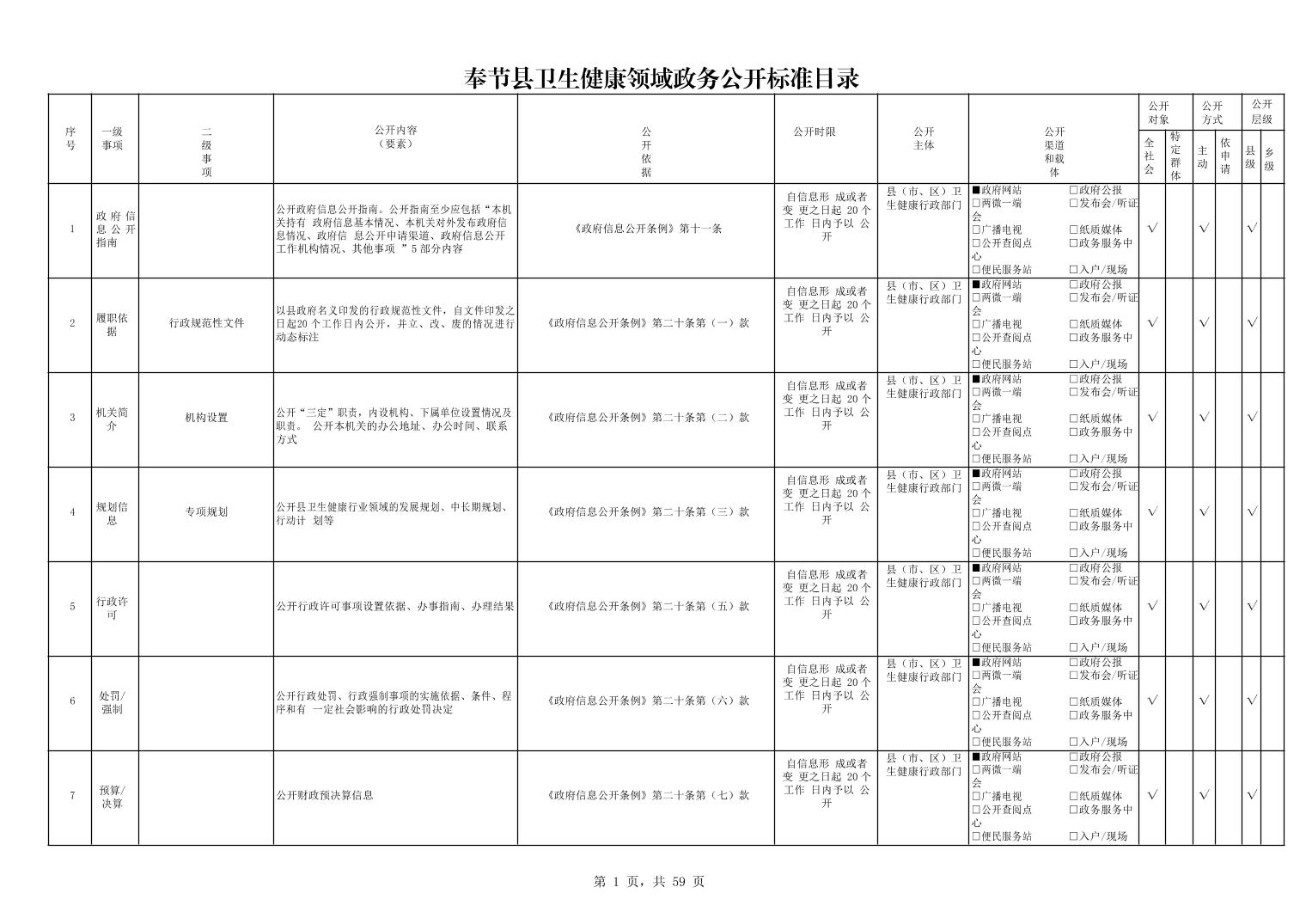 奉节县卫生健康领域政务公开标准目录