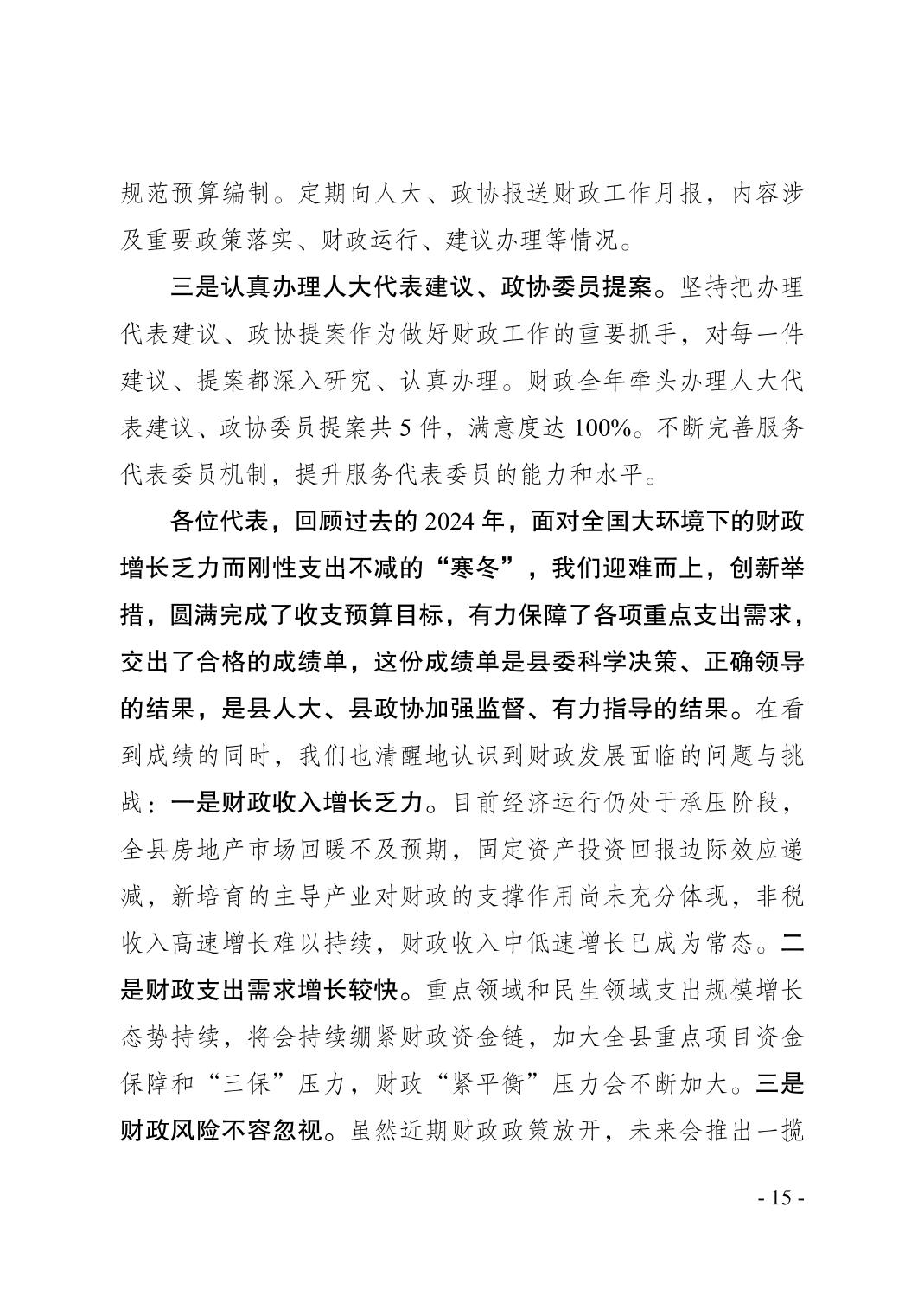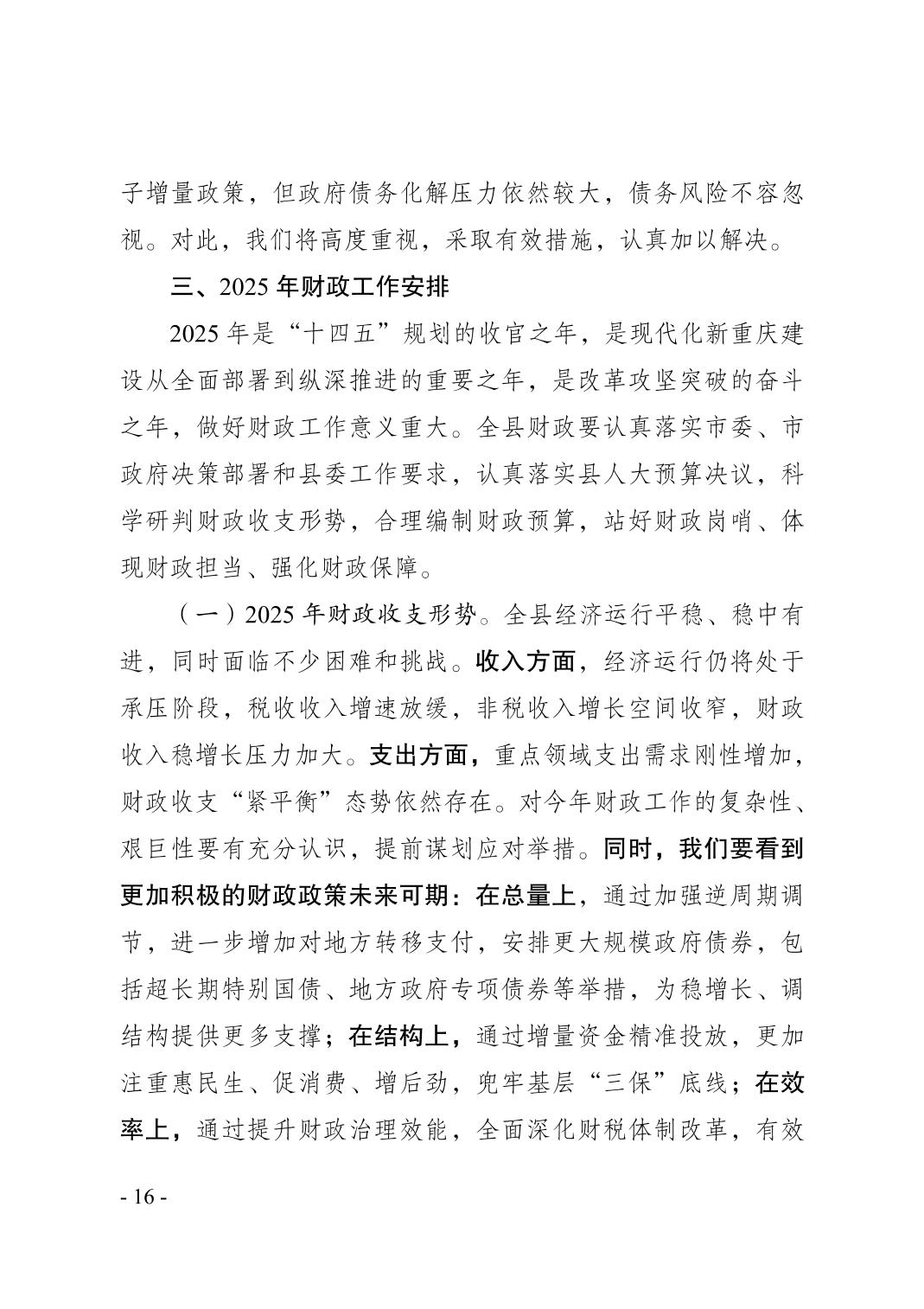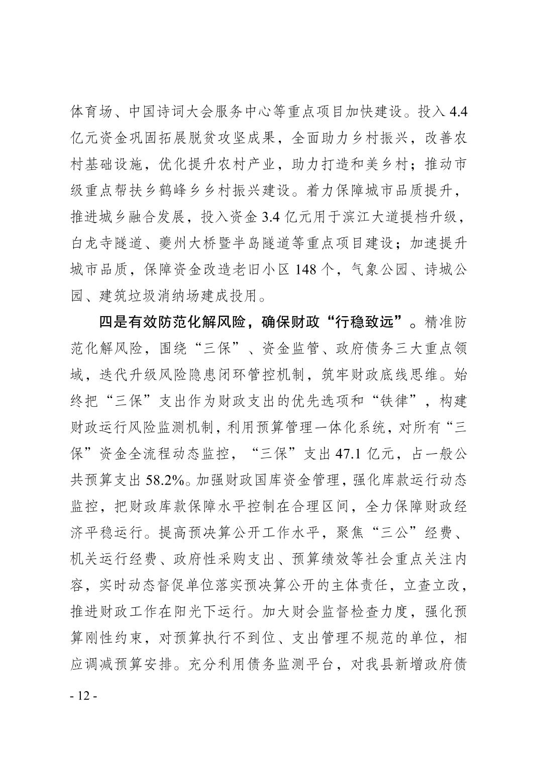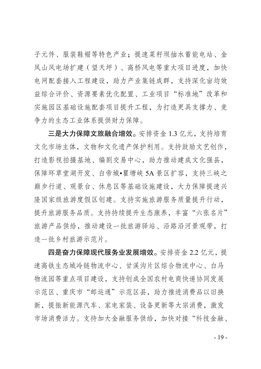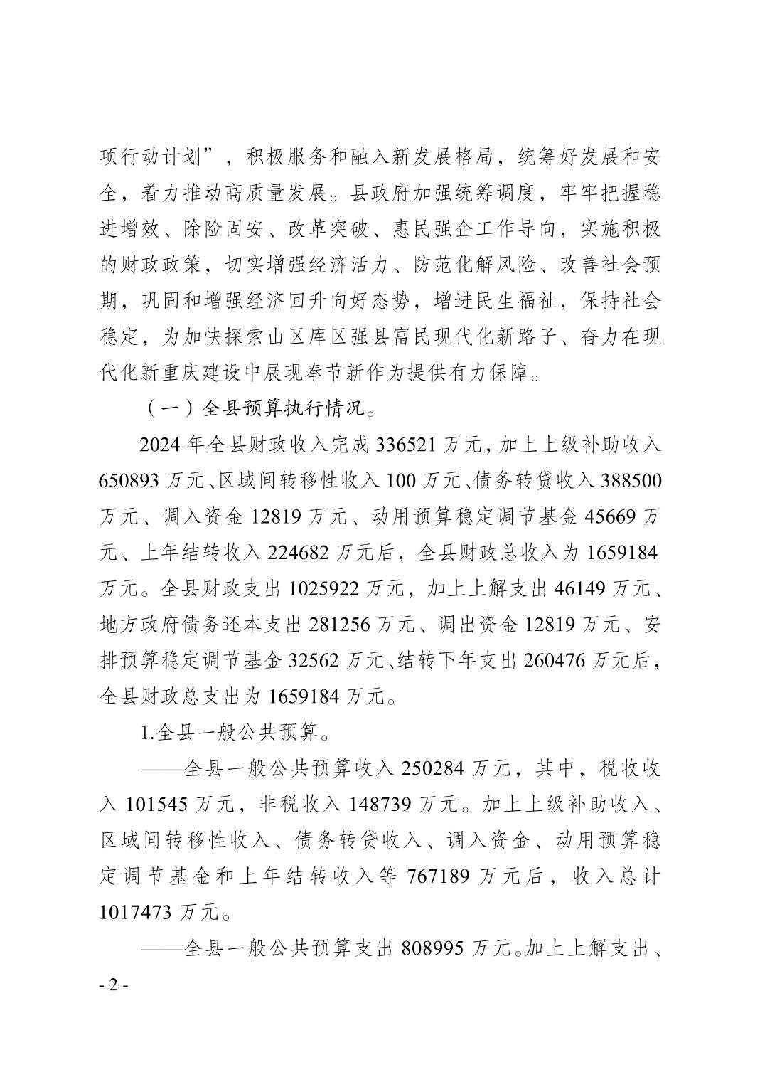 奉节县2024年财政预算执行情况和2025年财政预算草案的报告