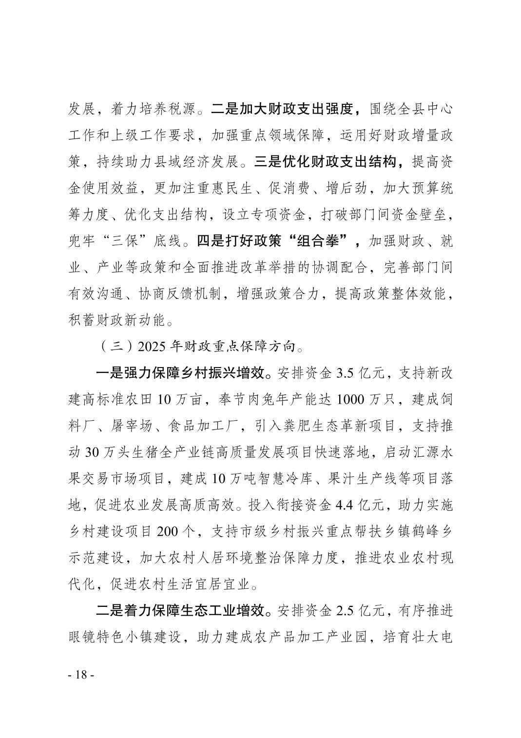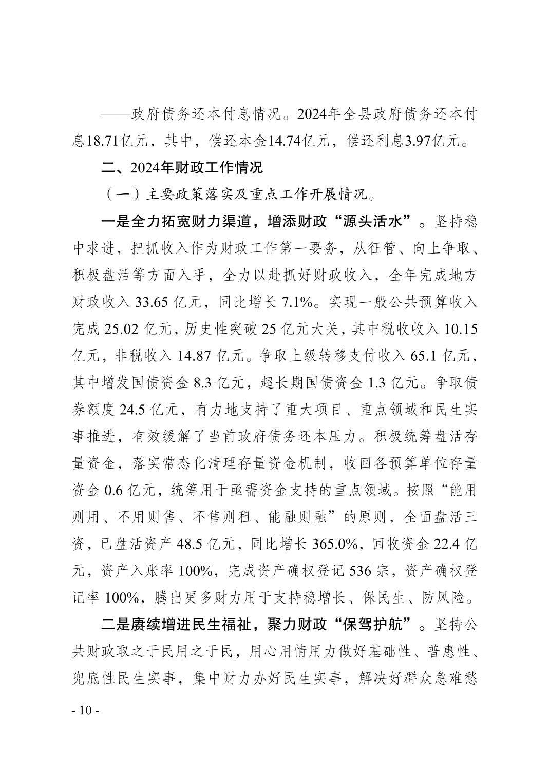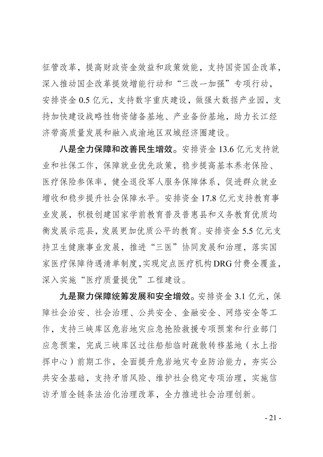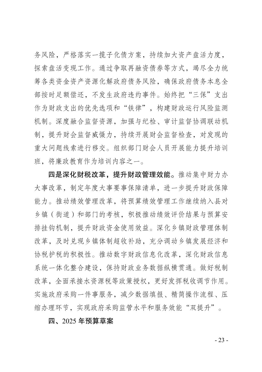 奉节县2024年财政预算执行情况和2025年财政预算草案的报告