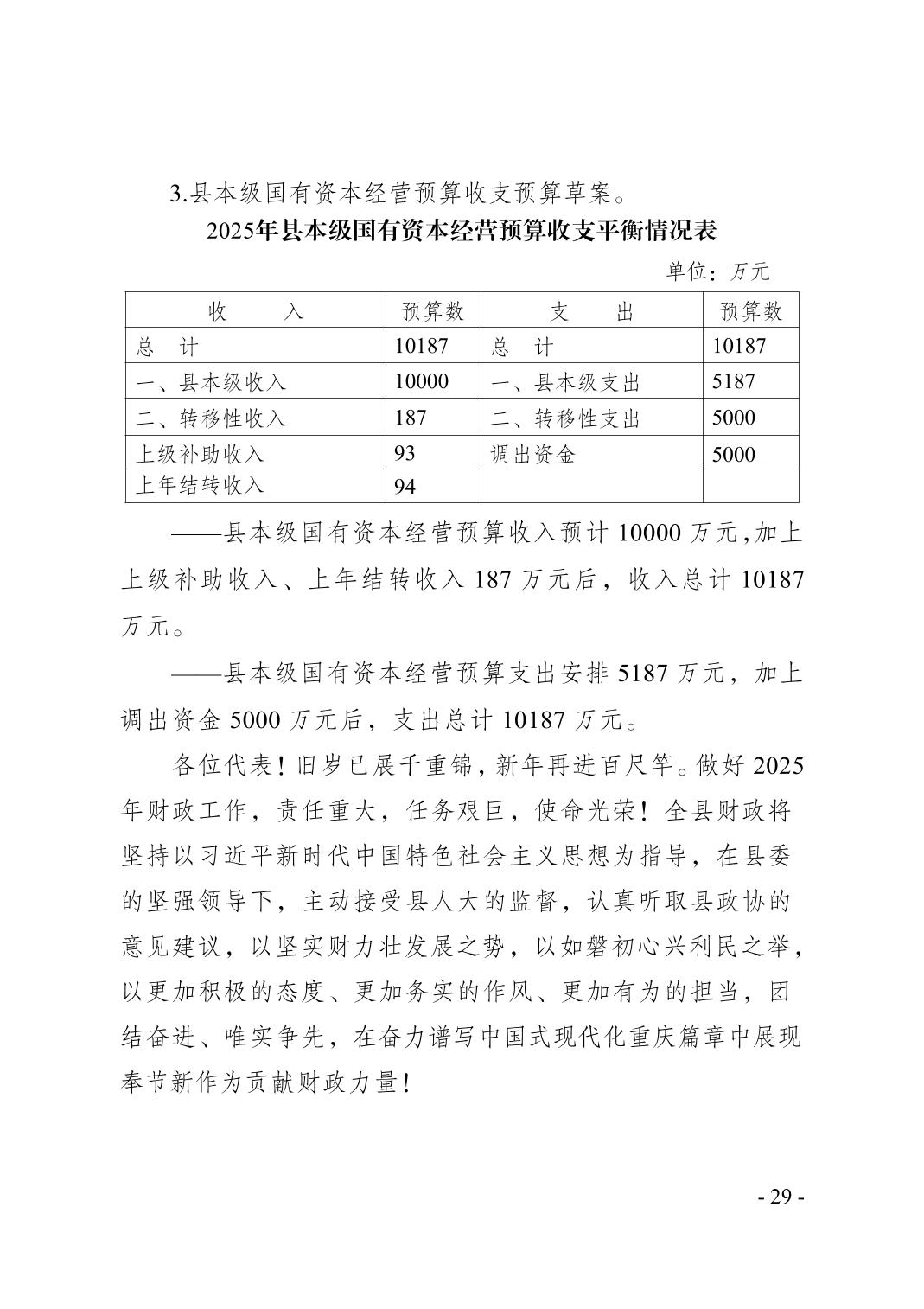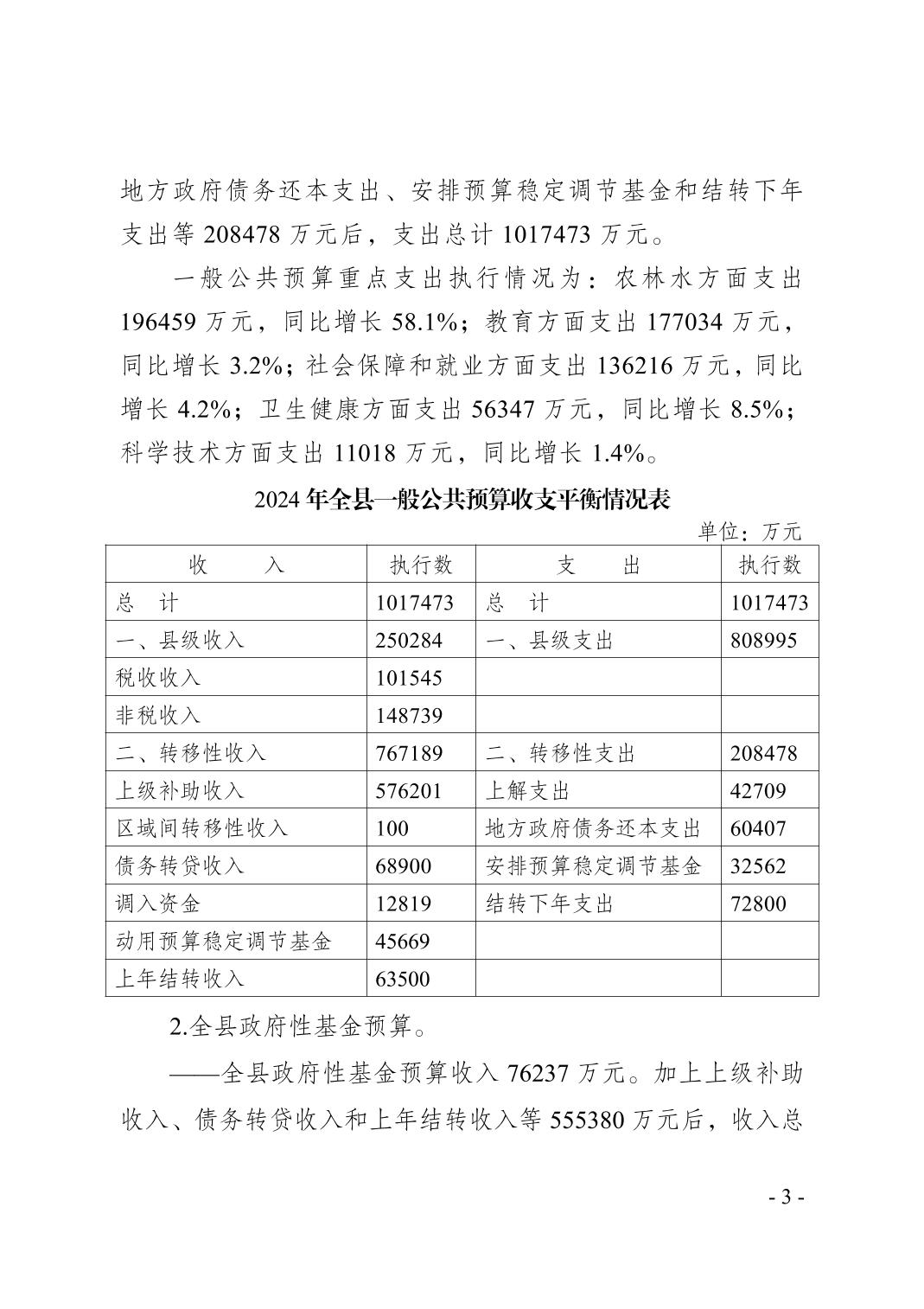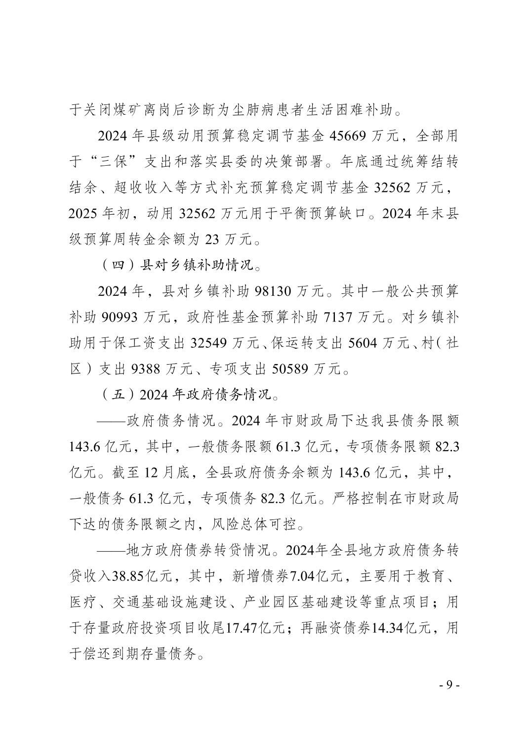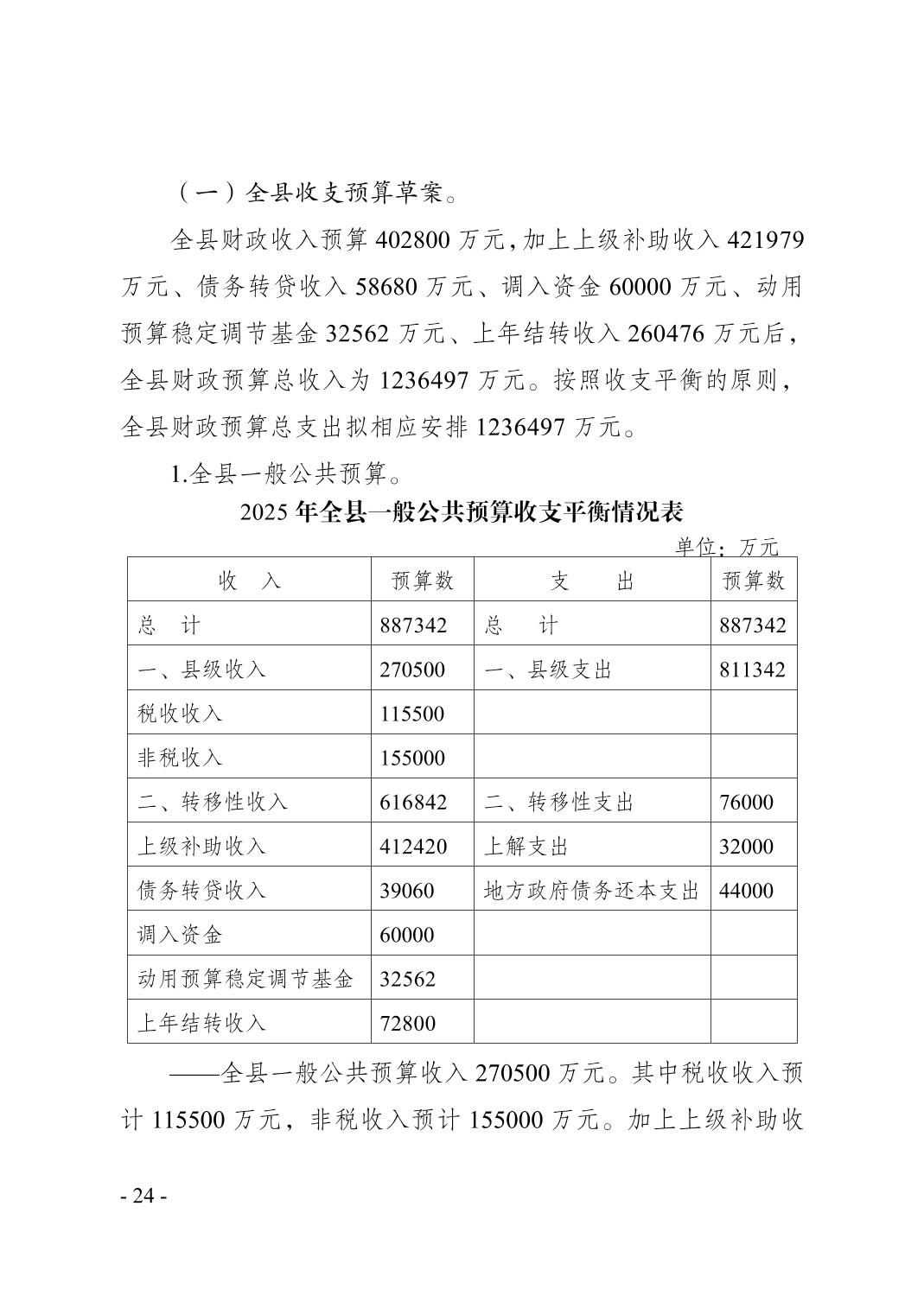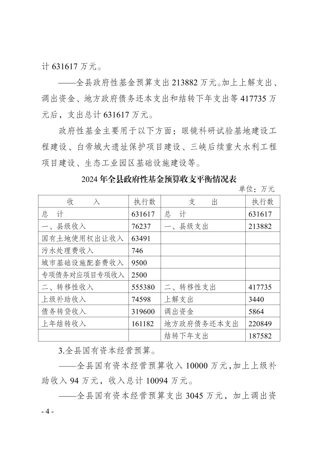 奉节县2024年财政预算执行情况和2025年财政预算草案的报告