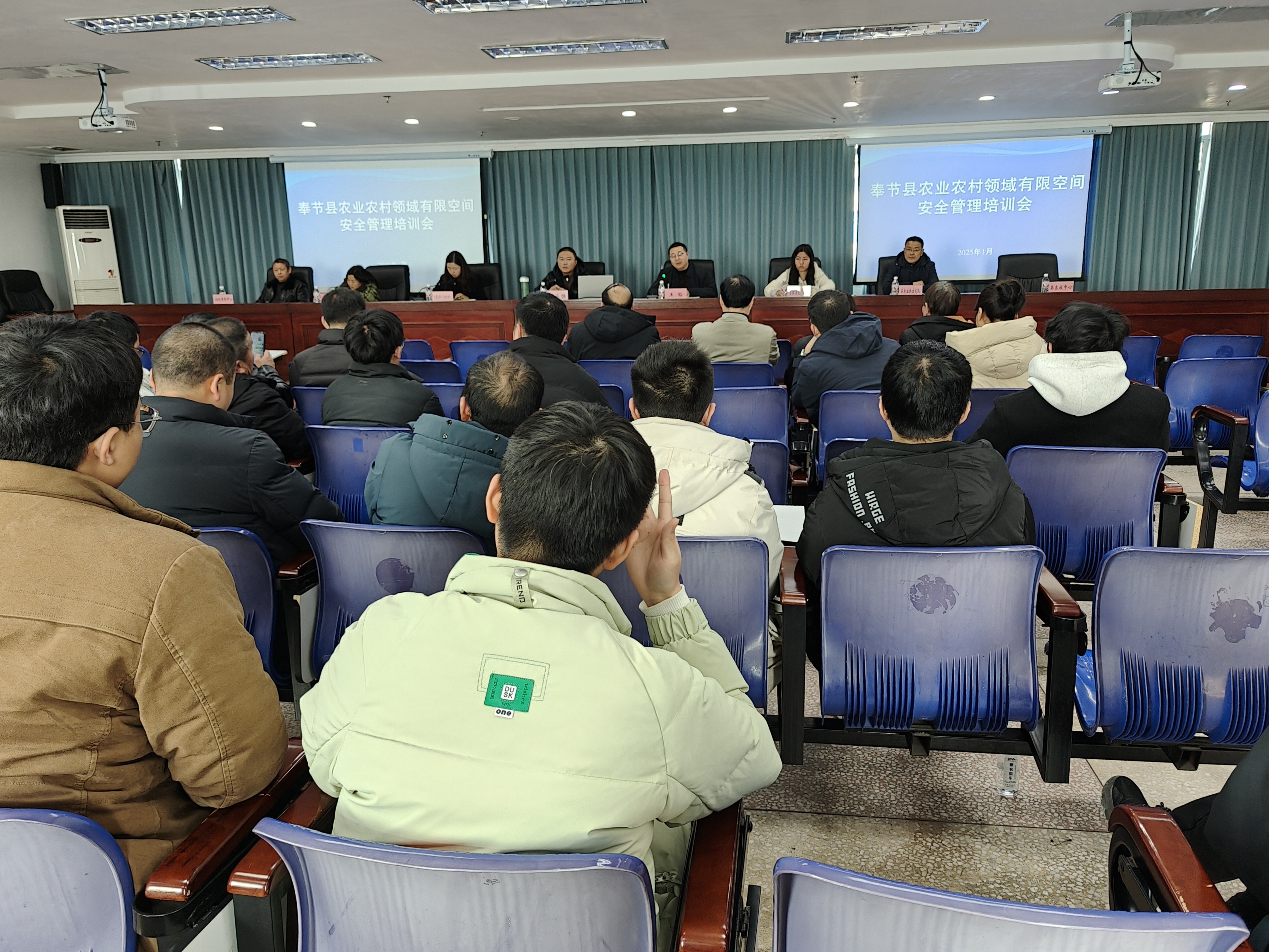 为贯彻落实重庆市政府对农业领域有限空间安全生产工作安排部署及《重庆市有限空间等有毒有害场所安全生产集中整治方案》有关要求,普及安全生产知识,强化安全生产意识,规范有限空间操作流程,切实强化有限空间安全管理。2025年1月21日,奉节县农业农村委员会组织召开2025年全县农业农村领域有限空间现场培训会议,各乡镇(街道)农业服务中心主任、具体经办人,规模以上养殖场负责人,定点屠宰场负责人,县农业农村委政策法规科、乡村建设科、畜牧兽医水产科、县农村社会事务中心、县畜牧业中心、县农业综合行政执法支队有关负责人等近100人参与此次会议。