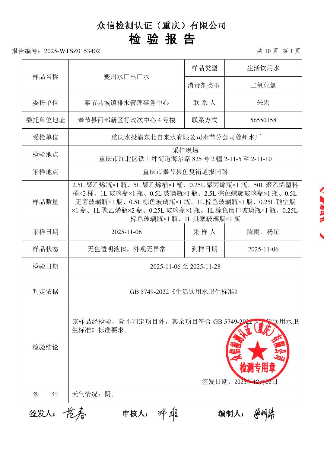 按照《重庆市供节水条例》、《重庆市城市供水水质管理办法》要求,现将2025年11月城市供水水厂出厂水水质监测结果予以公示。