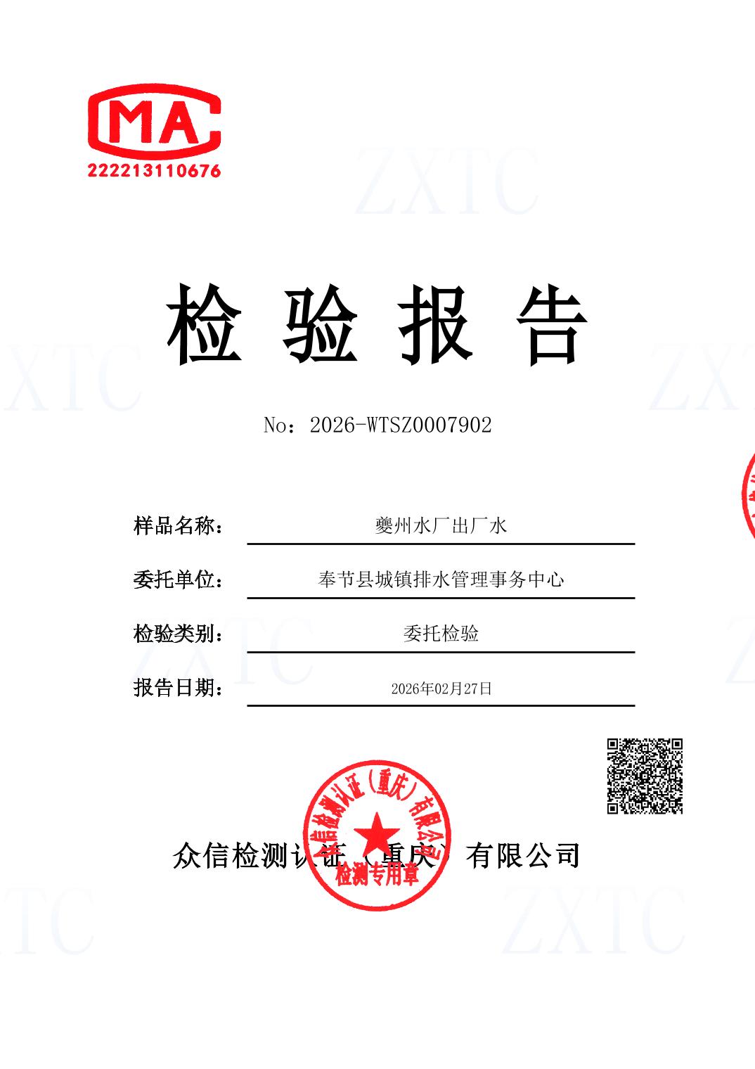 按照《重庆市供节水条例》、《重庆市城市供水水质管理办法》要求,现将2026年2