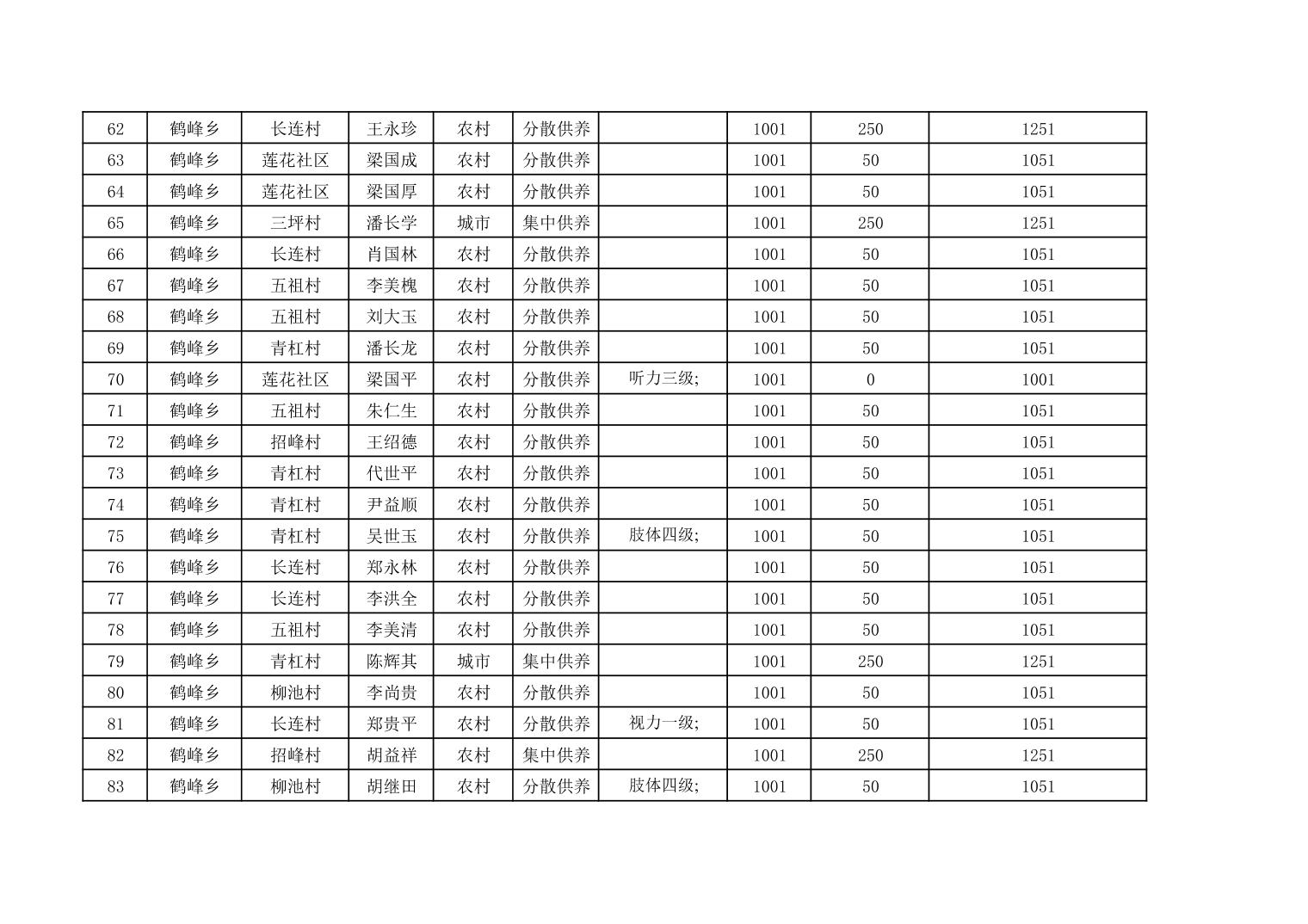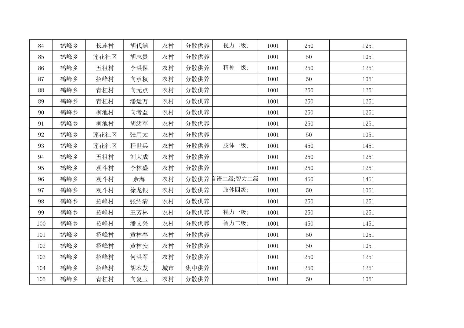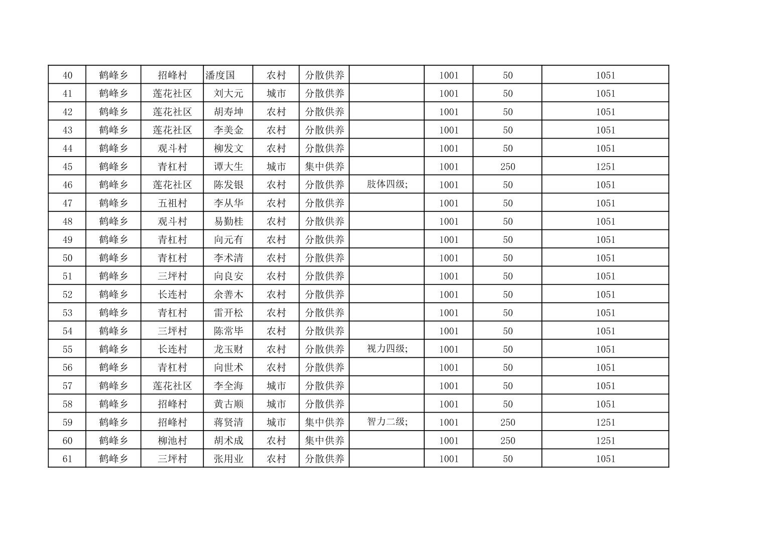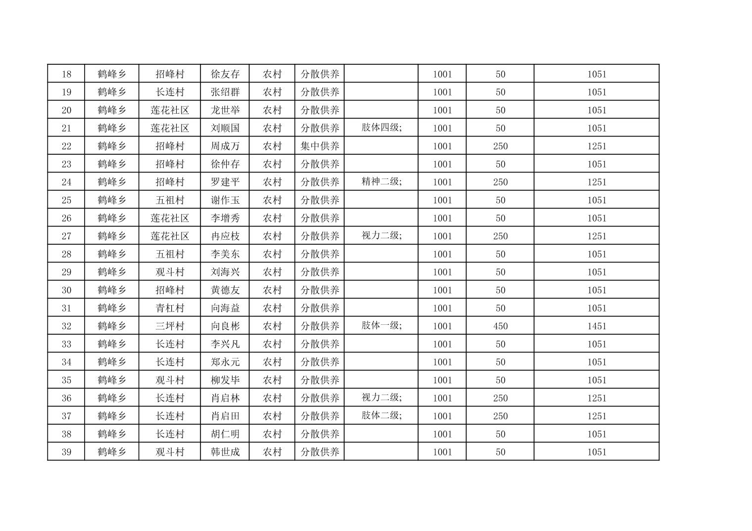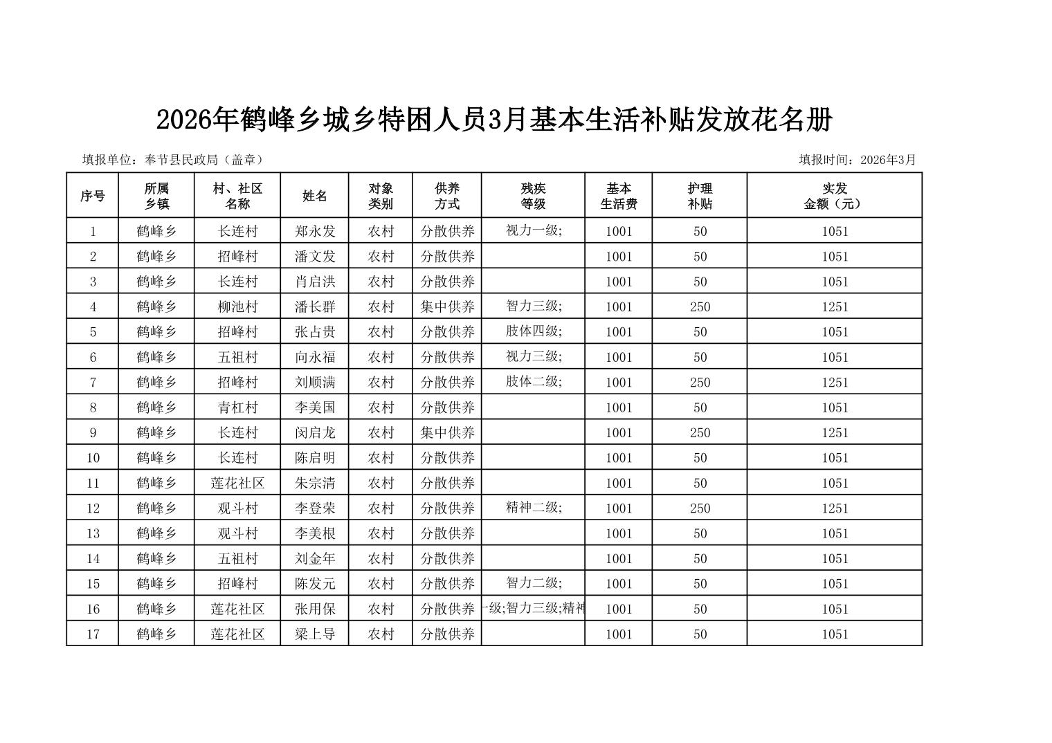2026年鹤峰乡城乡特困人员3月基本生活补贴发放花名册