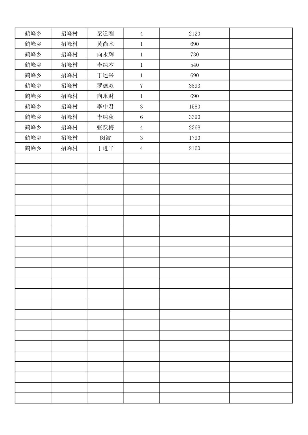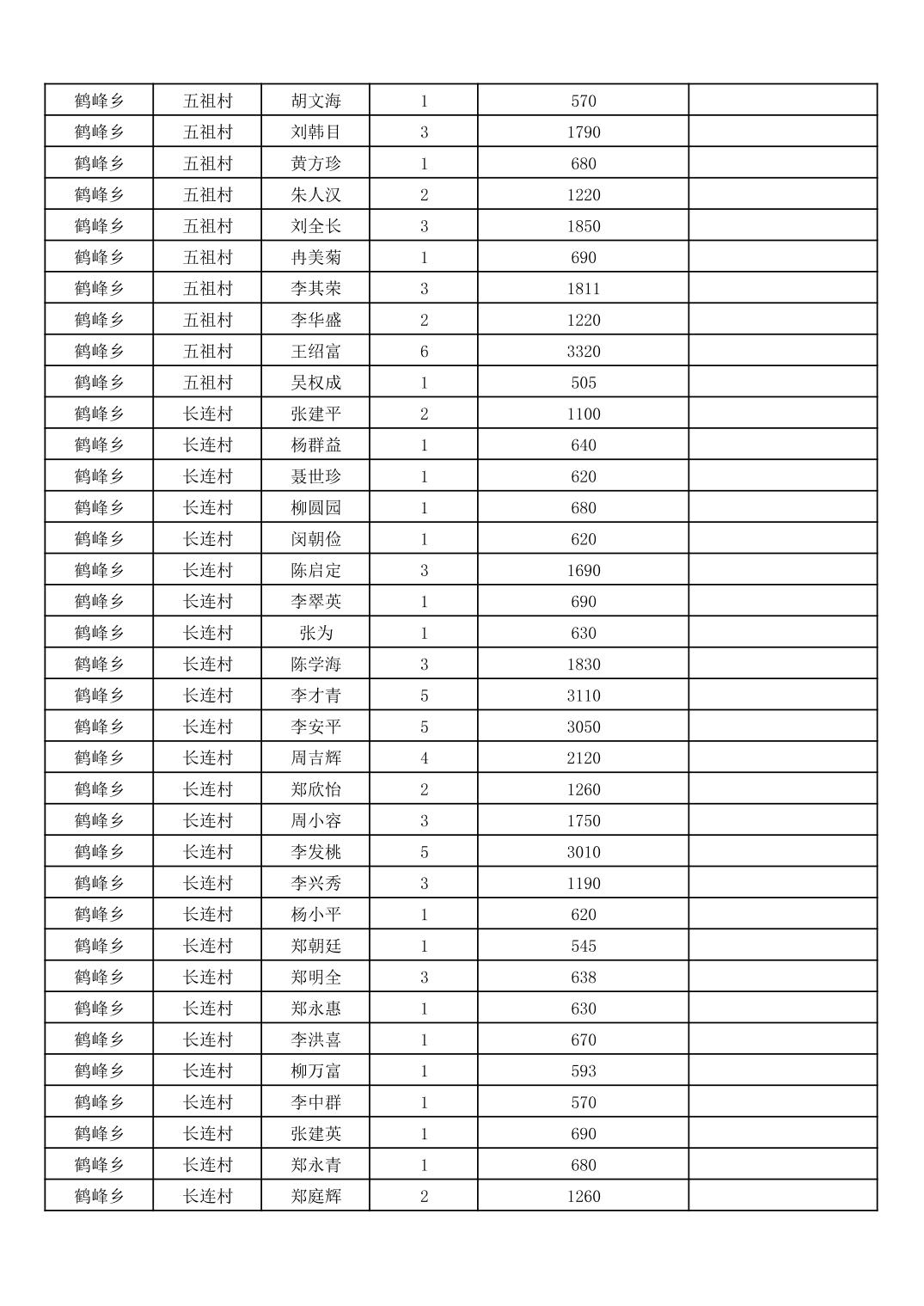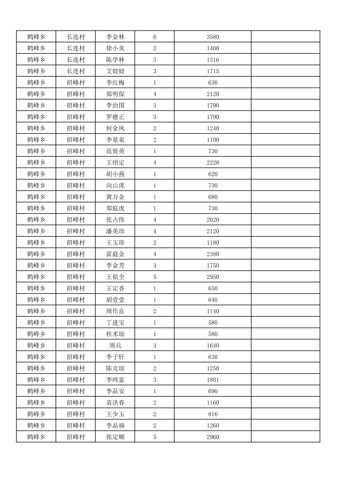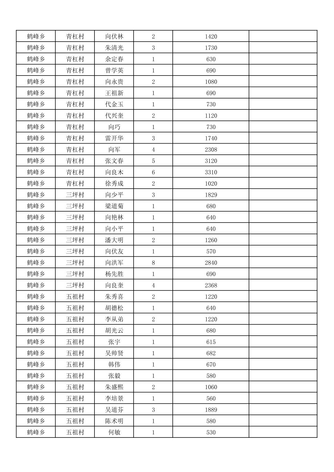 鹤峰乡2026年3月份农村低保家庭保障金发放花名册
