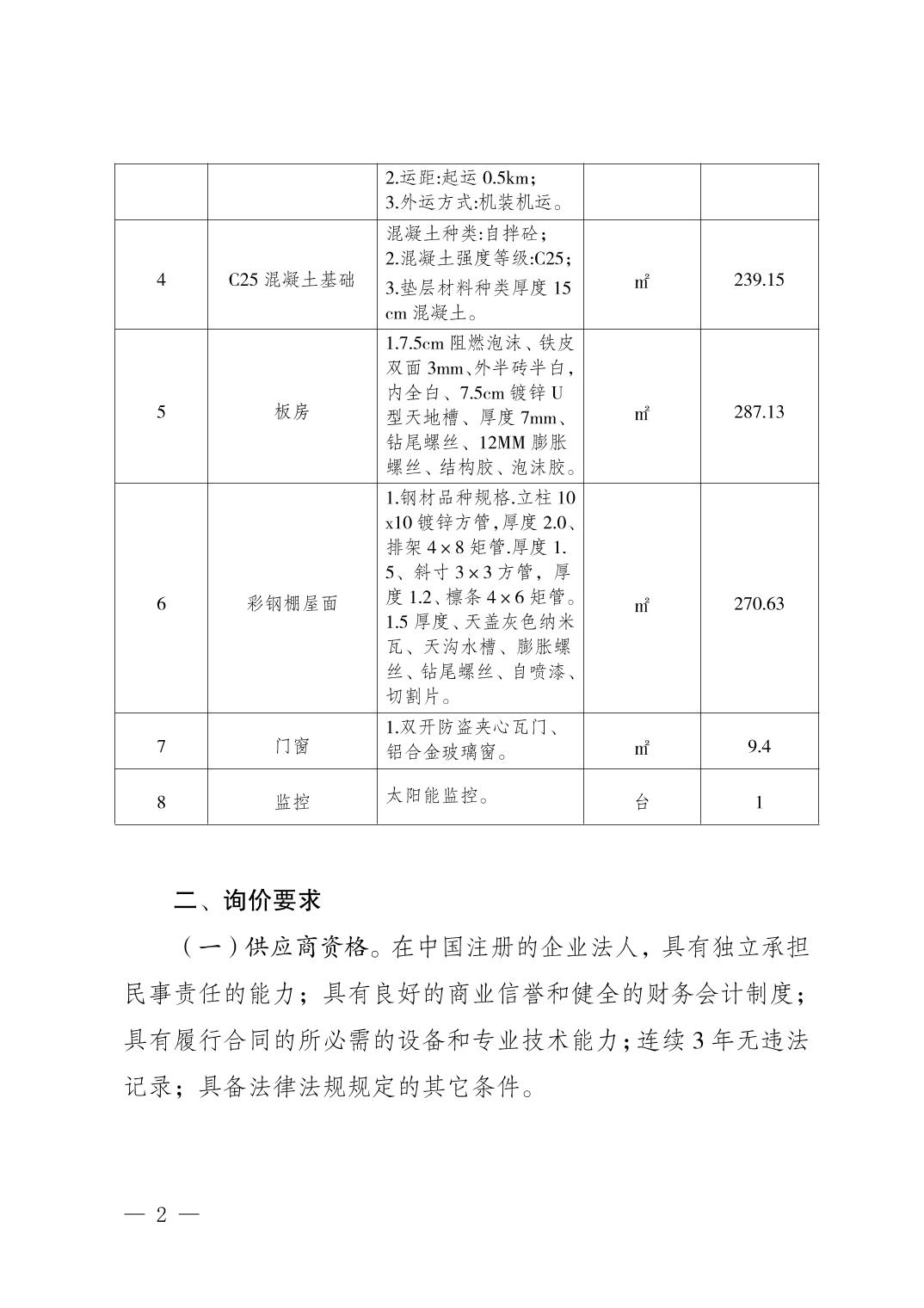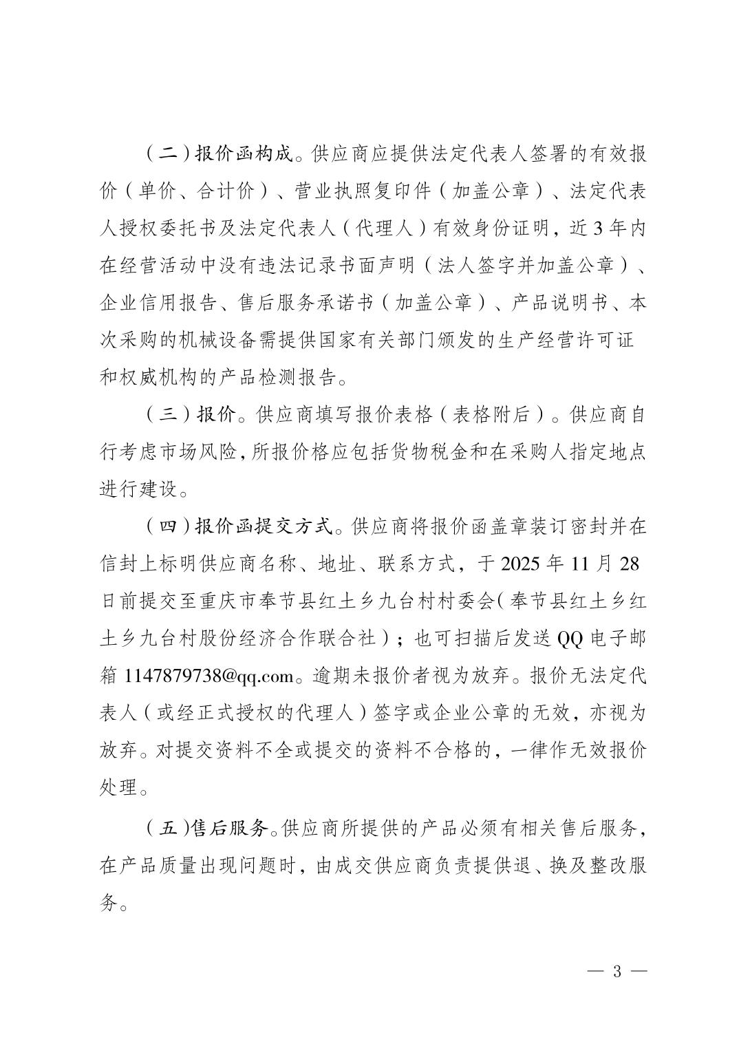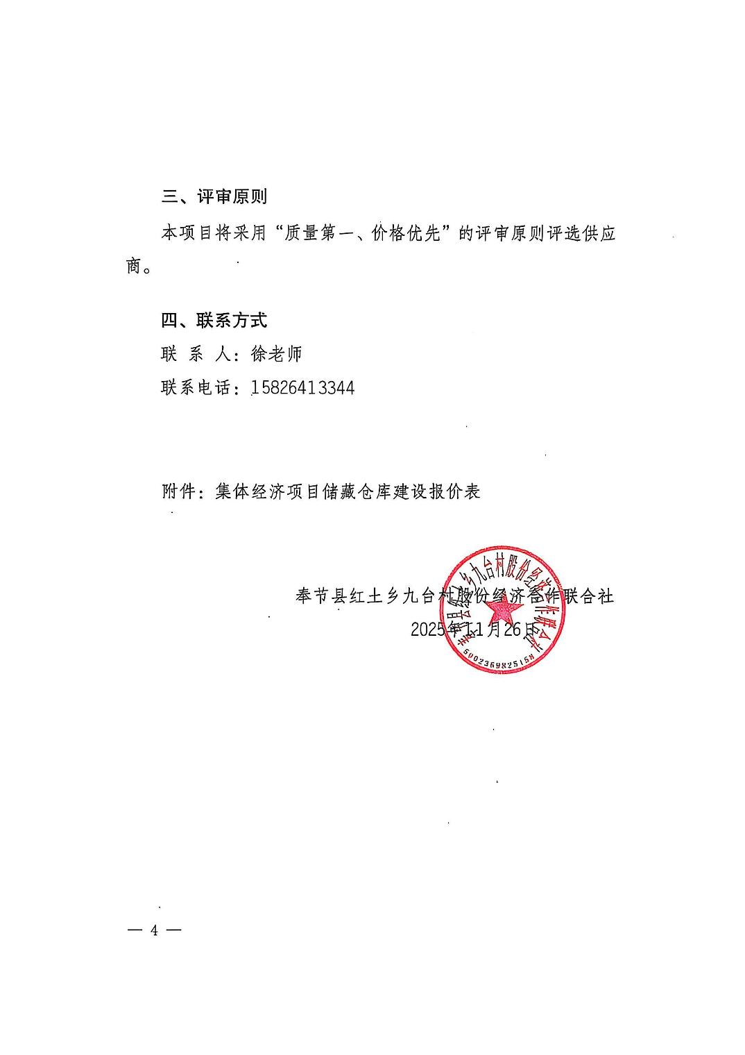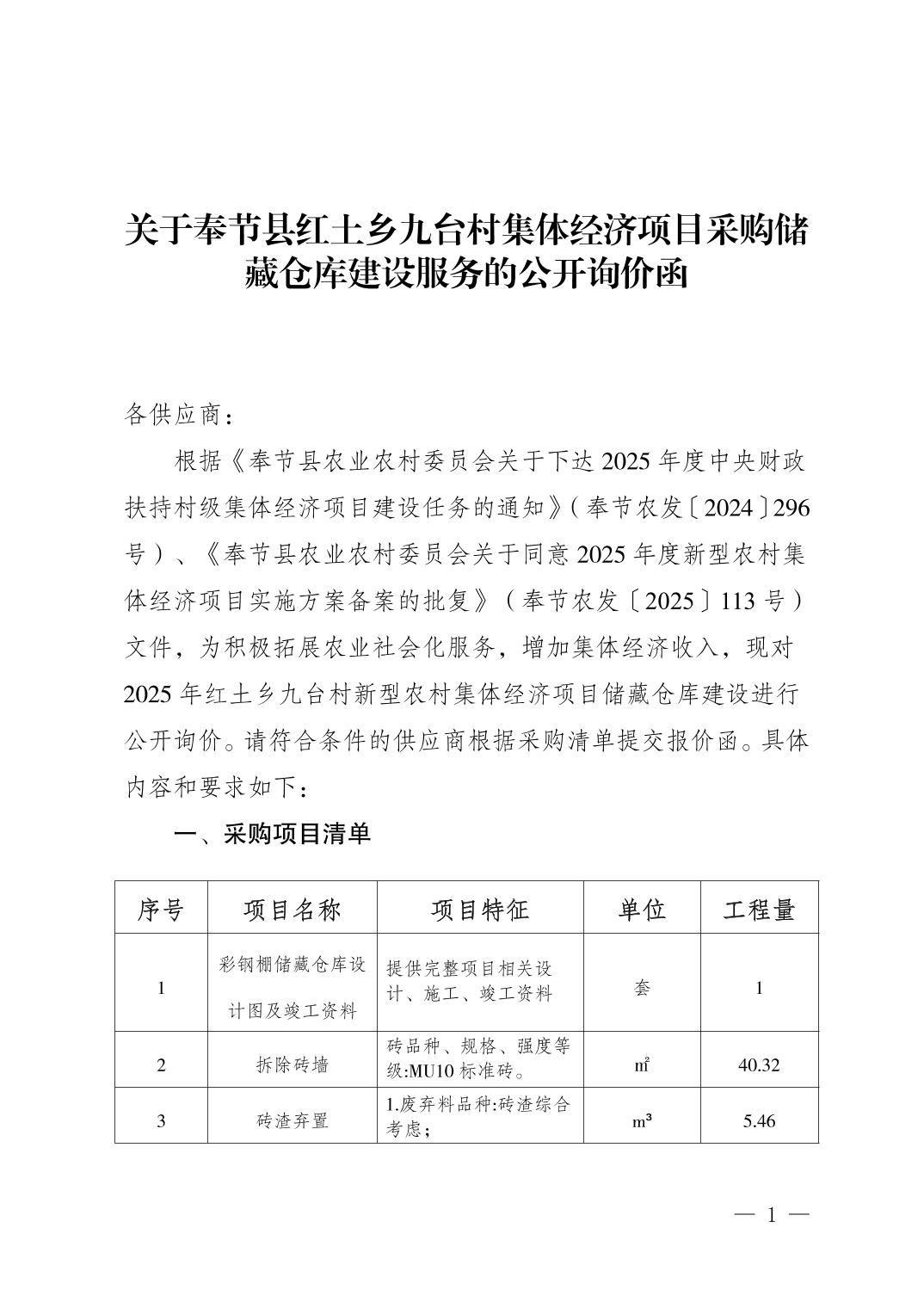 奉节县红土乡九台村集体经济项目关于采购储藏仓库建设服务的公开询价函