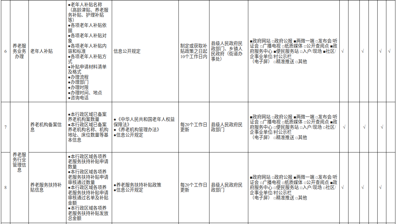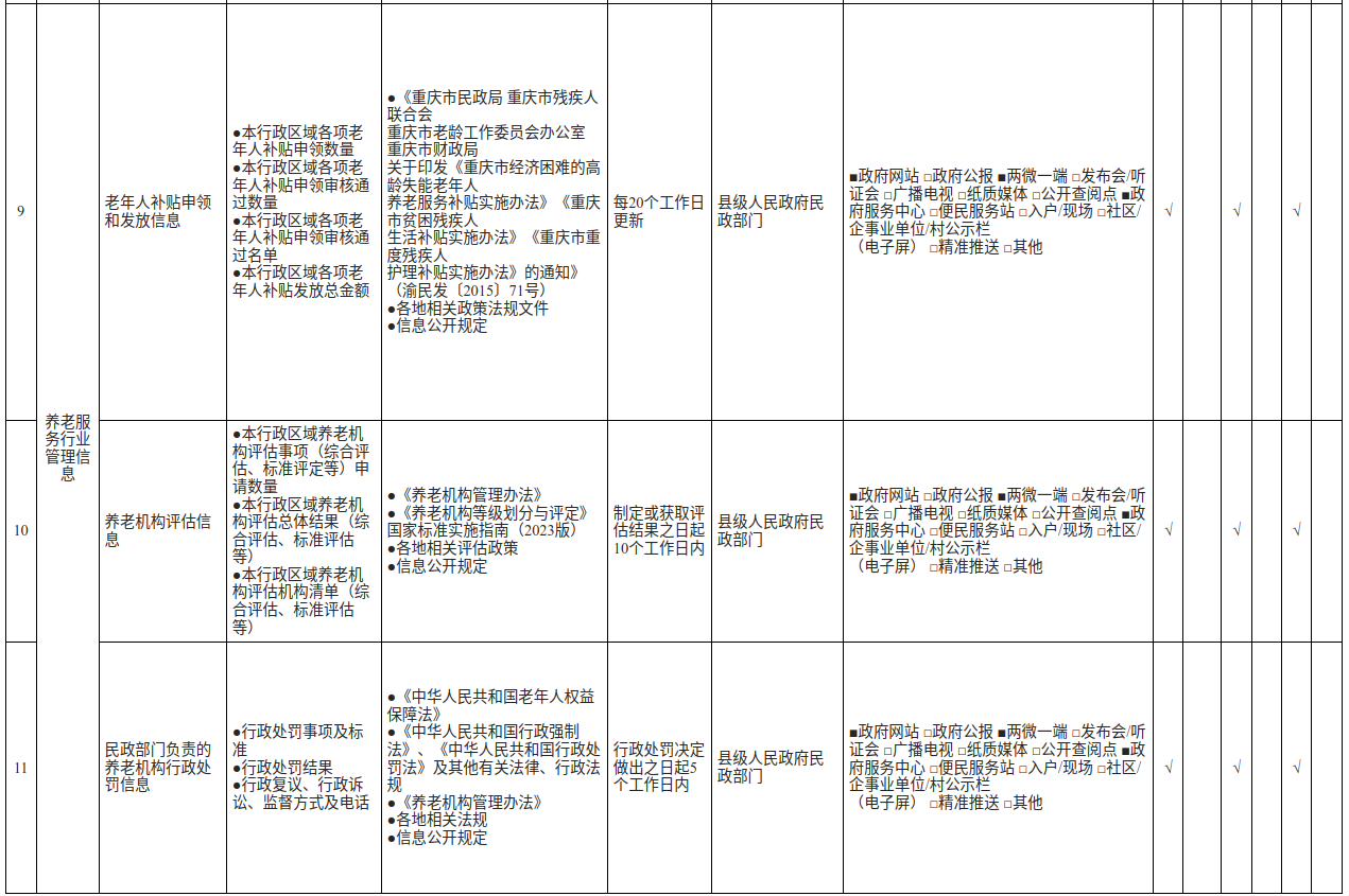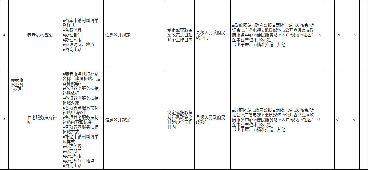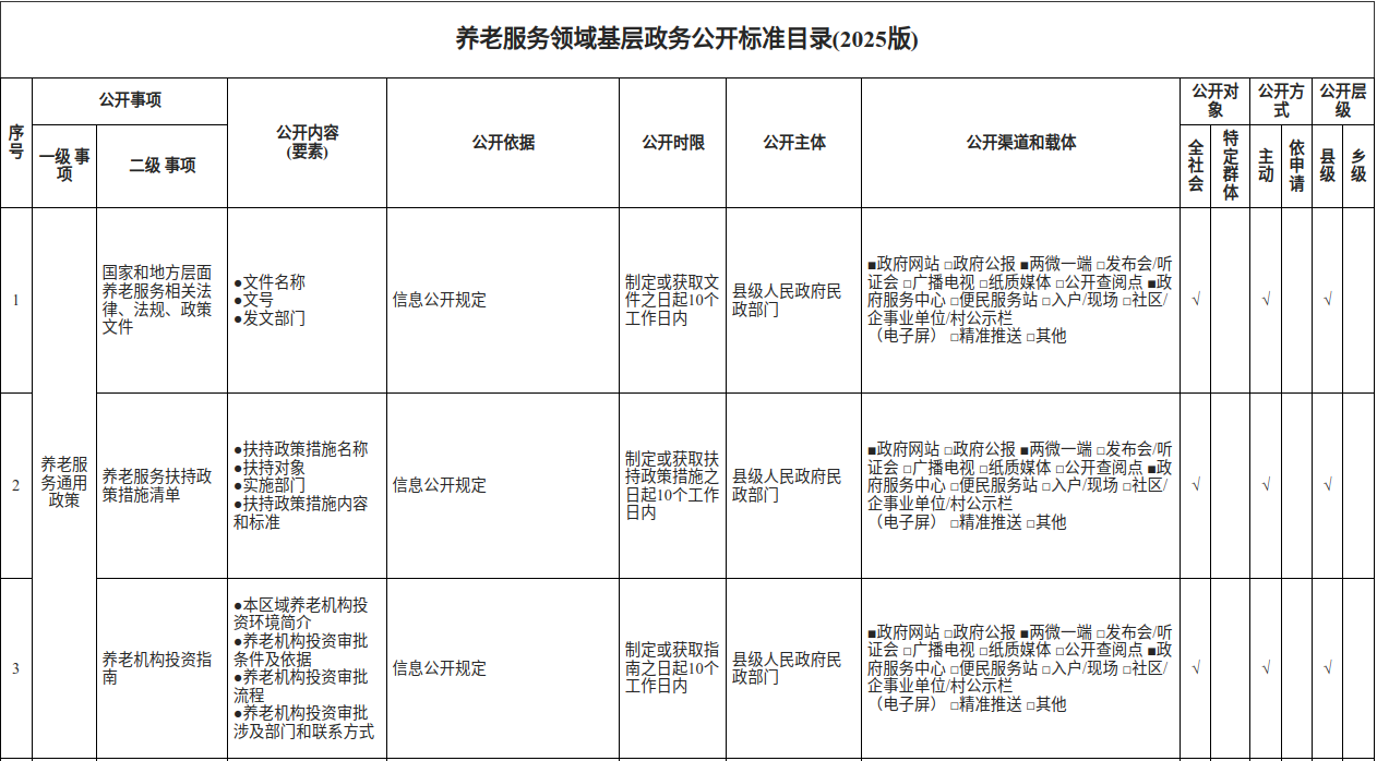 奉节县养老服务领域基层政务公开标准目录(2025版)