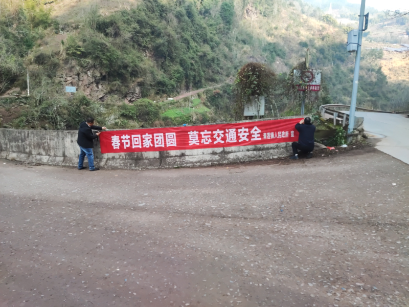 青莲镇:张贴出行横幅 传递节日温情