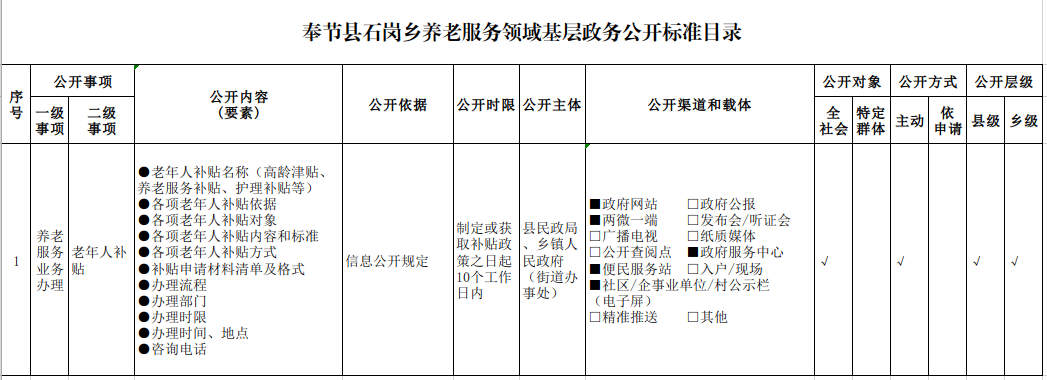 奉节县石岗乡养老服务领域基层政务公开标准目录