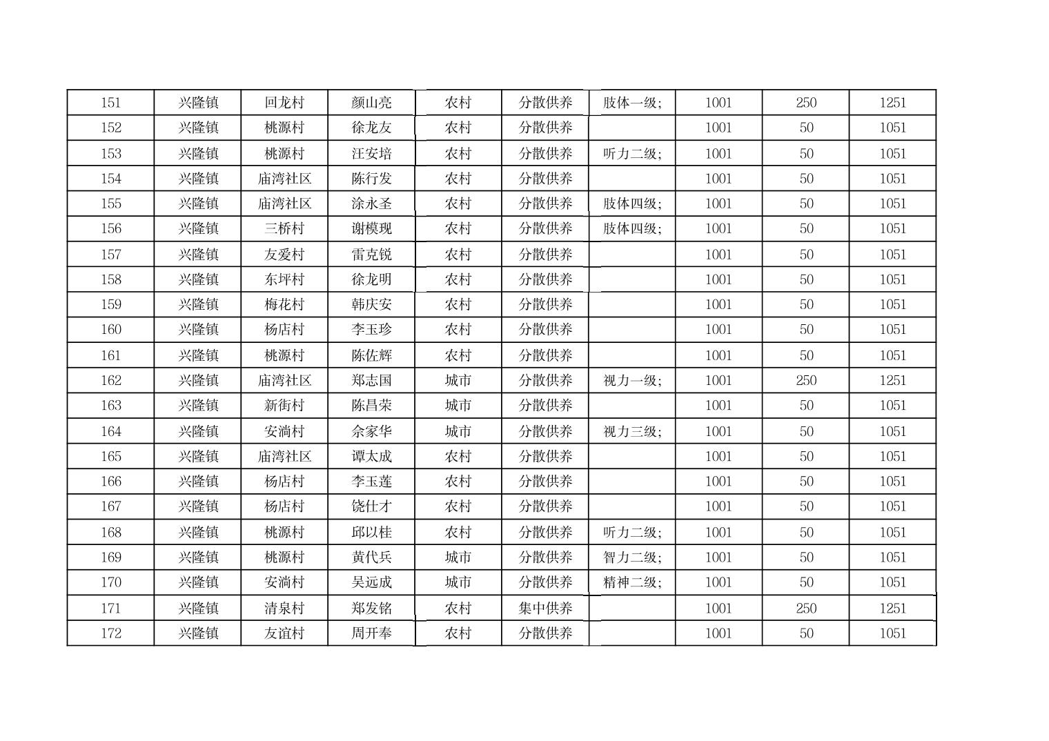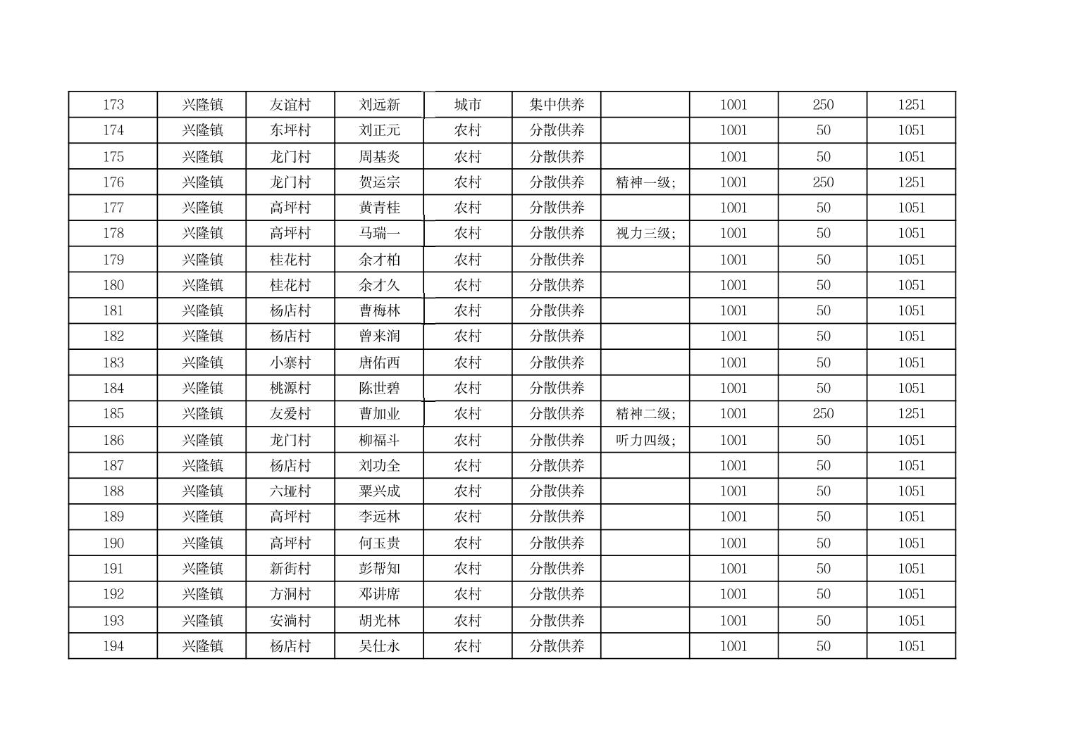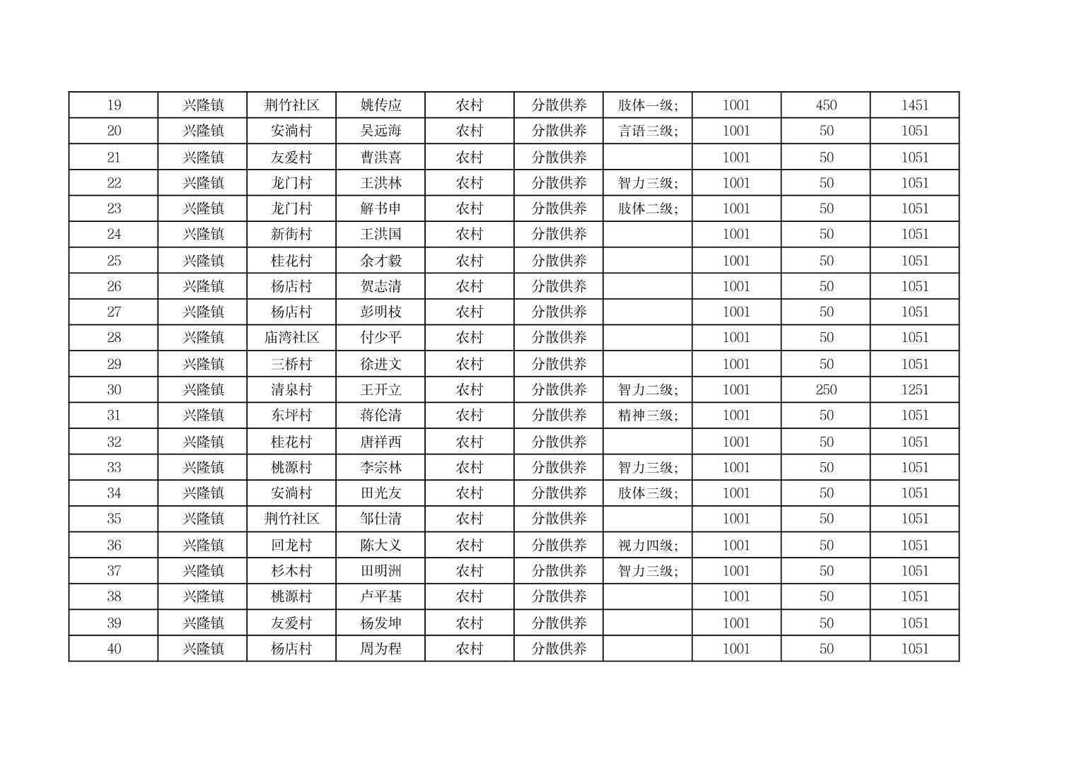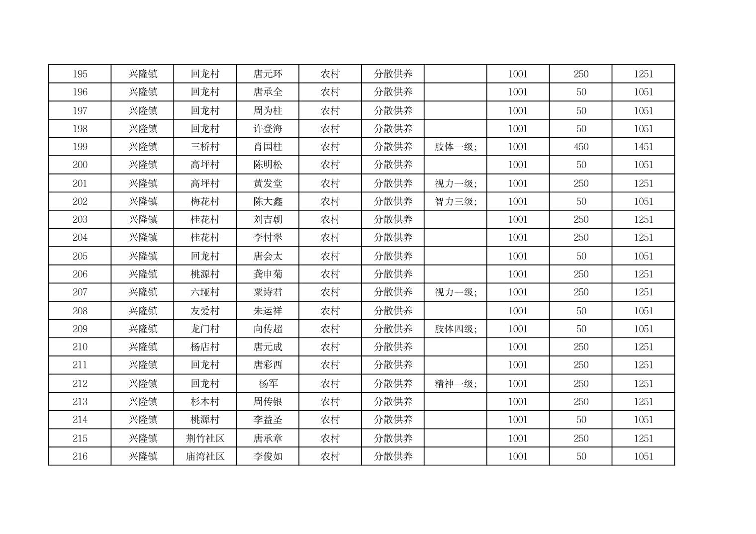 2025年12月份奉节县兴隆镇城乡特困人员基本生活补贴发放花名册