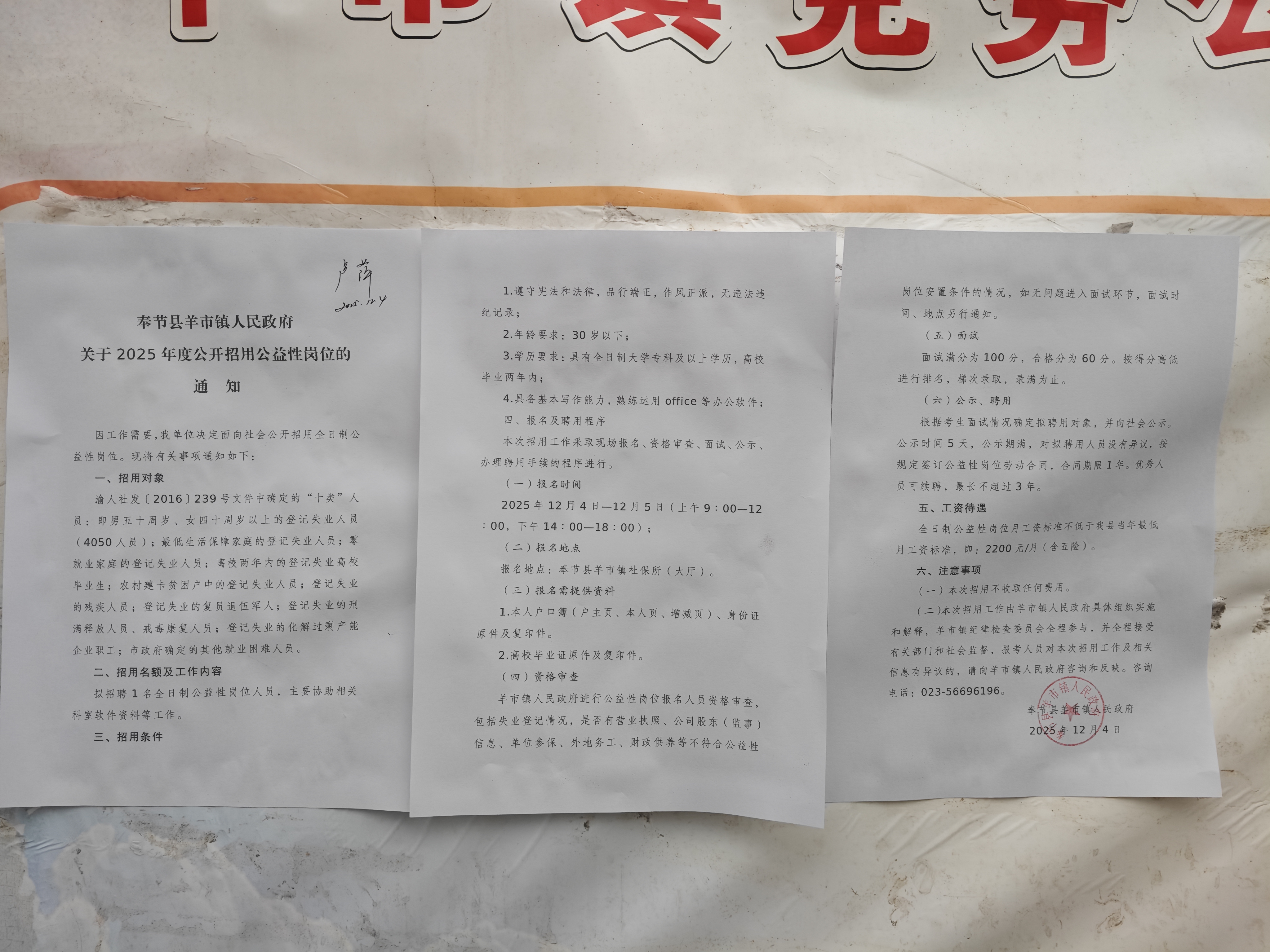 报名地点:奉节县羊市镇社保所(大厅)。