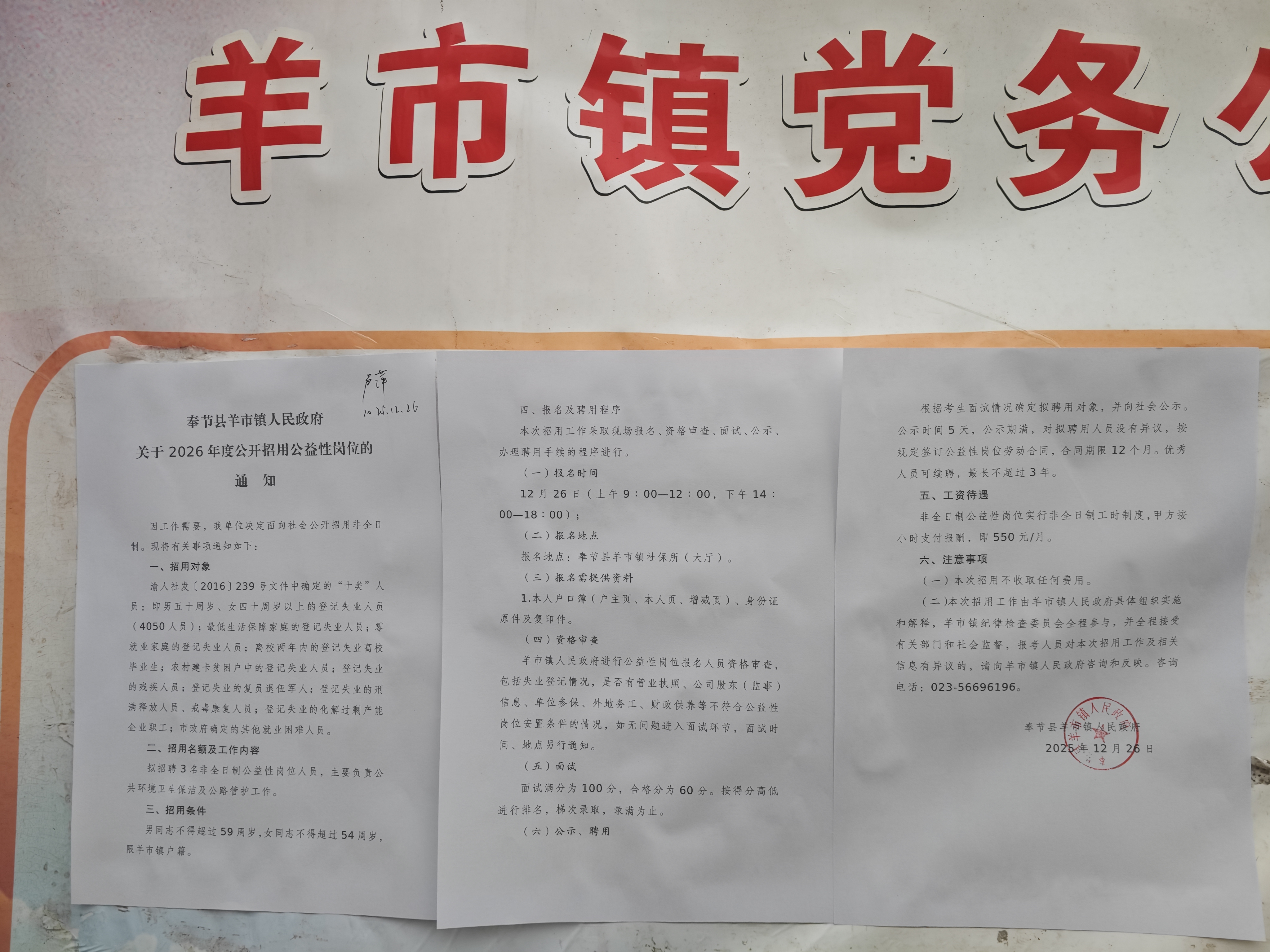 报名地点:奉节县羊市镇社保所(大厅)。