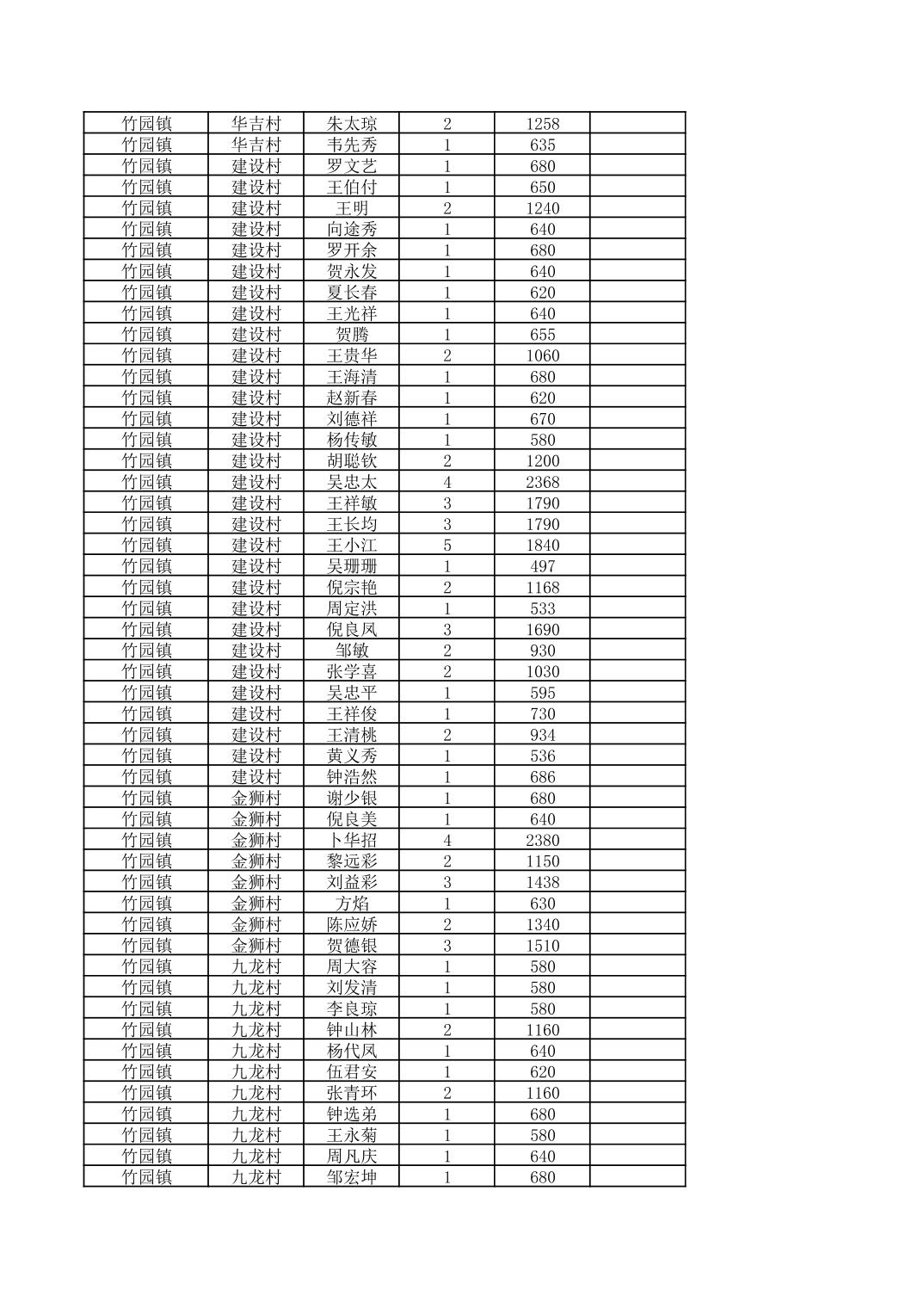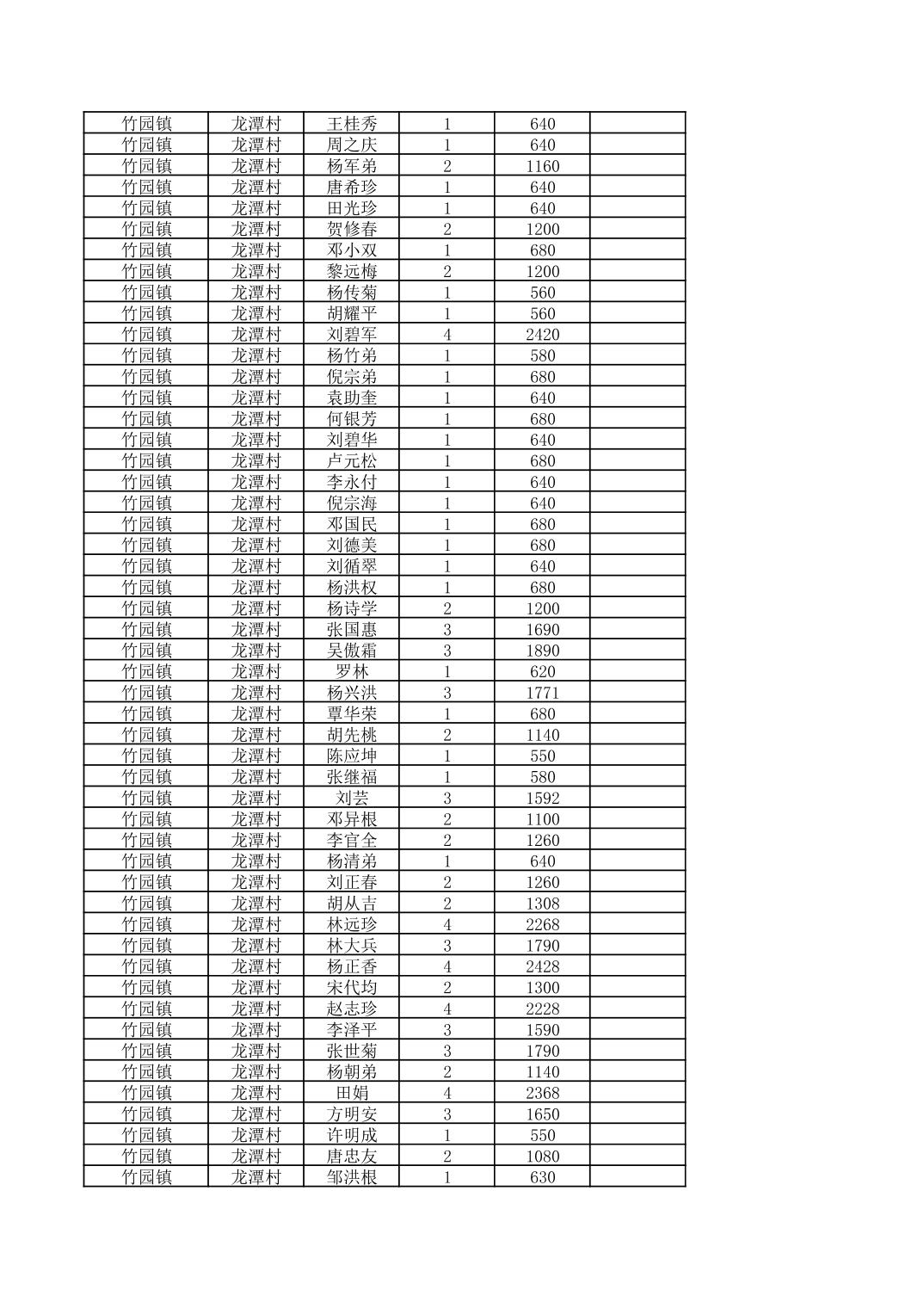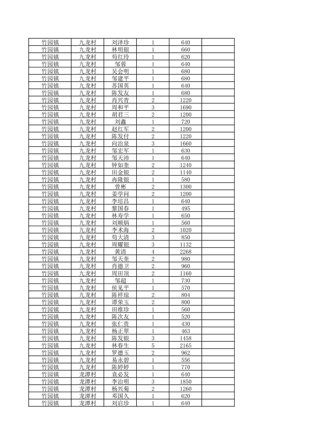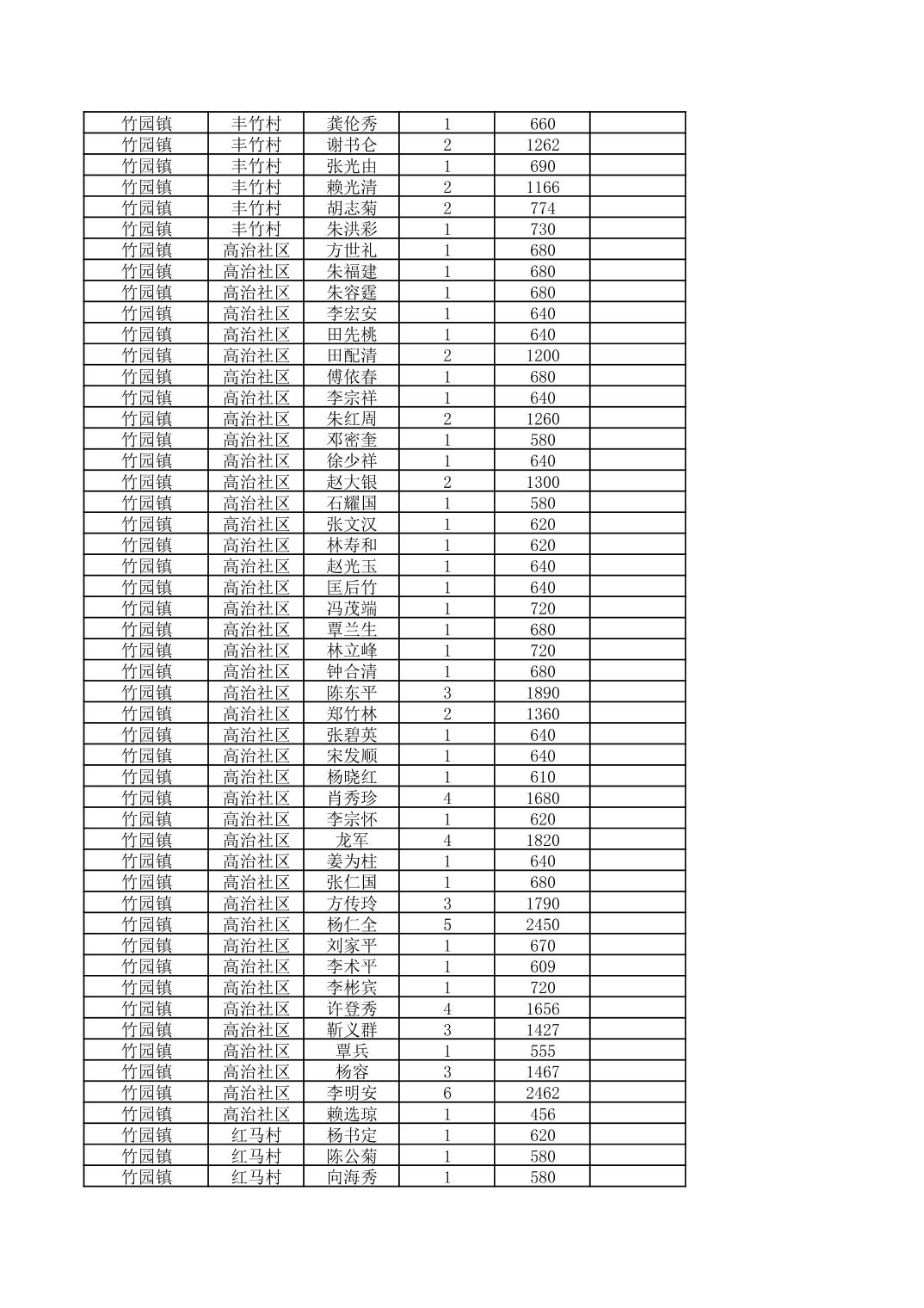 奉节县竹园镇2026年3月份农村低保家庭保障金发放花名册