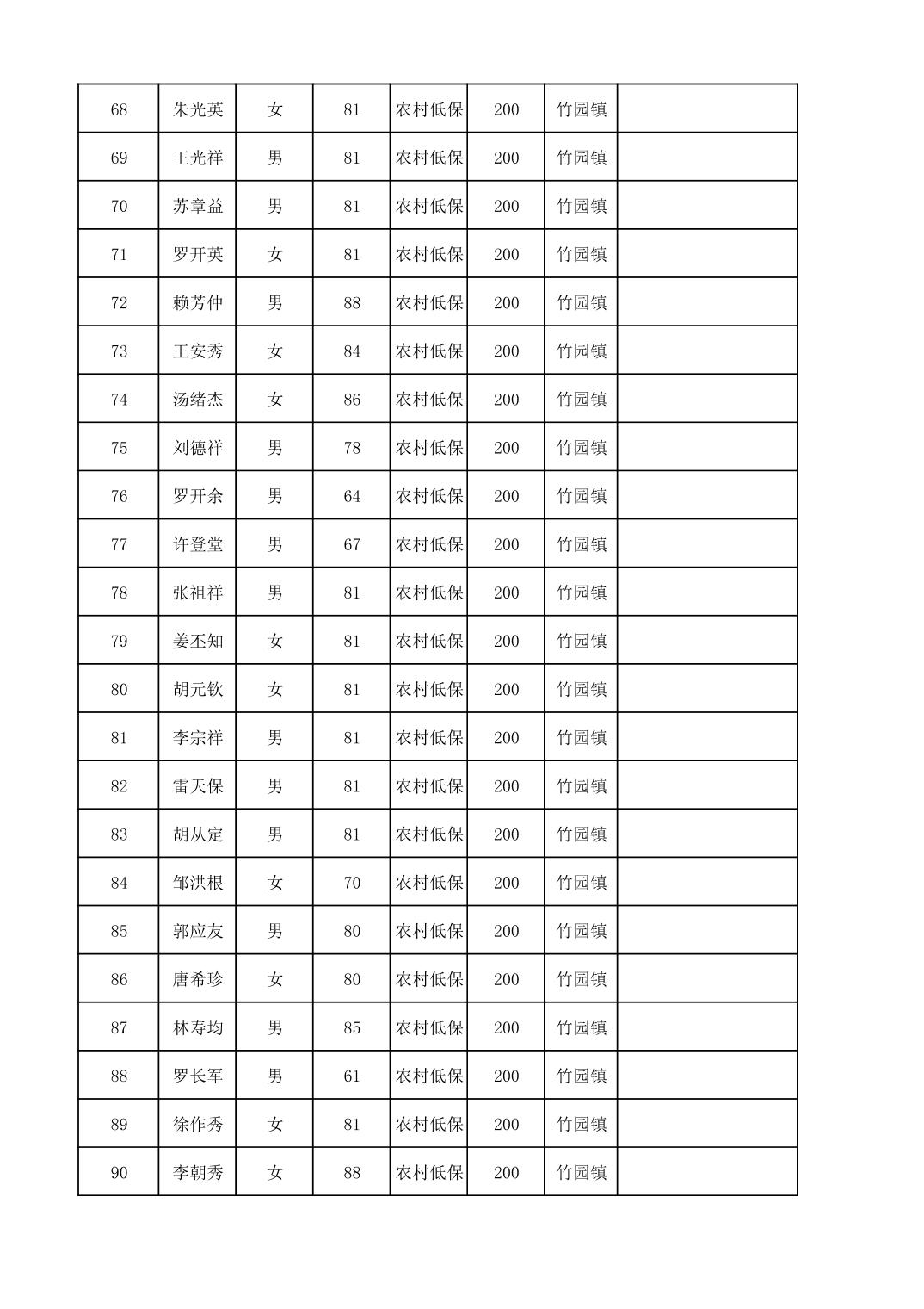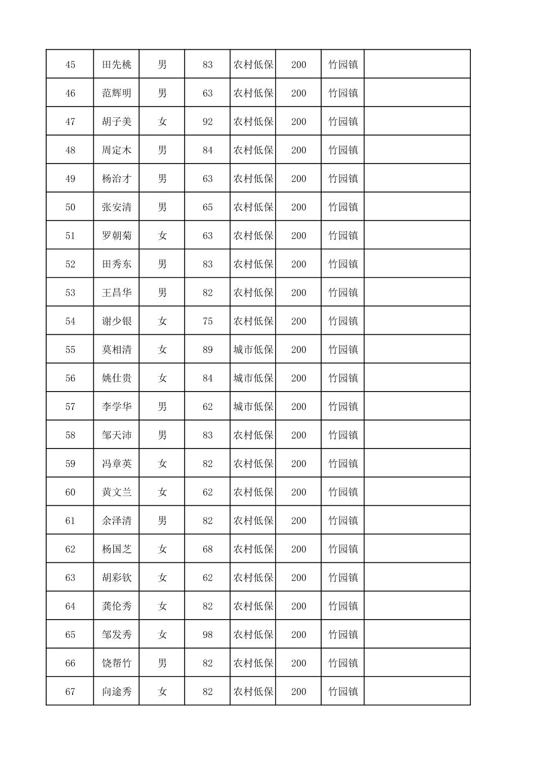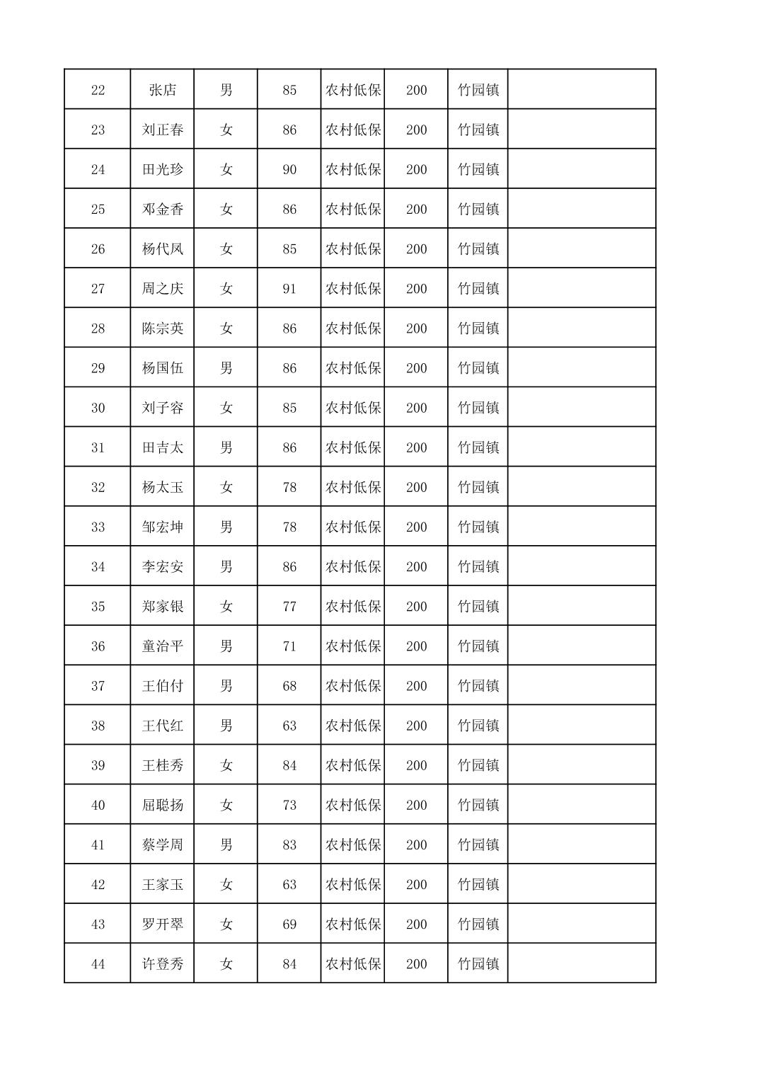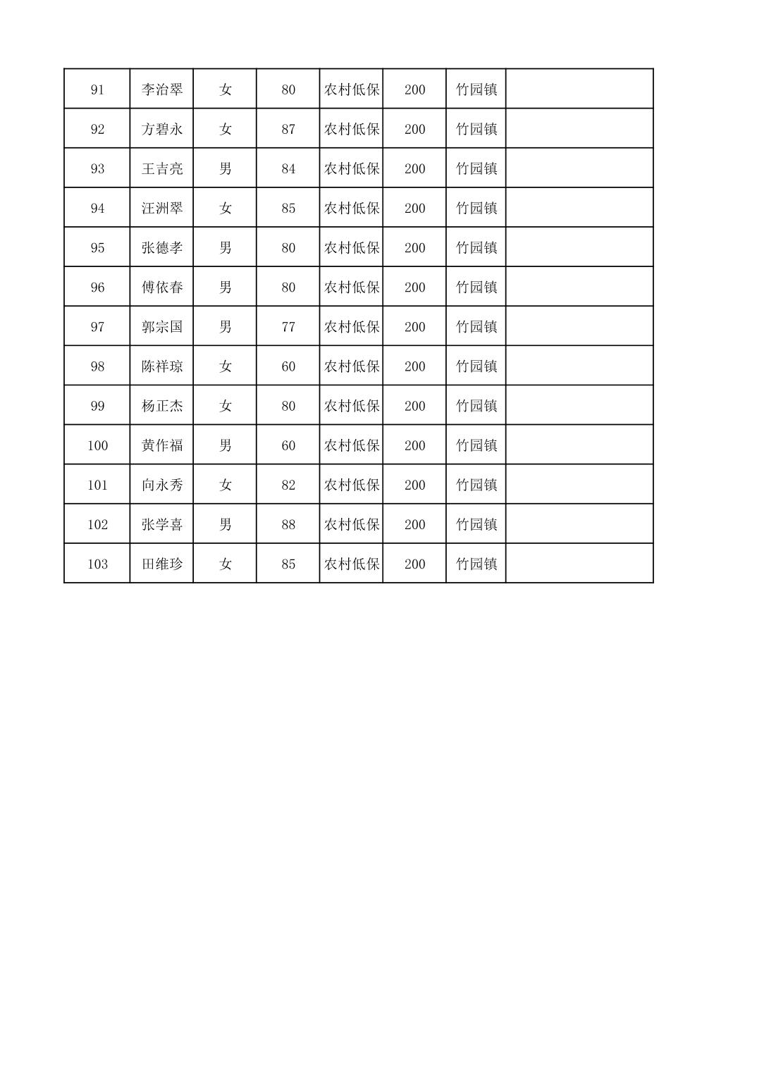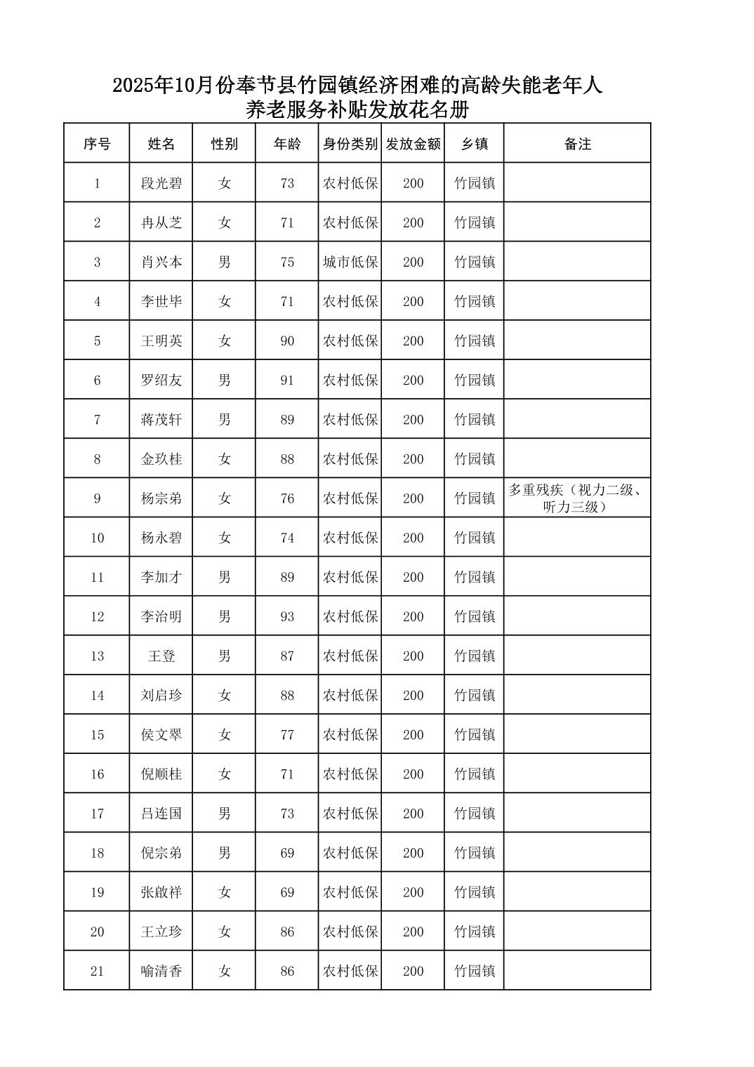 2025年10月份奉节县竹园镇经济困难的高龄失能老年人养老服务补贴发放花名册