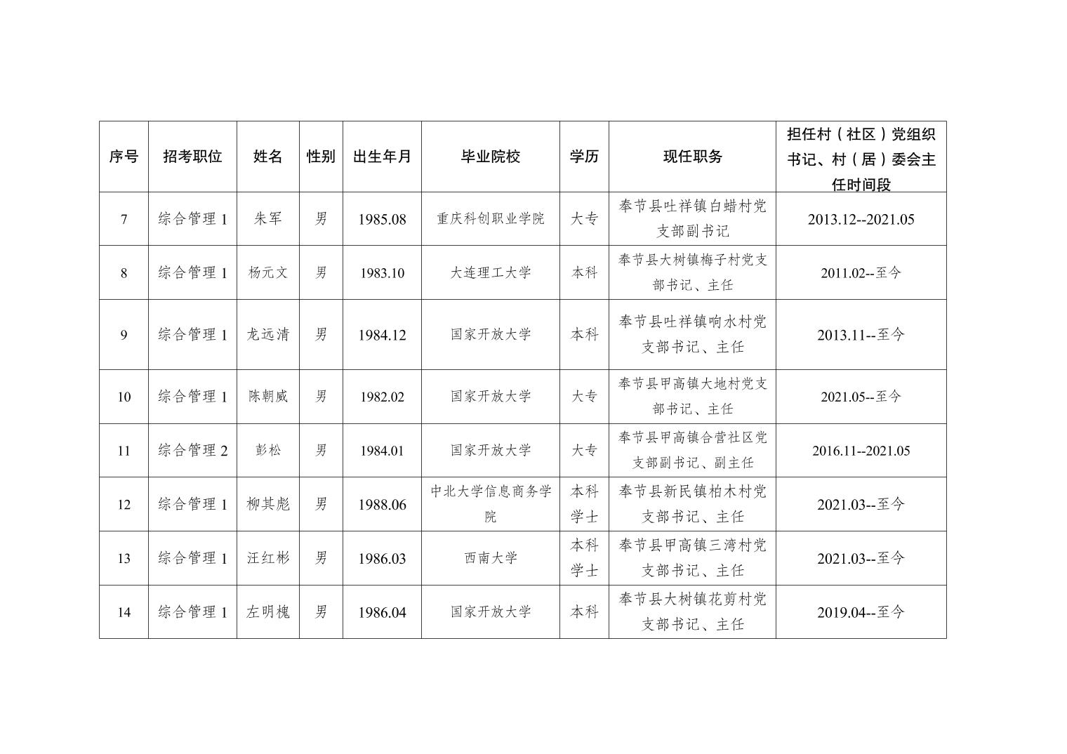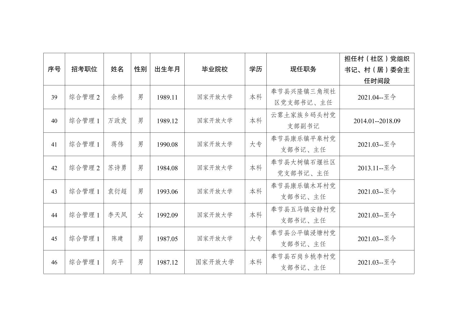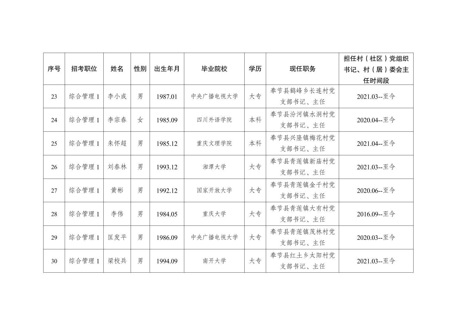 中共奉节县委组织部关于奉节县2026年从优秀村 (社区)干部中考试录用公务员报名人员公示
