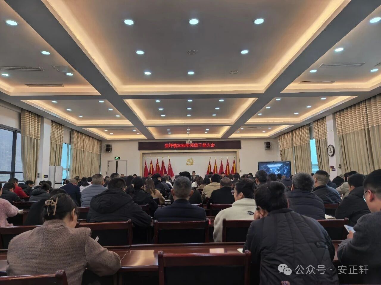3月5日,安坪镇召开2026年两级干部大会,镇机关全体干部职工、驻村工作队全体队员、各村(社区)五职干部、镇属单位负责人等110余人参会,会议由镇党委副书记、镇长代鹏主持。