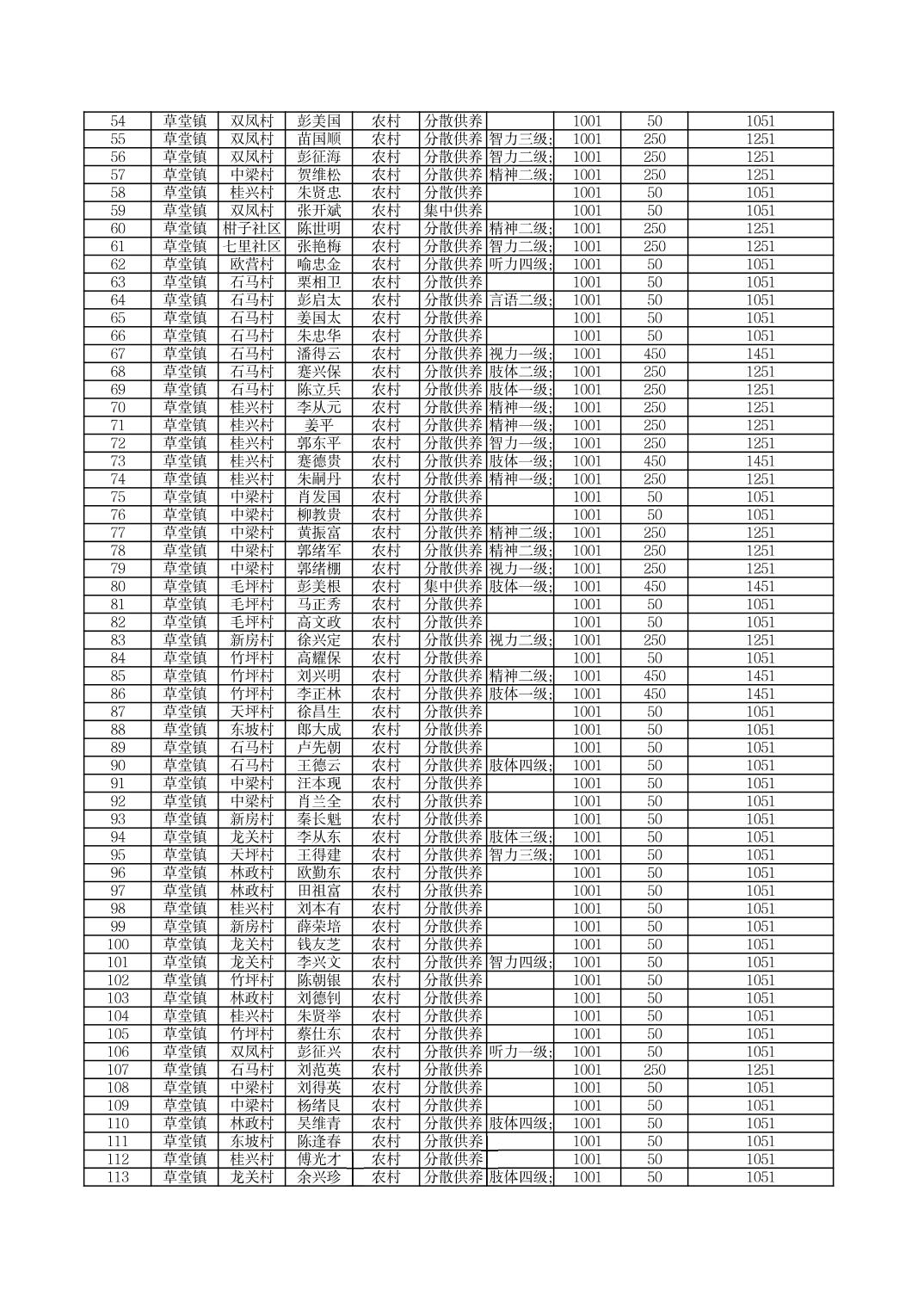 2025年奉节县草堂镇城乡特困人员8月基本生活补贴发放花名册
