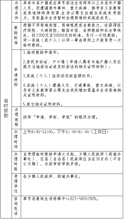 奉节县社会救助服务指南