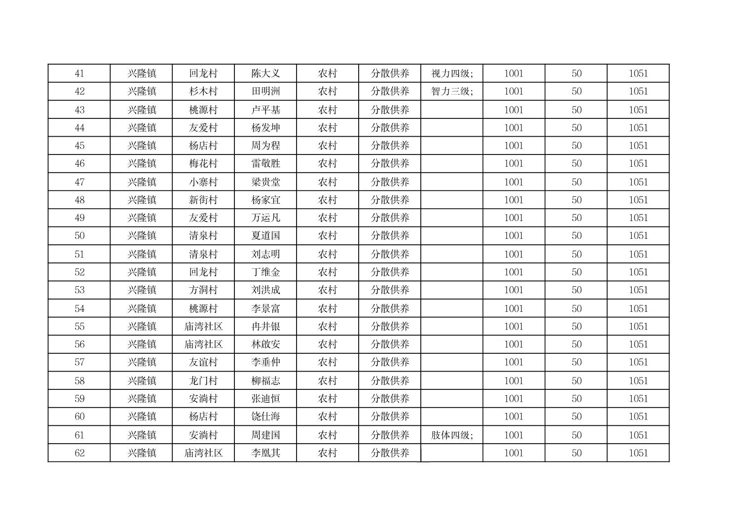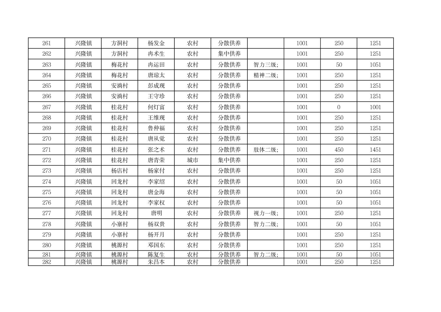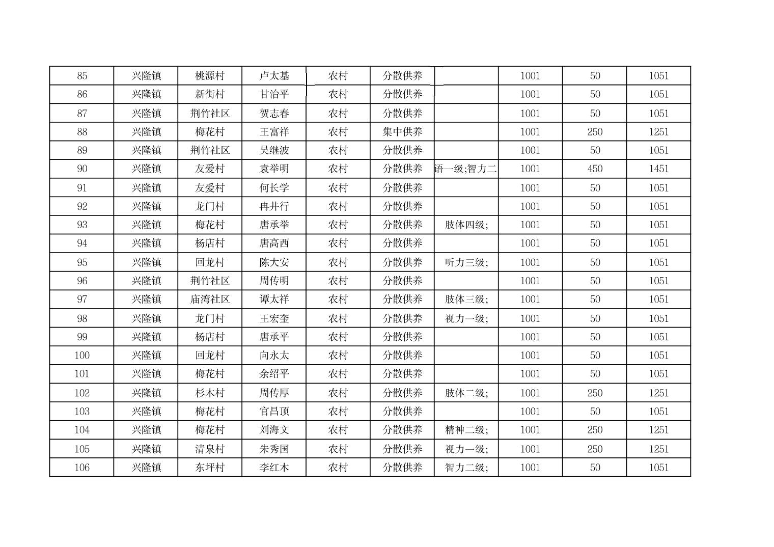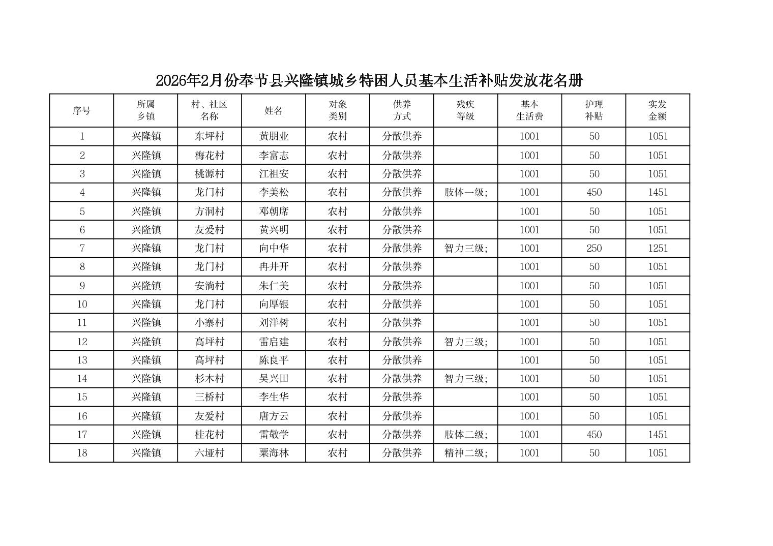 2026年2月份奉节县兴隆镇城乡特困人员基本生活补贴发放花名册