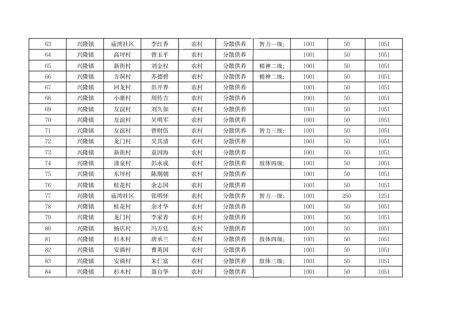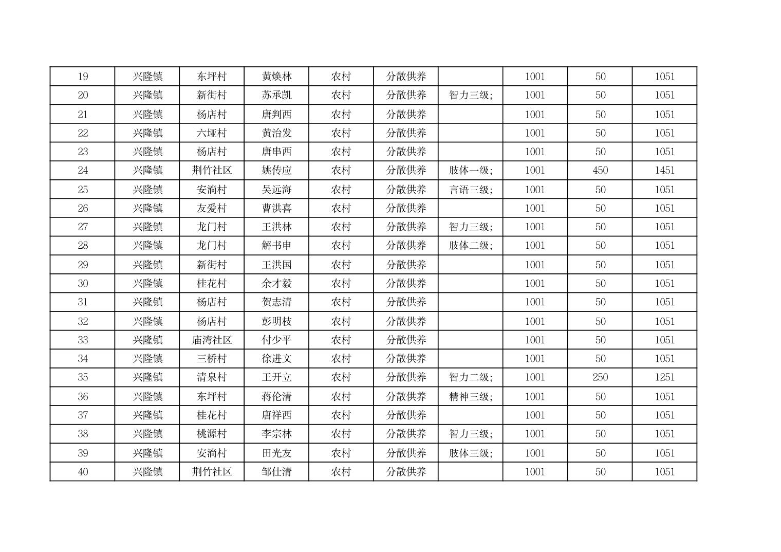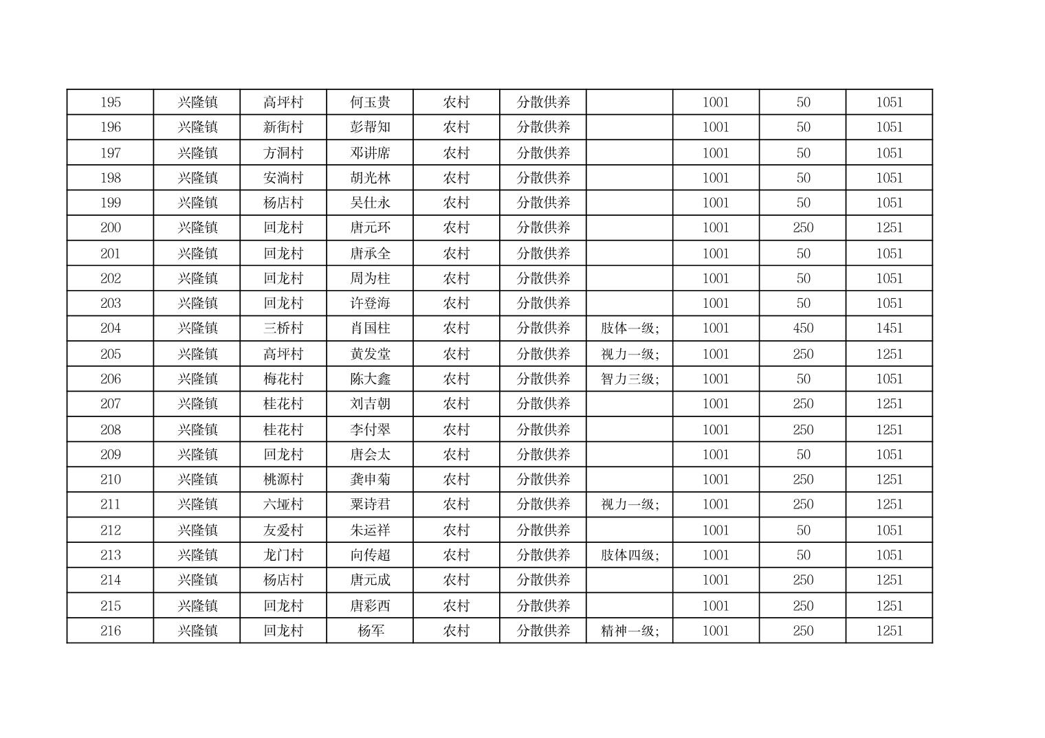 2026年2月份奉节县兴隆镇城乡特困人员基本生活补贴发放花名册