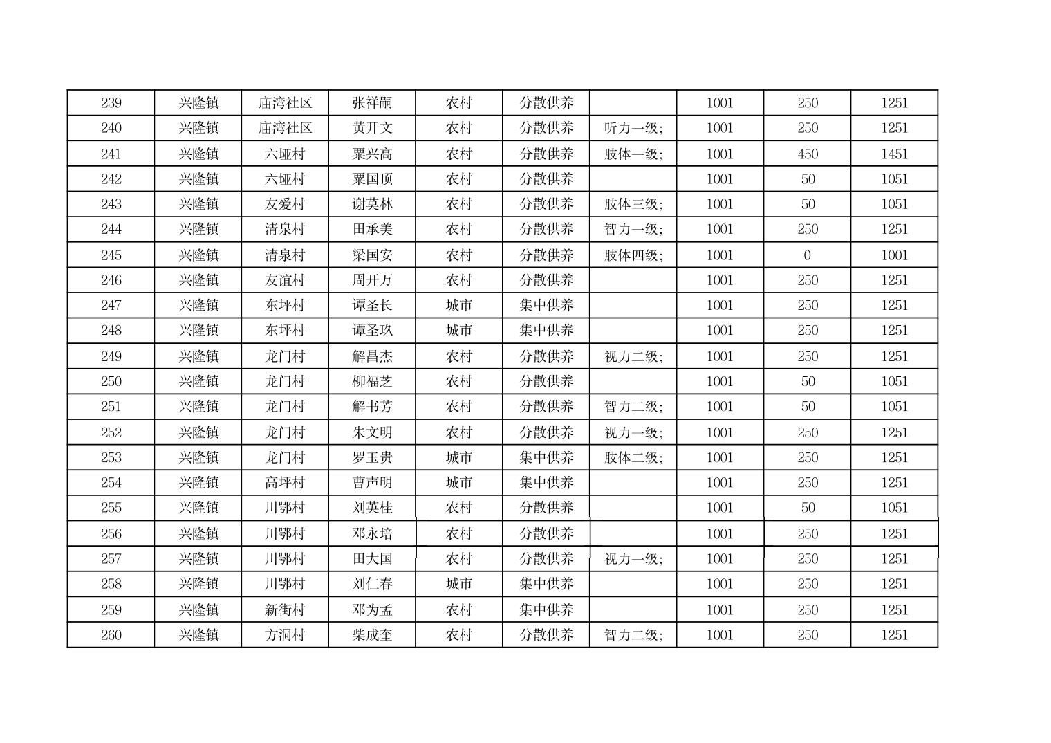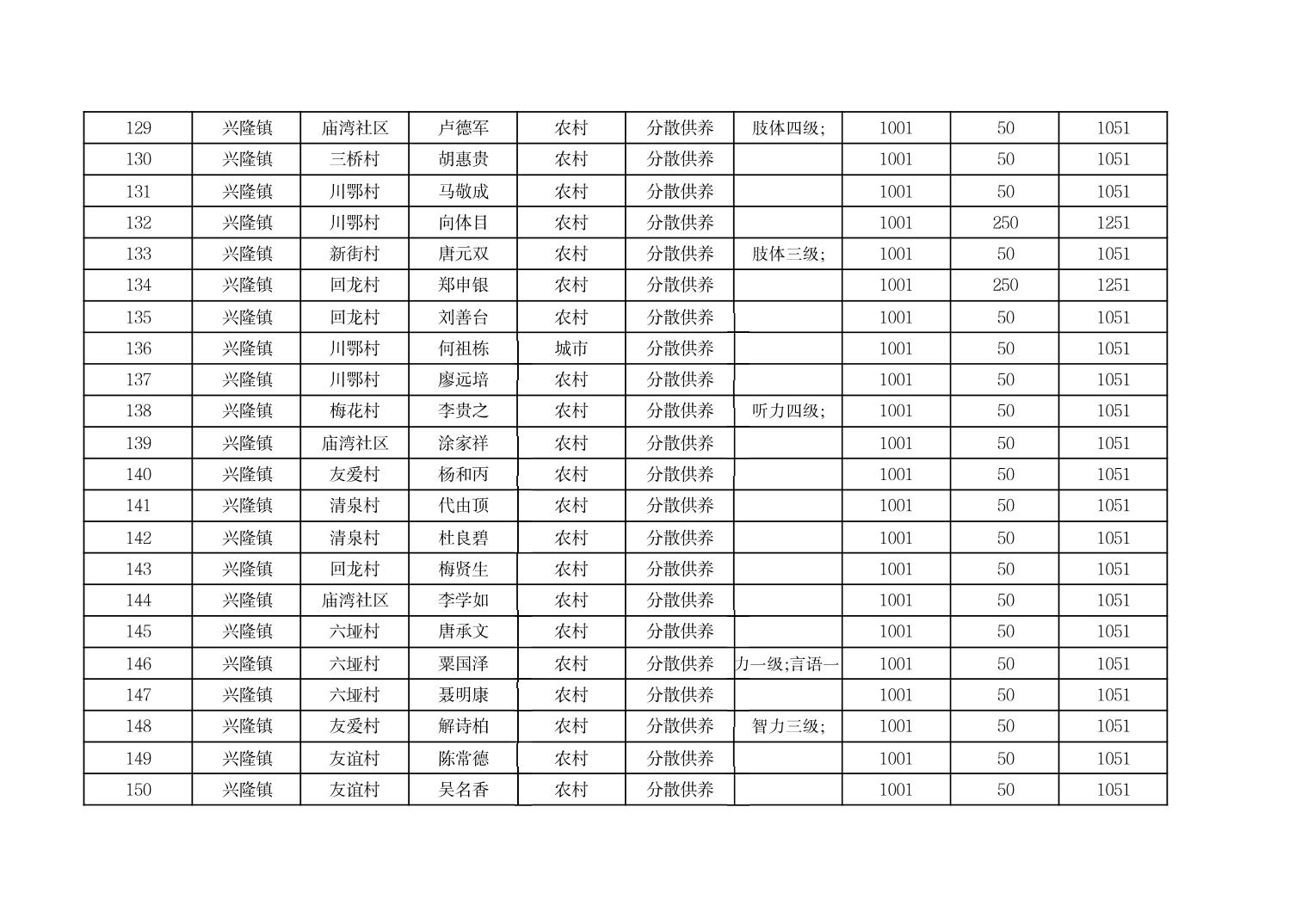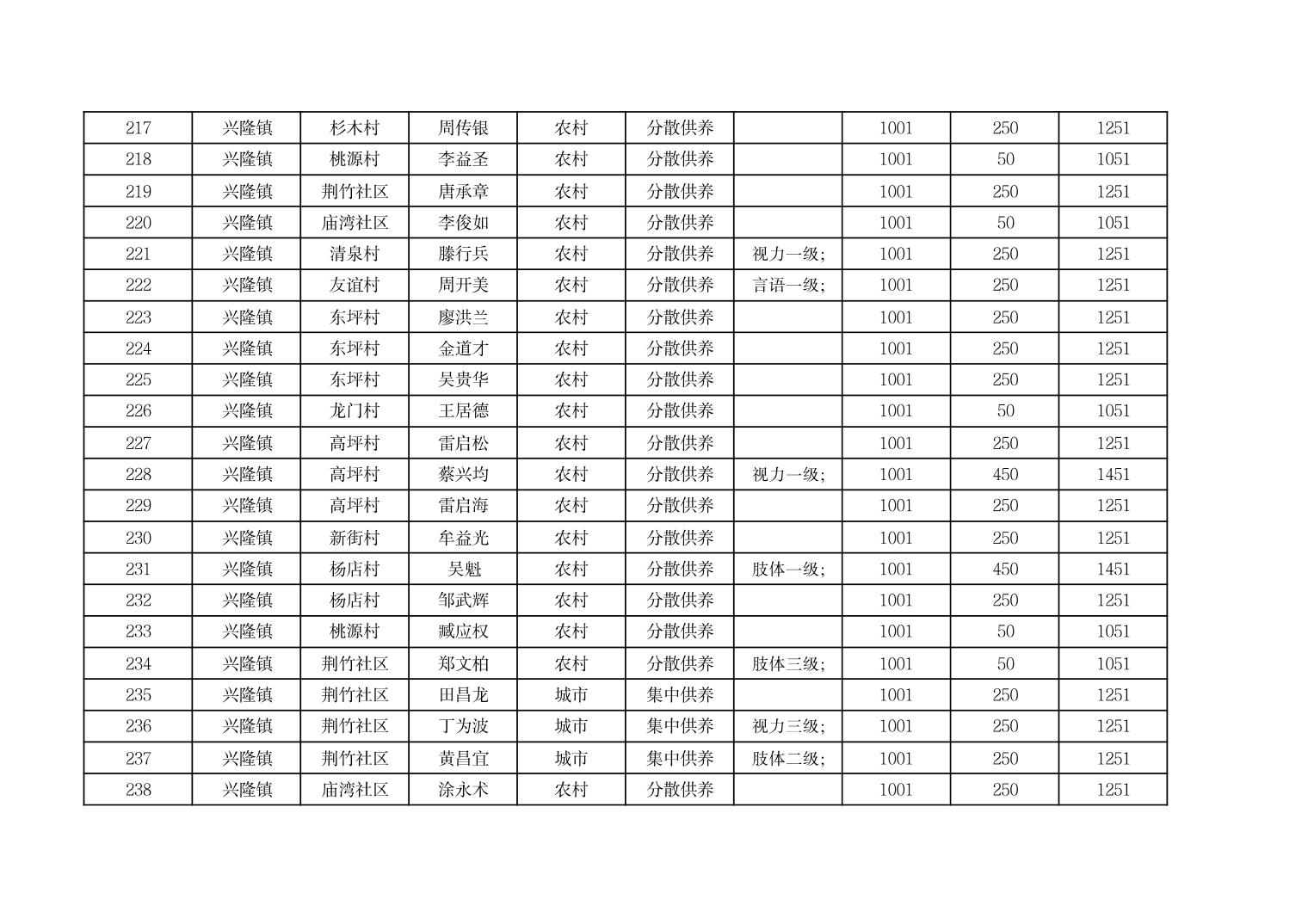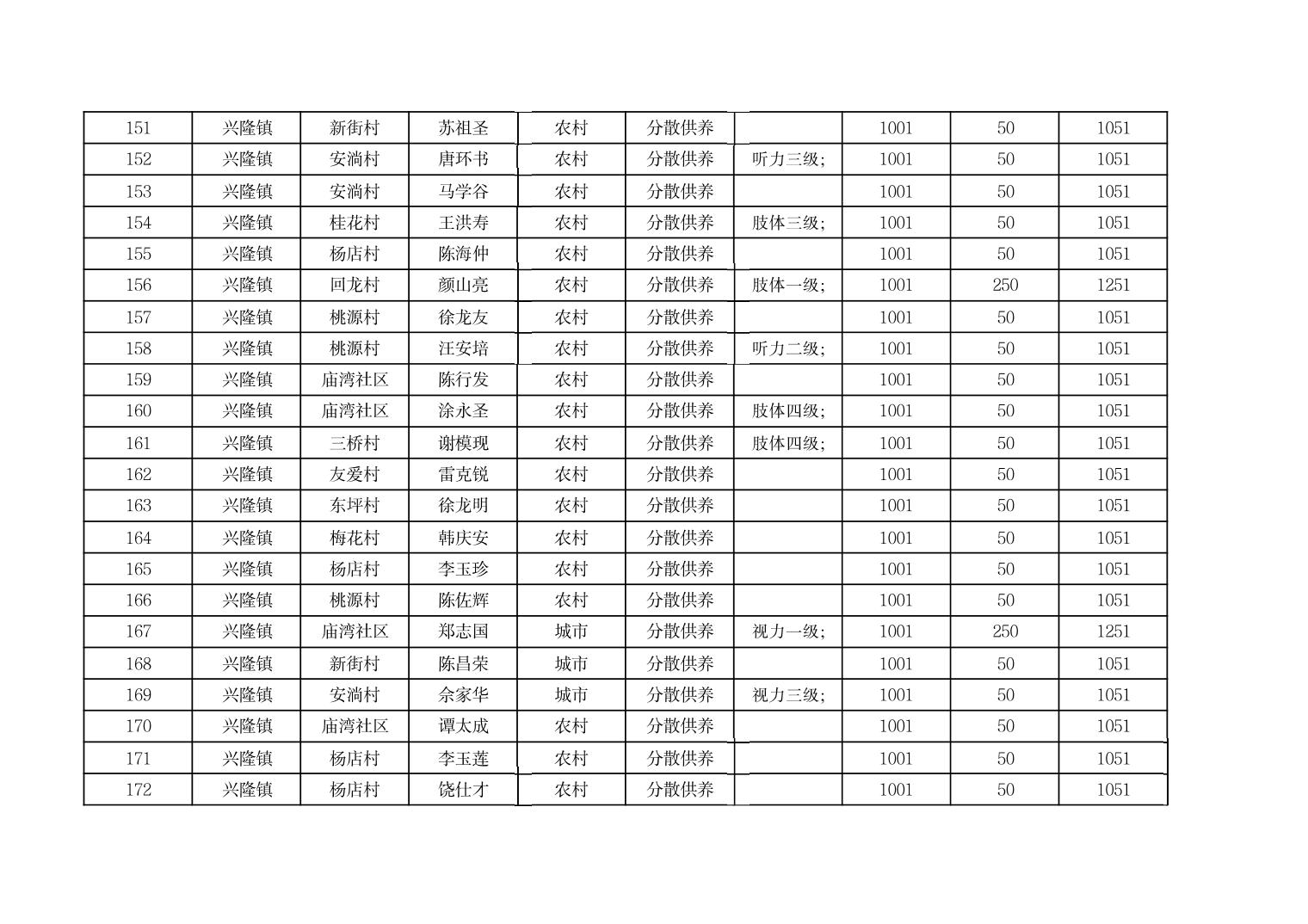 2026年2月份奉节县兴隆镇城乡特困人员基本生活补贴发放花名册