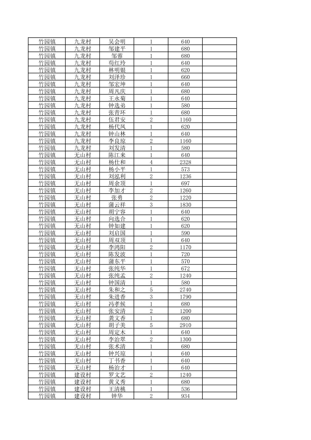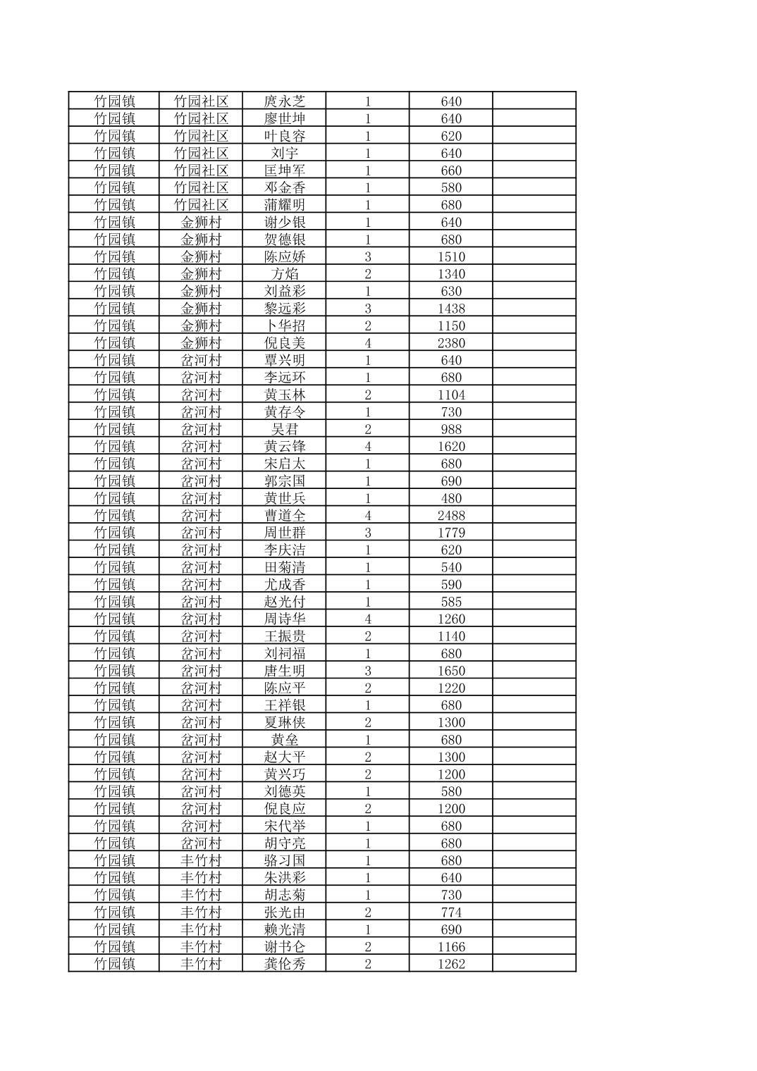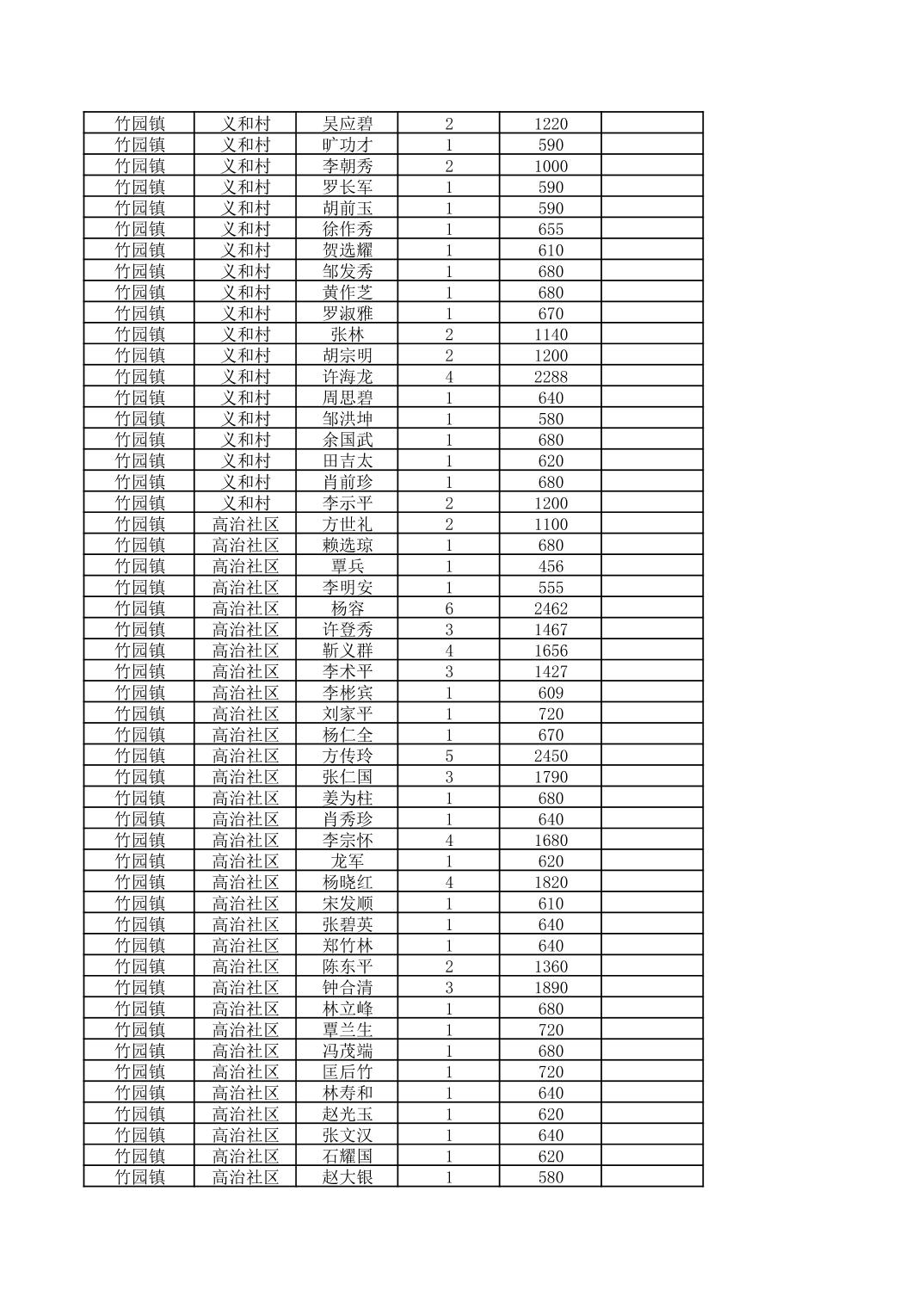 奉节县竹园镇2026年2月份农村低保家庭保障金发放花名册