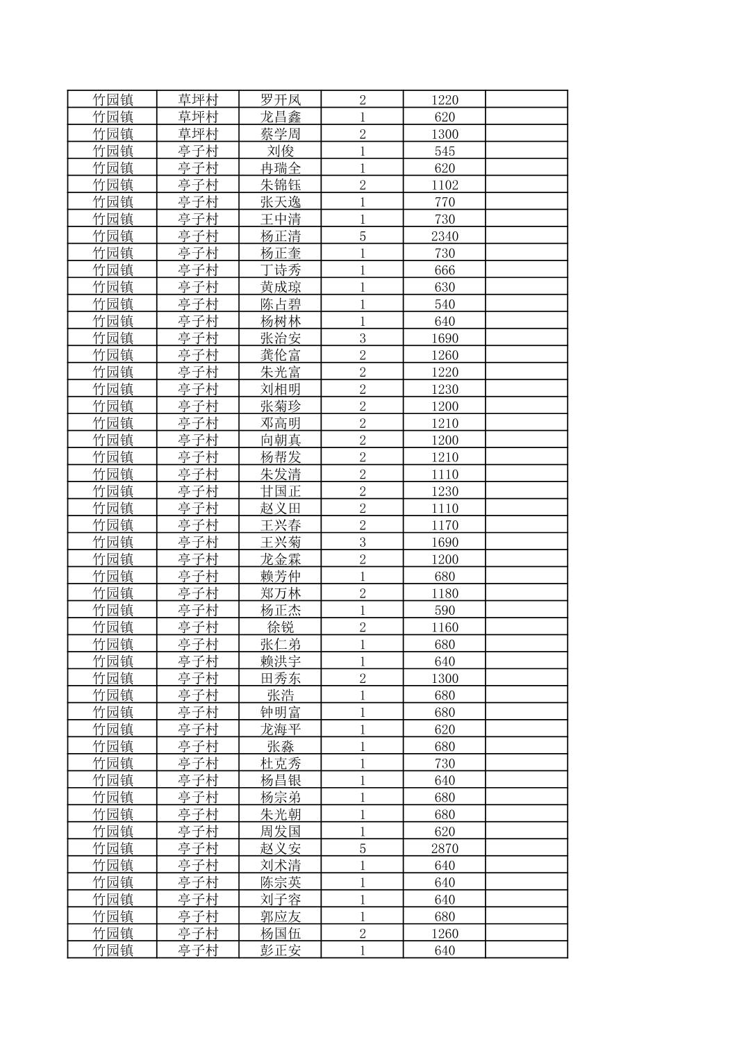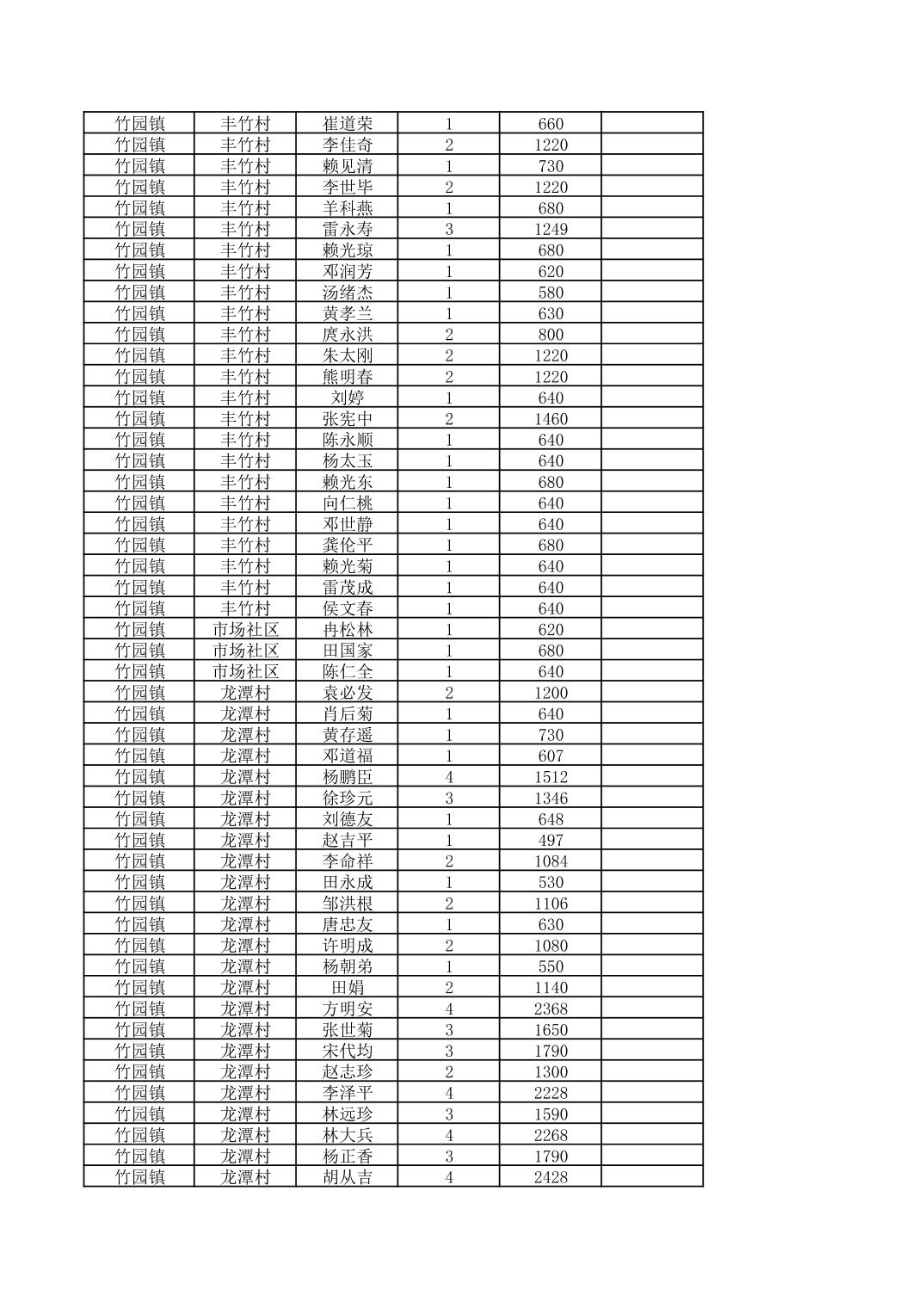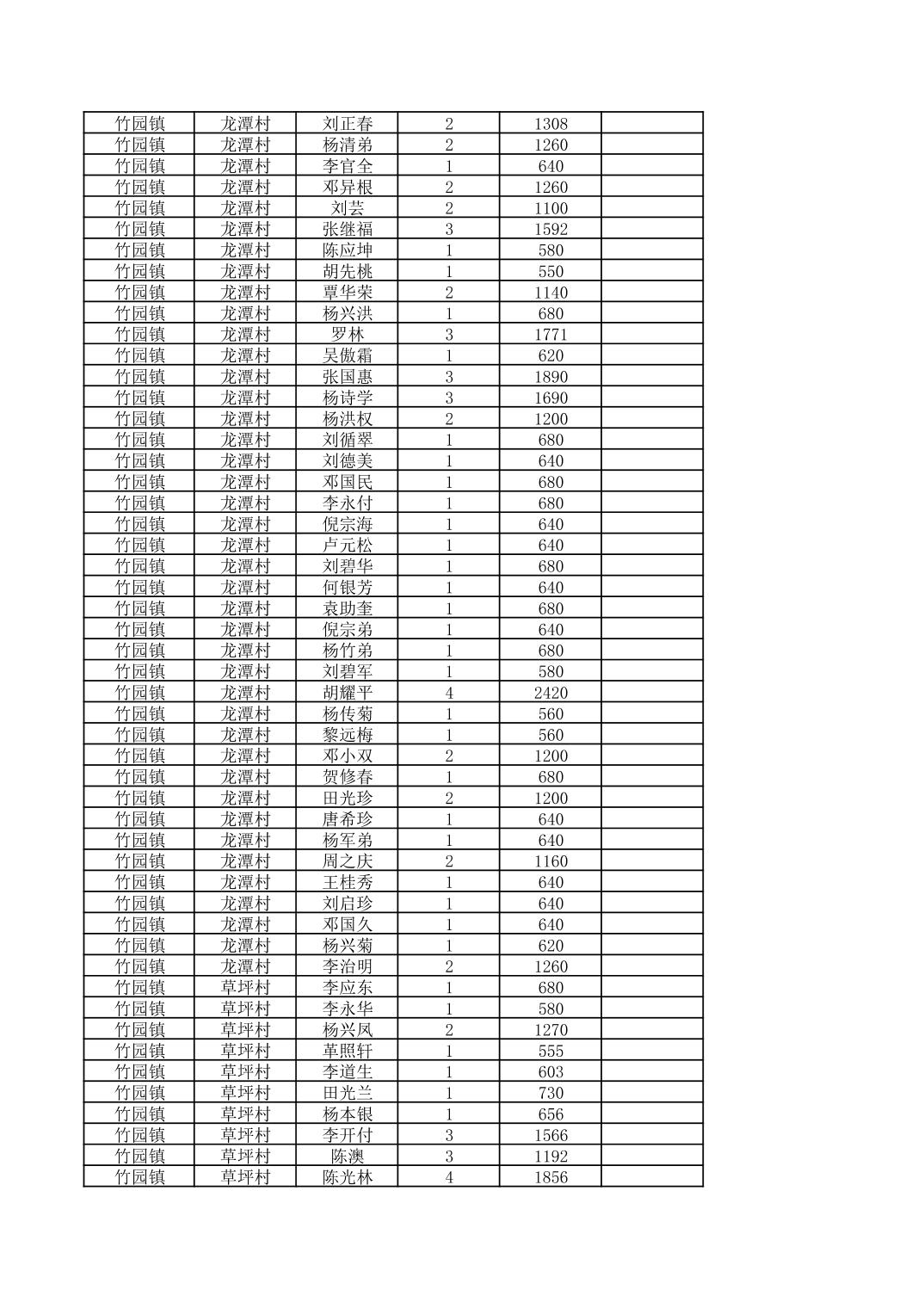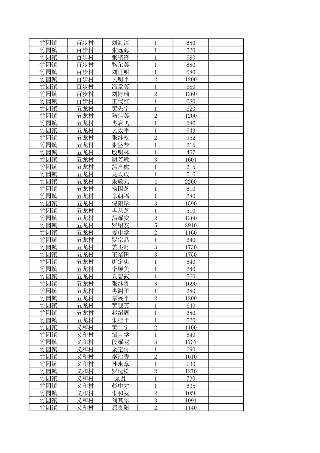 奉节县竹园镇2026年2月份农村低保家庭保障金发放花名册